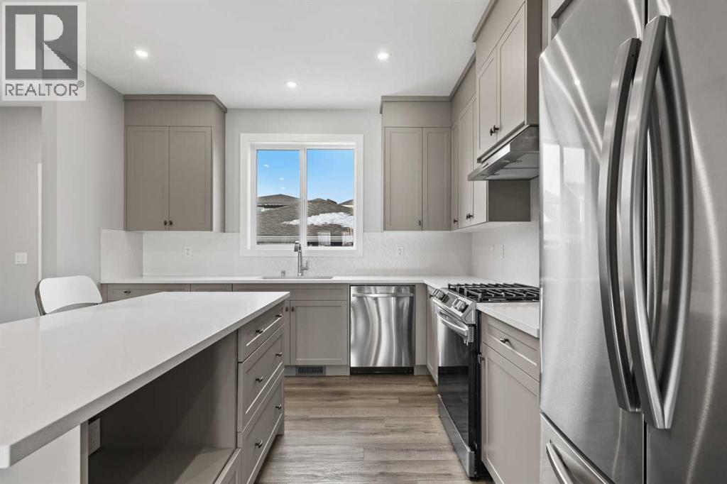 Modern elegance meets elevated living in this brand new, impeccably upgraded 4-bedroom, 3.5-bath detached residence by Broadview Homes, ideally situated in the vibrant and fast-growing community of Alpine Park, showcasing the sought-after Newport III model with 2,392 sq ft of thoughtfully curated living space that seamlessly blends style, comfort, and functionality; from the moment you arrive, you’ll appreciate the attention to detail, including a newly completed backyard oasis featuring a brand new deck and professional landscaping, perfect for outdoor entertaining or quiet relaxation, while the double detached garage is equally impressive with a roughed-in gas line and a 30A 240V subpanel ready for EV charging; inside, the sun-drenched, south-facing main floor welcomes you with soaring 9’ ceilings and upgraded luxury vinyl plank flooring throughout, anchored by a dramatic floor-to-ceiling tiled feature wall with a sleek fireplace that creates a refined yet inviting atmosphere, while the designer kitchen is a true showpiece featuring stainless steel appliances including a gas stove, elegant shaker cabinetry, and a stunning quartz island with seating, complemented by a generous dining area and a stylish 2-piece powder room; upstairs, the same high-end flooring continues, leading to a spacious bonus room ideal for movie nights or family gatherings, a thoughtfully designed desk nook perfect for working from home or study, and a serene primary retreat with a large walk-in closet and a beautifully appointed 4-piece ensuite with dual vanities and a glass-enclosed shower, while two additional bedrooms share an upgraded 3-piece bathroom with a 5-foot stand-up glass shower and a convenient upper-level laundry completes the space; the fully developed basement expands your living area with a large recreation room, a fourth bedroom, a full 4-piece bathroom, and an upgraded 200-amp electrical panel, offering both versatility and peace of mind; perfectly positioned in southwest Calgary, Alpine Park provides effortless access to major routes such as Stoney Trail and Macleod Trail, with close proximity to premier shopping and dining at The Shops at Buffalo Run and the established amenities of Westhills Towne Centre and Signal Hill Centre, making this a rare opportunity to own a turnkey, designer home in one of Calgary’s most exciting new communities. (id:63190)