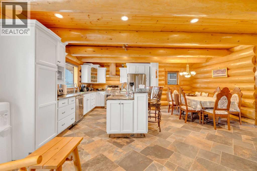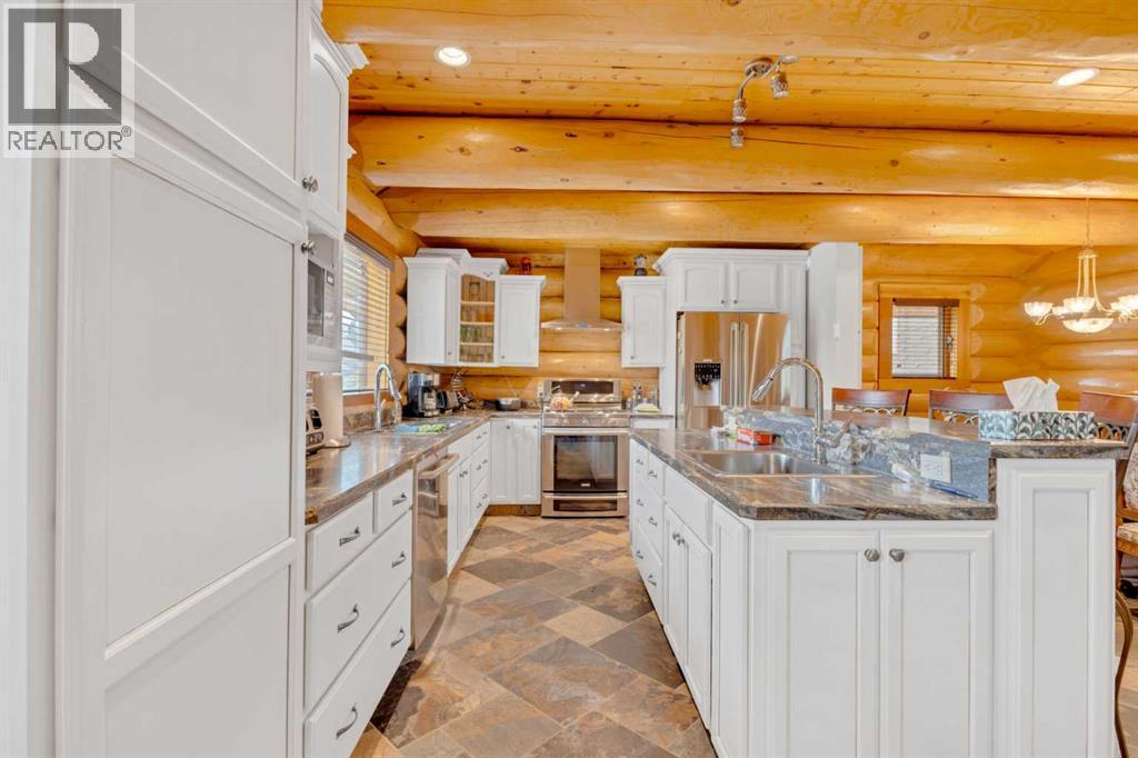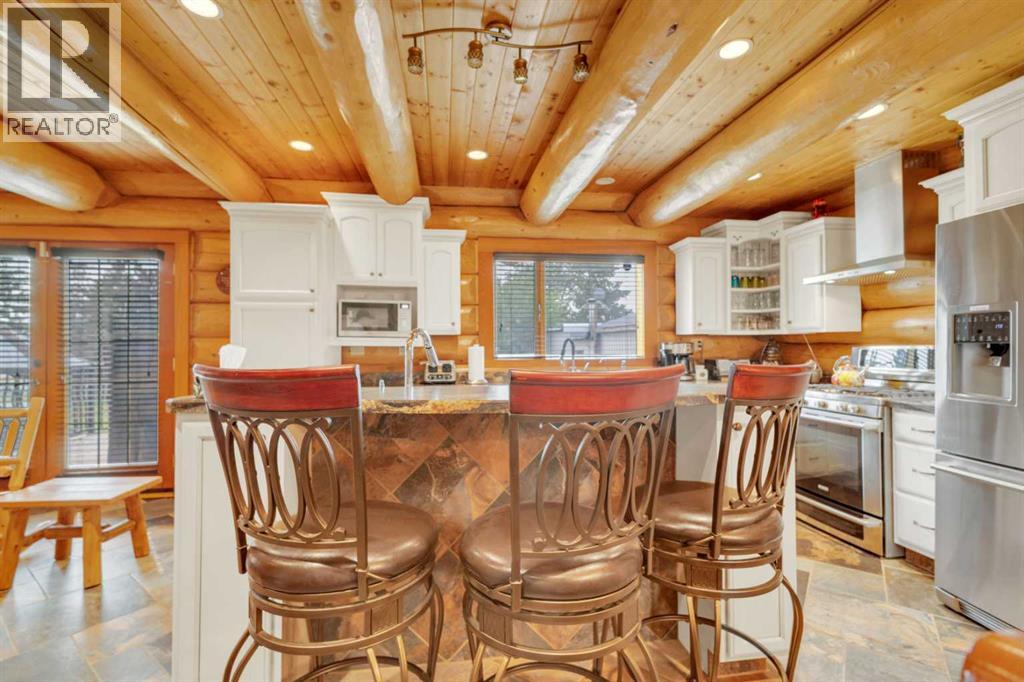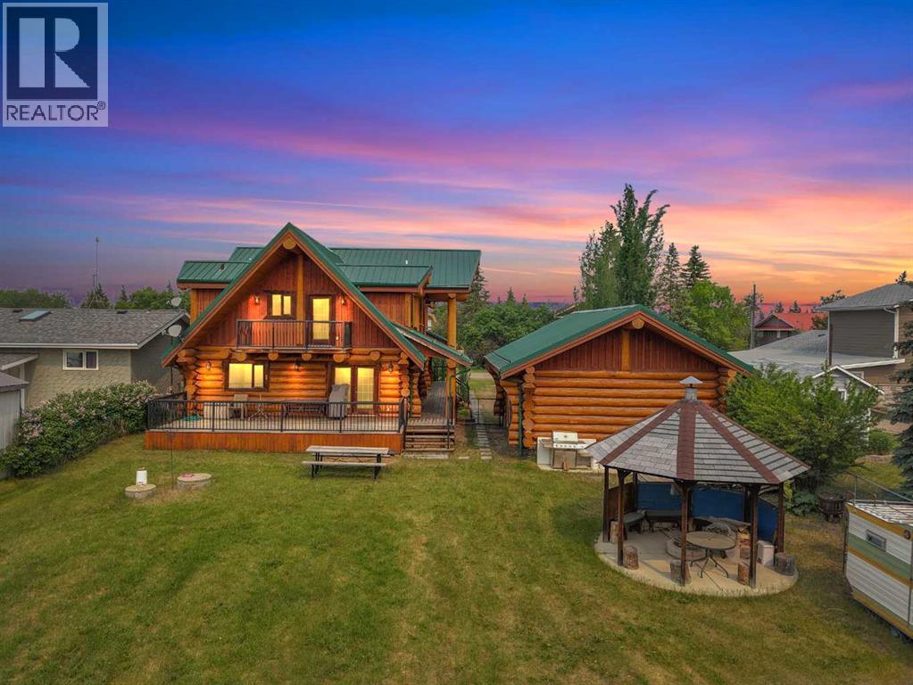 Where the pines meet the water, this exceptional Douglas fir log home at Gull Lake makes a statement that few properties can. A 2009 log package carefully completed in 2012, the home benefited from years of use as a beloved summer getaway — allowing the logs to cure naturally over time, yielding remarkably little settling and a home that presents in truly immaculate condition. Spanning just under 2,700 square feet of masterfully crafted living space, it blends the timeless warmth of handcrafted logs with thoughtful modern updates — including a 2019 fully renovated gourmet kitchen and state-of-the-art appliances. Expansive windows and soaring ceilings bring the outside in, while both a pellet stove and fireplace make every evening feel like an occasion. The south-facing deck frames spectacular sunset views, and multiple upper-level balconies extend your connection to this remarkable natural setting. Built for Alberta's full range of seasons — in-floor boiler heat, forced air, metal roof, concrete slab construction. Has it’s own well and has a shared septic tank and filed with the neighbours on the west side(common in Gull Lake). A detached garage, private well, and 0.38 acres complete this rare lakeside offering. (id:63190)