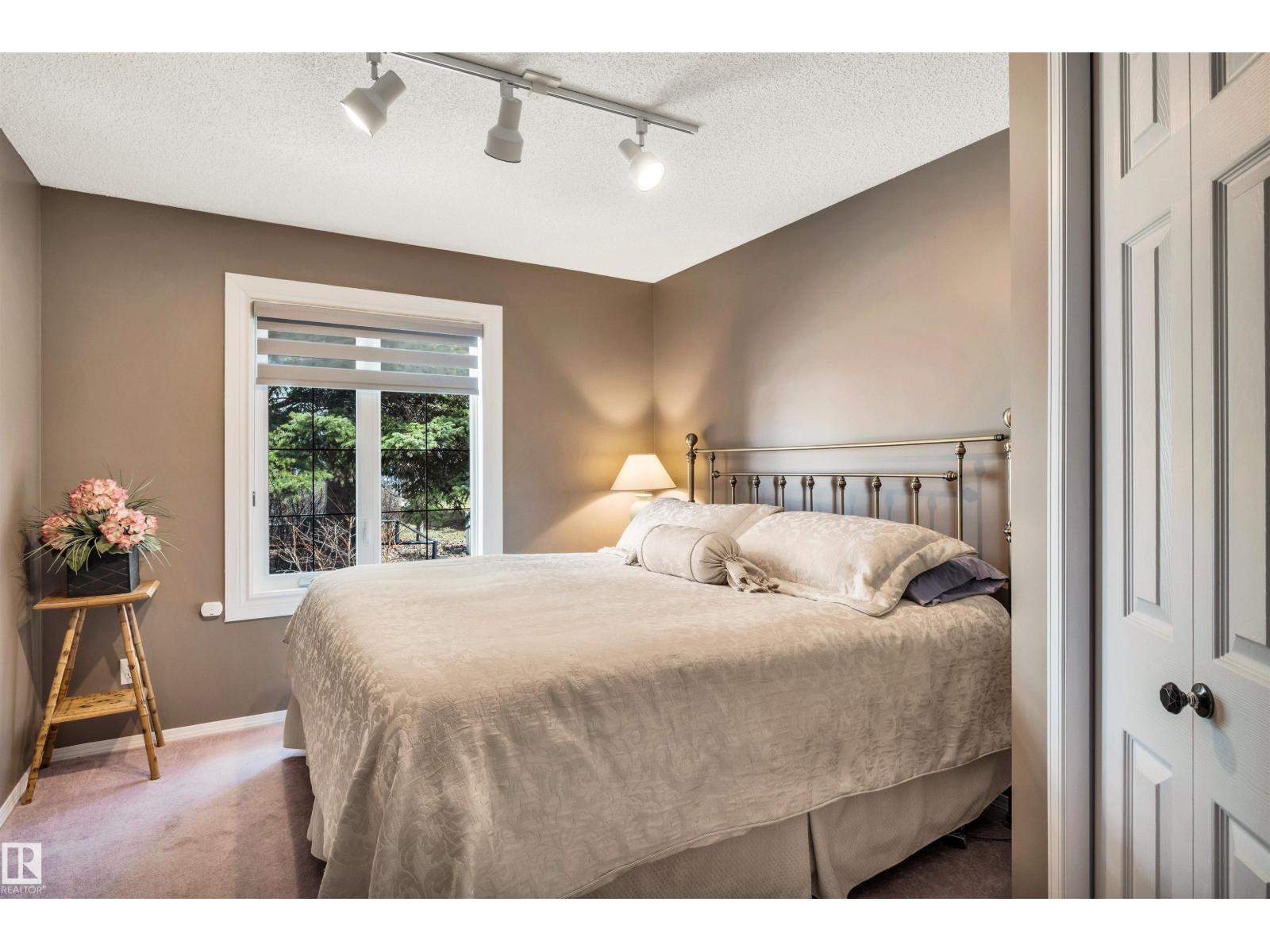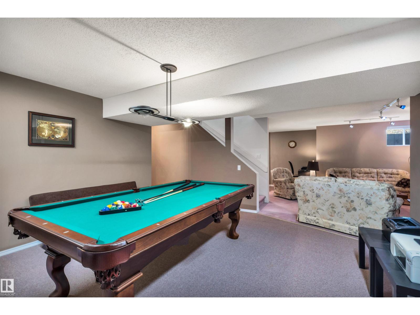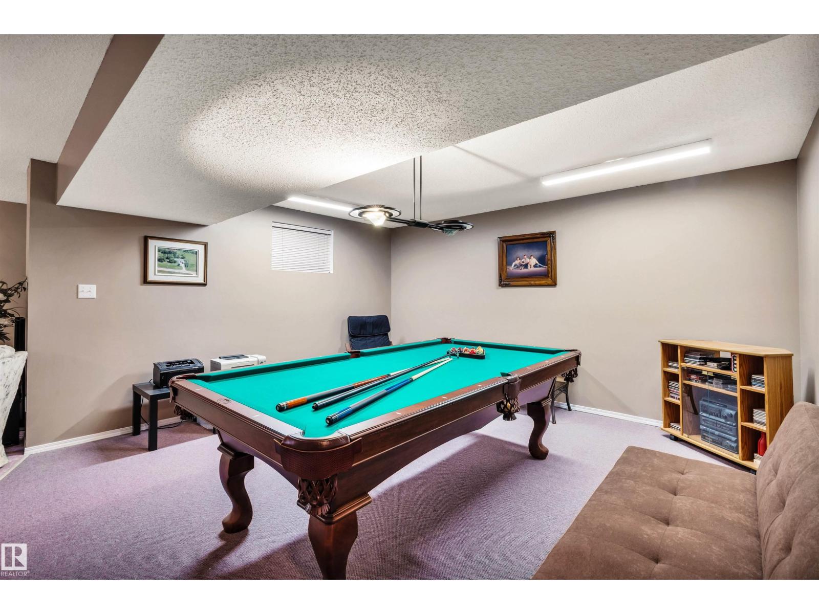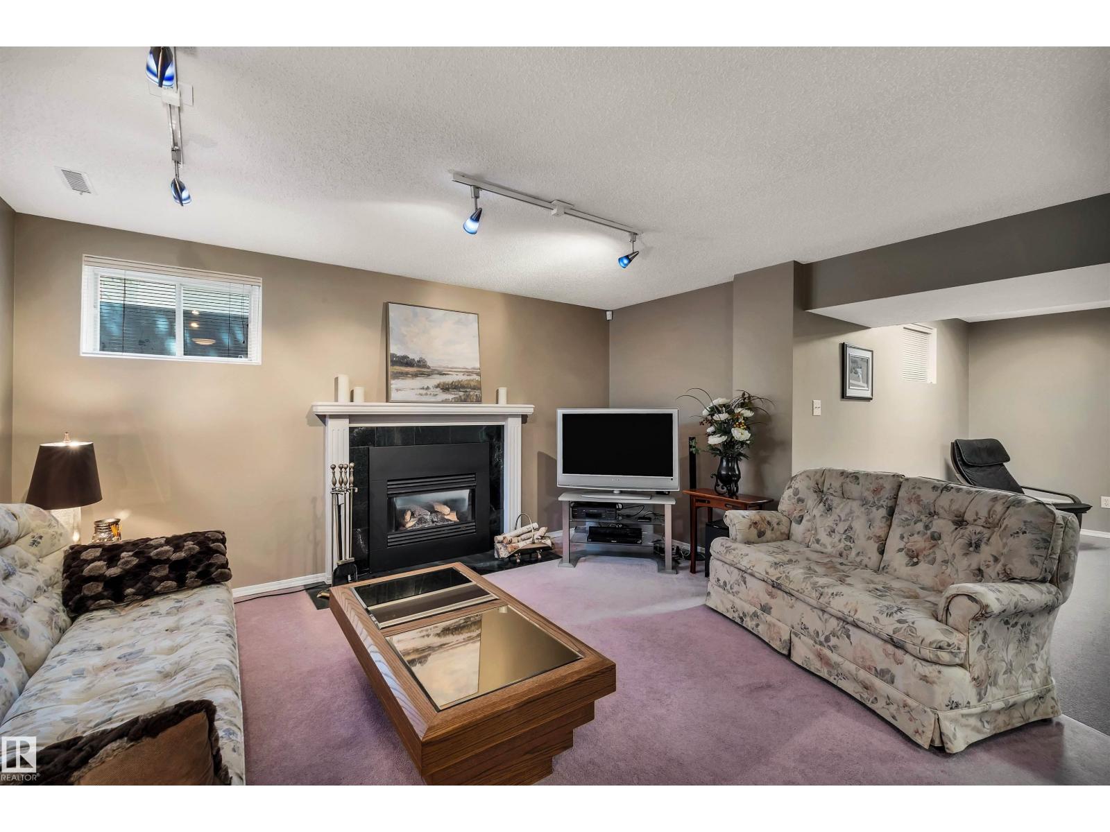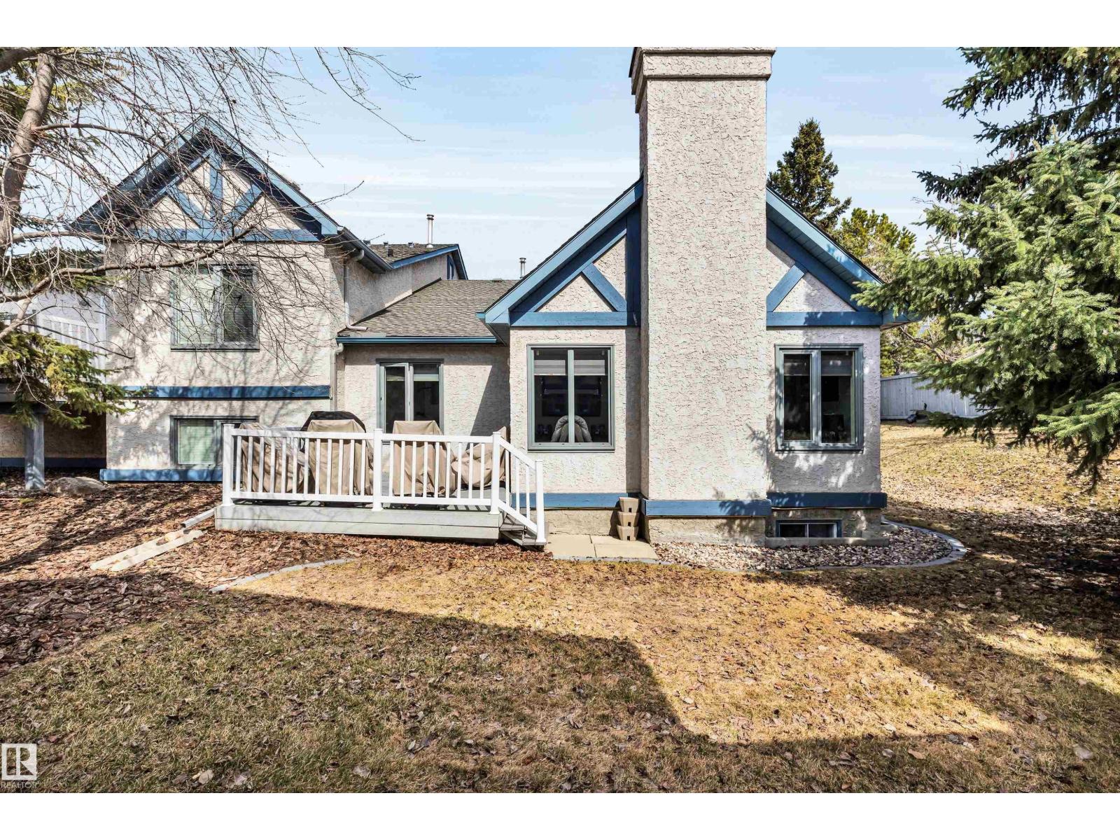 Welcome to this beautifully maintained bungalow in the exclusive Twin Brooks Classics, a sought-after 16+ adult living community. Thoughtfully updated, this home offers an open-concept main floor ideal for comfortable living & entertaining. The timeless white kitchen features dual pantries & flows seamlessly into the main living space. Enjoy the ease of main floor laundry & newer vinyl windows w/custom blinds. The spacious primary includes mirrored closets & renovated spa-inspired ensuite w/heated floors & tiled walk-in shower w/bench. The fully finished basement adds a third bedroom, full bath, large rec room w/pool table, gas fireplace & ample storage. Relax outdoors on the composite deck w/gas BBQ hookup. Complete w/retractable screens on both front/back doors, A/C & double attached garage. Newer furnace & HWT. Located on the MacTaggart Sanctuary & Whitemud Creek Ravine w/extensive walking trails, outdoor skating rink, community league building/garden & more! Close to shopping & all amenities. A gem! (id:63190)