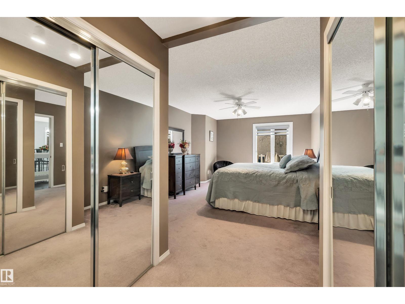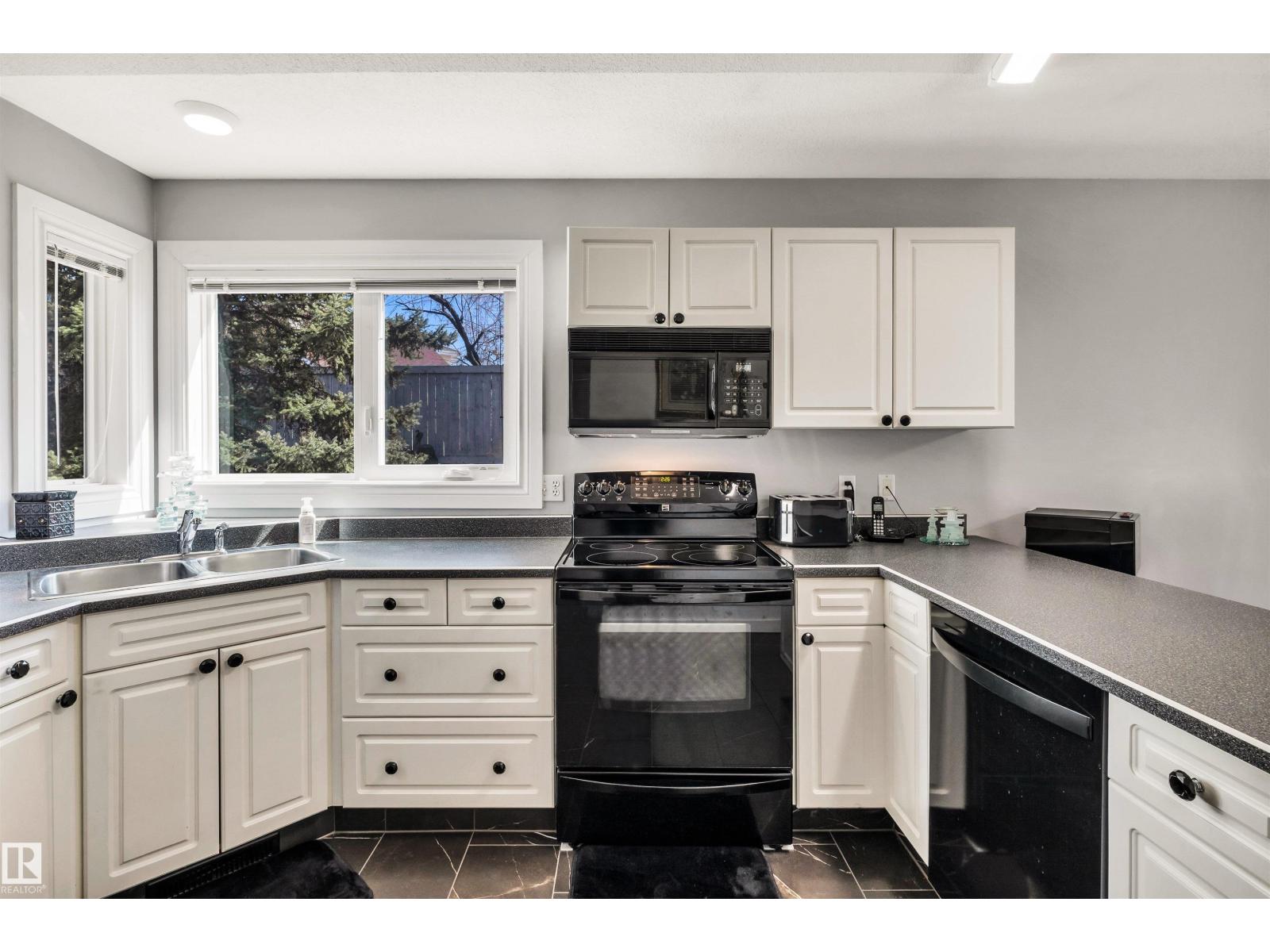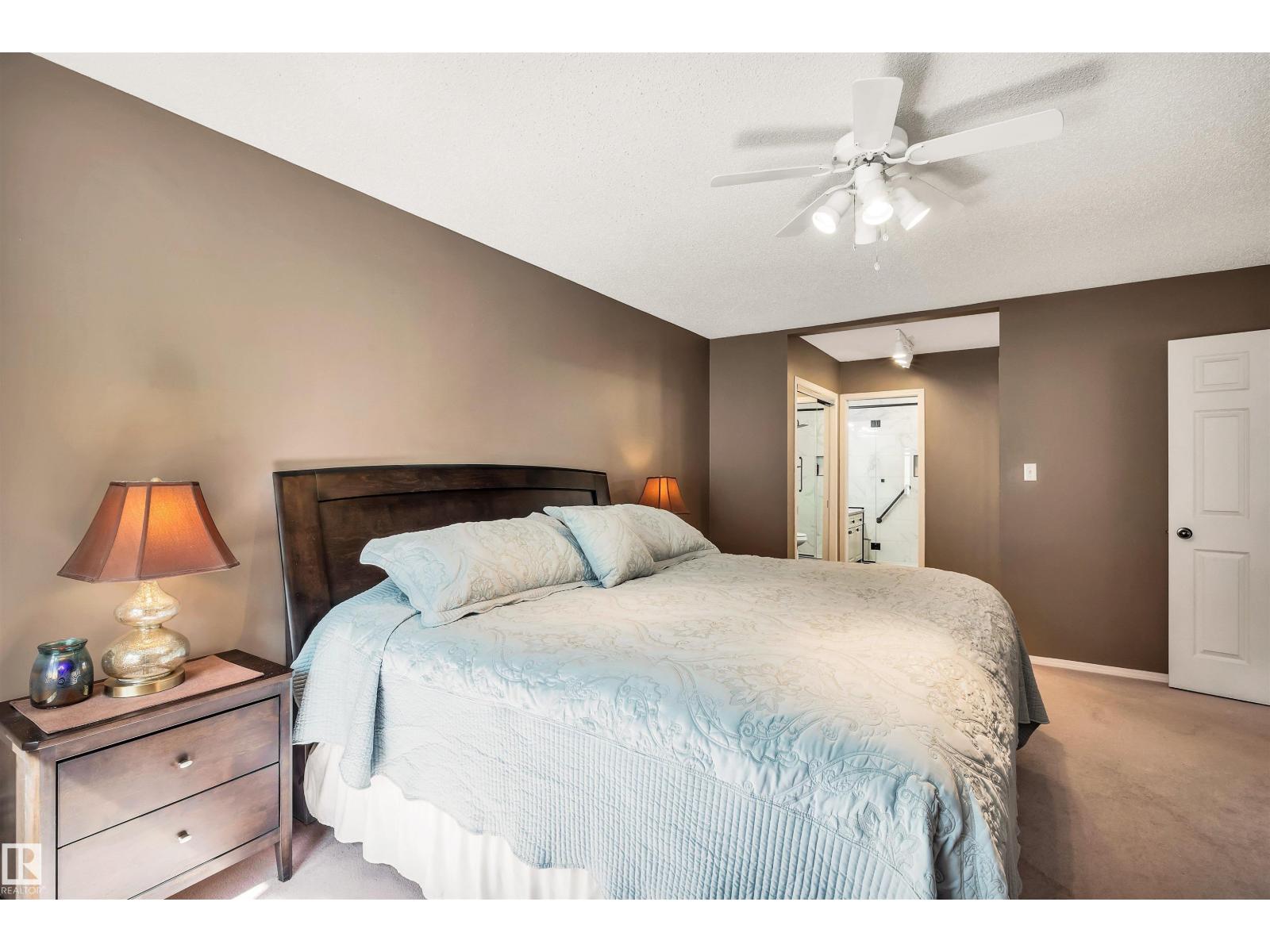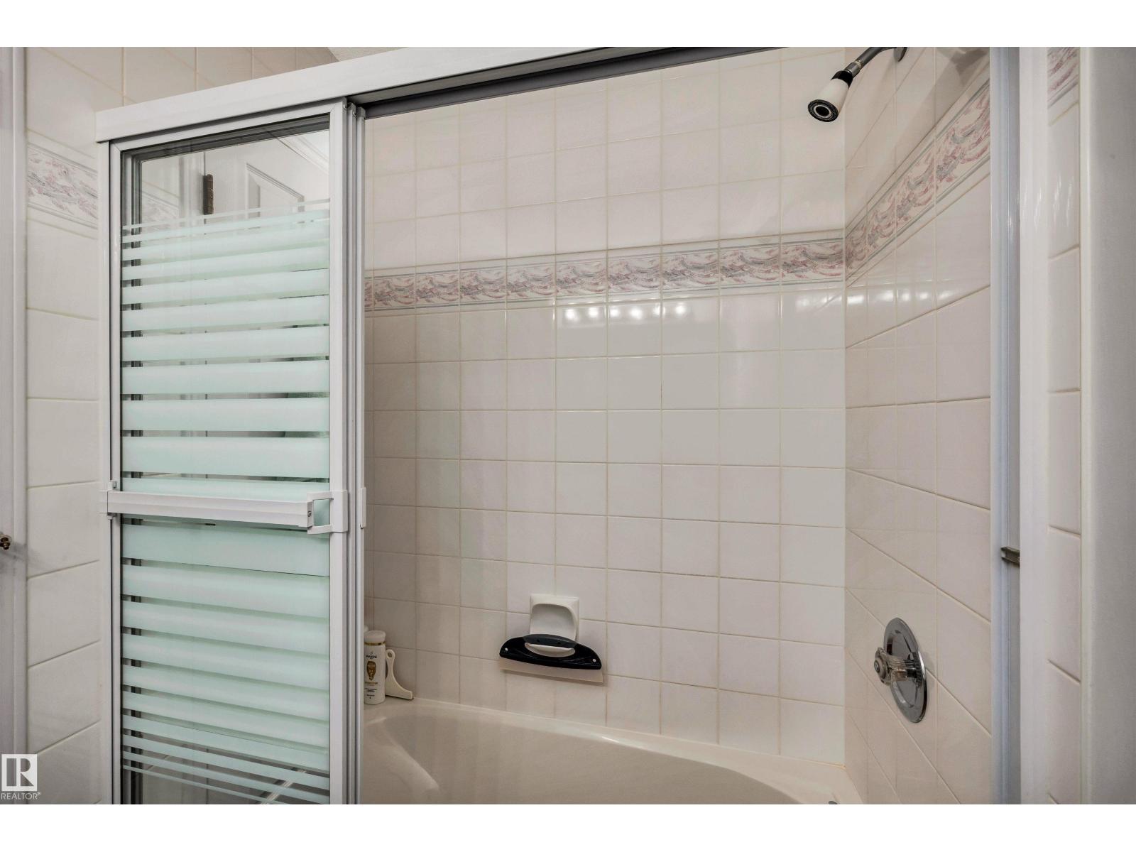 Welcome to this beautifully maintained bungalow in the exclusive Twin Brooks Classics, a sought-after 16+ adult living community. Thoughtfully updated, this home offers an open-concept main floor ideal for comfortable living & entertaining. The timeless white kitchen features dual pantries & flows seamlessly into the main living space. Enjoy the ease of main floor laundry & newer vinyl windows w/custom blinds. The spacious primary includes mirrored closets & renovated spa-inspired ensuite w/heated floors & tiled walk-in shower w/bench. The fully finished basement adds a third bedroom, full bath, large rec room w/pool table, gas fireplace & ample storage. Relax outdoors on the composite deck w/gas BBQ hookup. Complete w/retractable screens on both front/back doors, A/C & double attached garage. Newer furnace & HWT. Located on the MacTaggart Sanctuary & Whitemud Creek Ravine w/extensive walking trails, outdoor skating rink, community league building/garden & more! Close to shopping & all amenities. A gem! (id:63190)