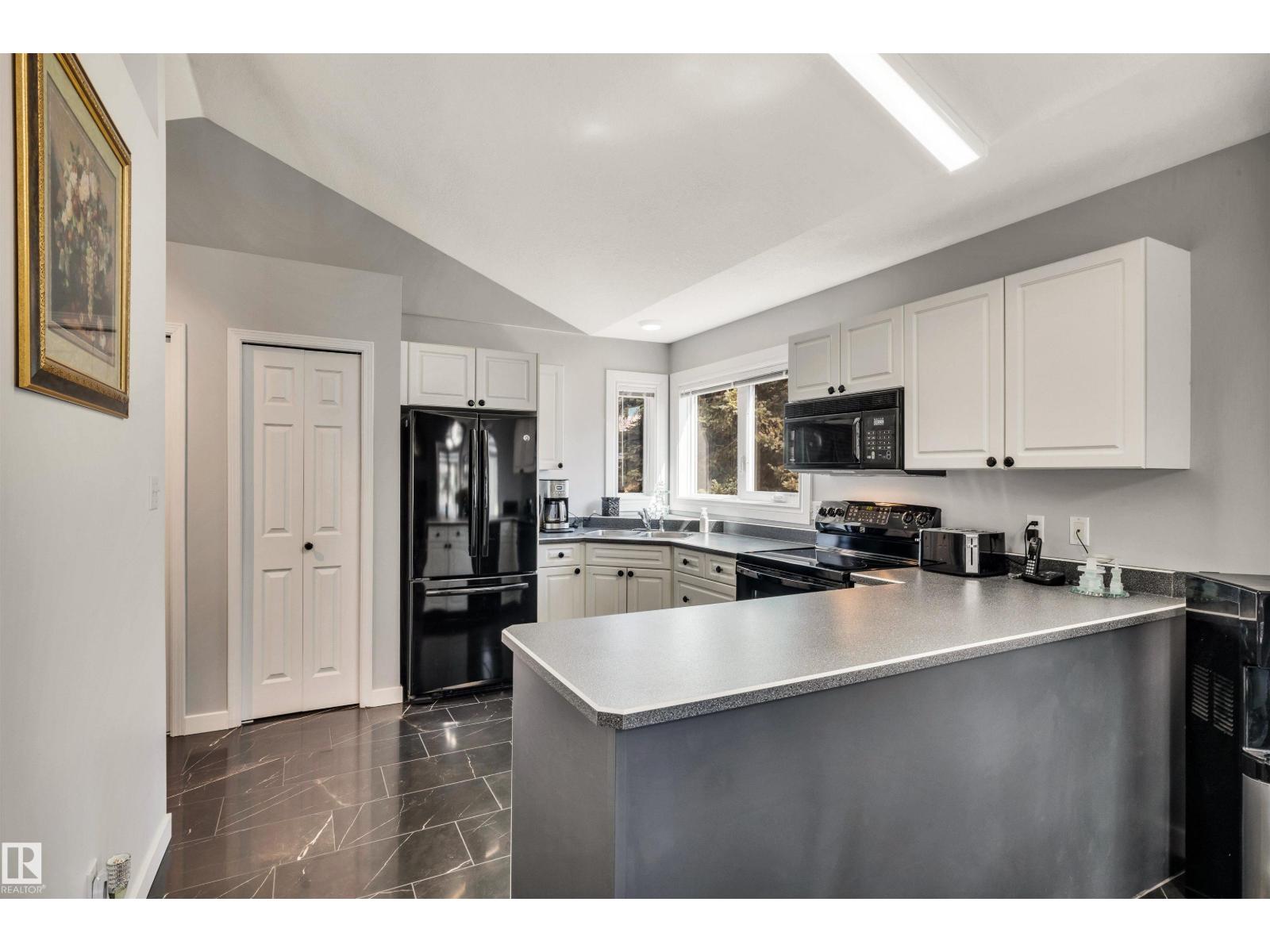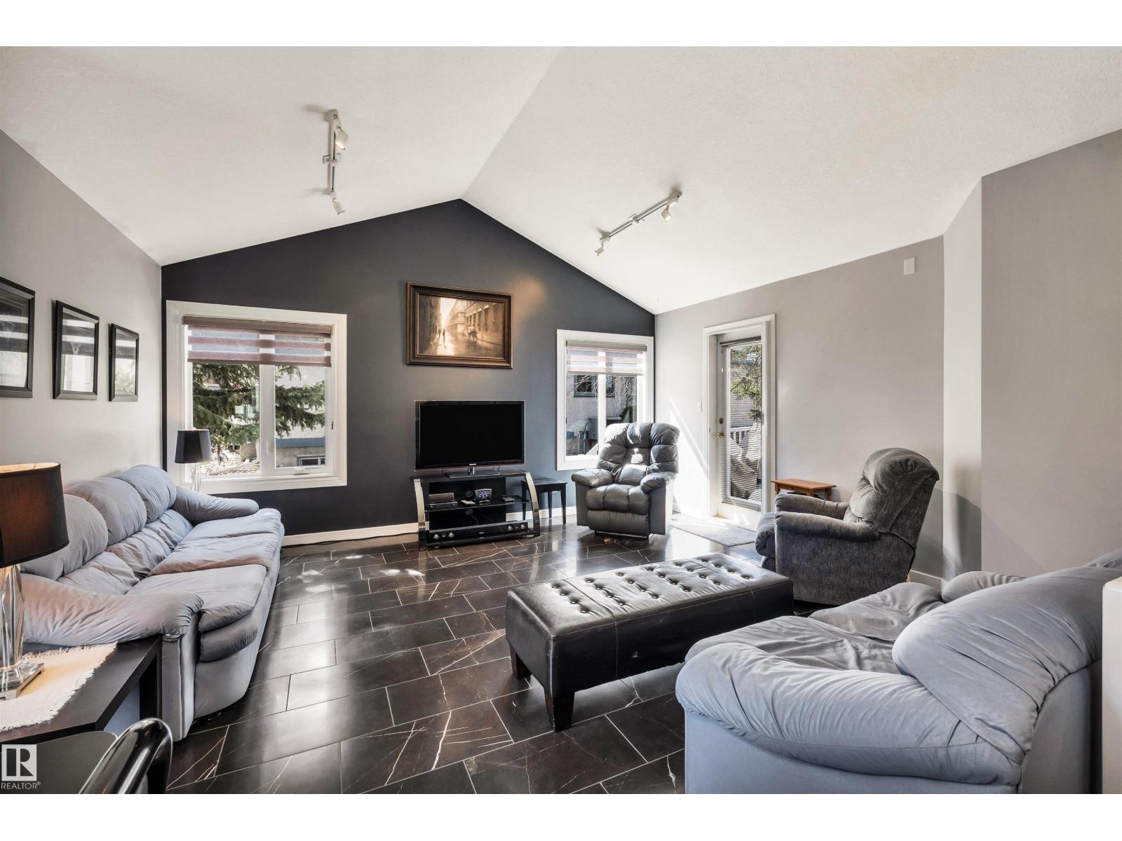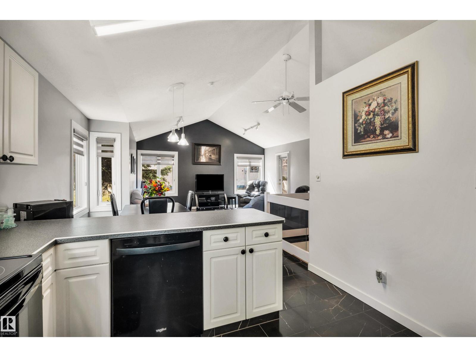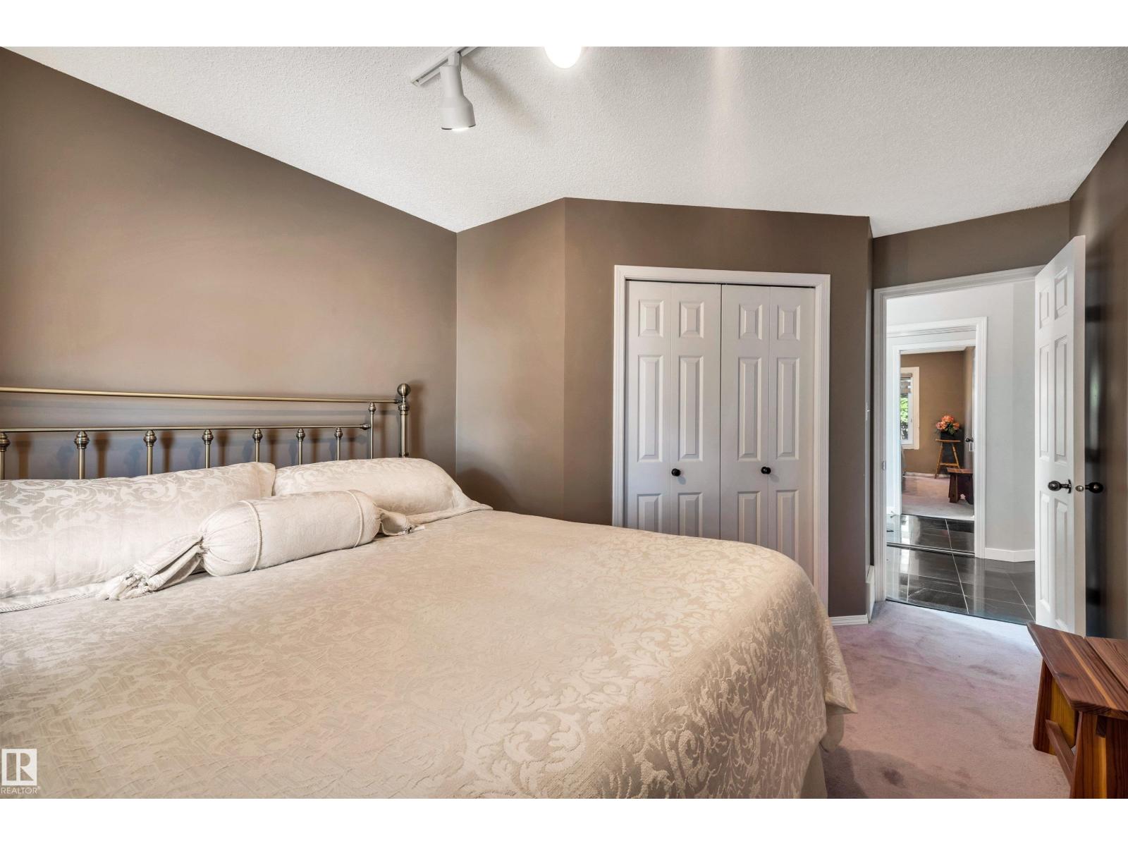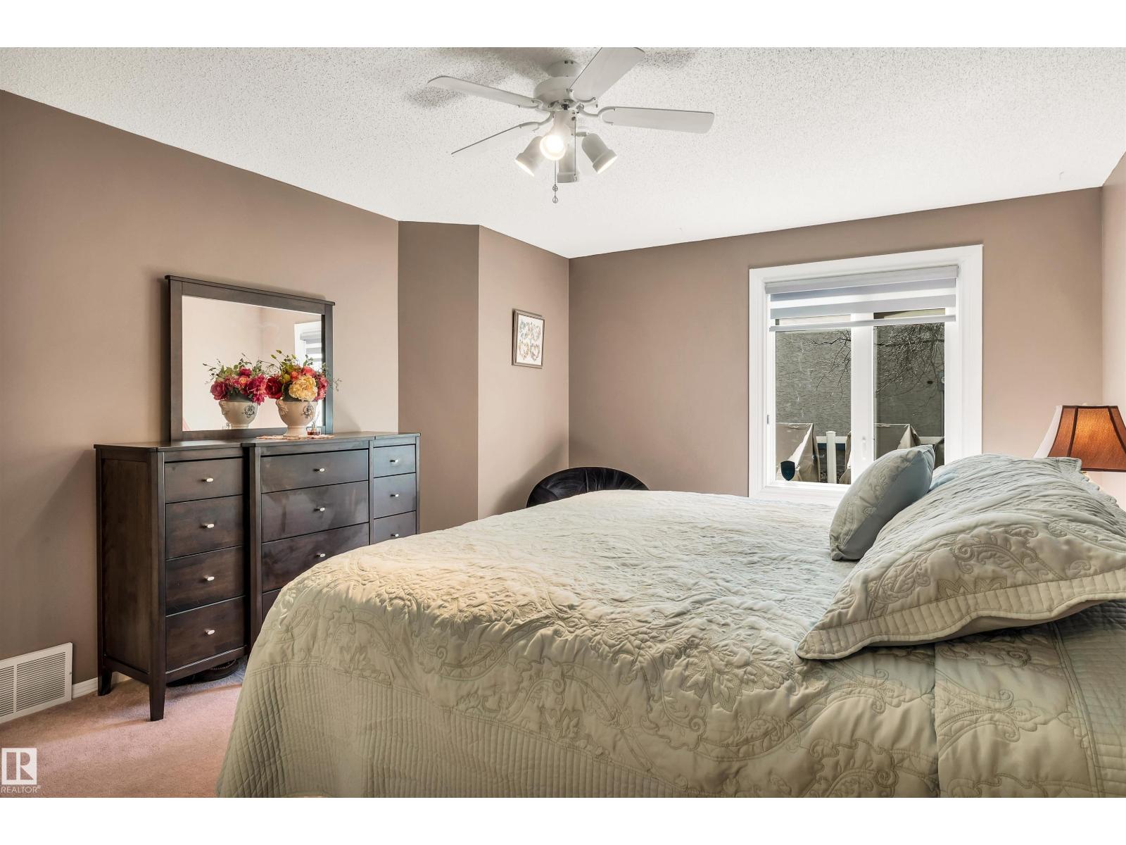 Welcome to this beautifully maintained bungalow in the exclusive Twin Brooks Classics, a sought-after 16+ adult living community. Thoughtfully updated, this home offers an open-concept main floor ideal for comfortable living & entertaining. The timeless white kitchen features dual pantries & flows seamlessly into the main living space. Enjoy the ease of main floor laundry & newer vinyl windows w/custom blinds. The spacious primary includes mirrored closets & renovated spa-inspired ensuite w/heated floors & tiled walk-in shower w/bench. The fully finished basement adds a third bedroom, full bath, large rec room w/pool table, gas fireplace & ample storage. Relax outdoors on the composite deck w/gas BBQ hookup. Complete w/retractable screens on both front/back doors, A/C & double attached garage. Newer furnace & HWT. Located on the MacTaggart Sanctuary & Whitemud Creek Ravine w/extensive walking trails, outdoor skating rink, community league building/garden & more! Close to shopping & all amenities. A gem! (id:63190)