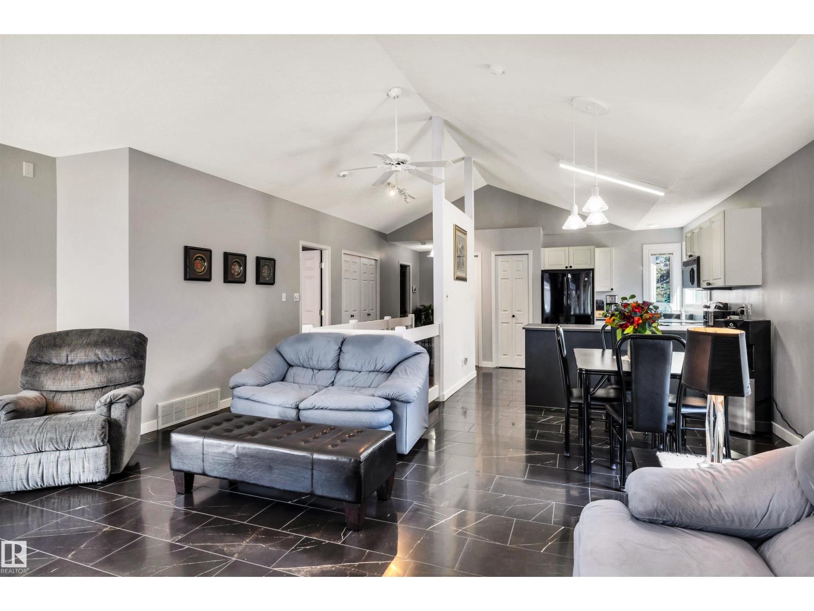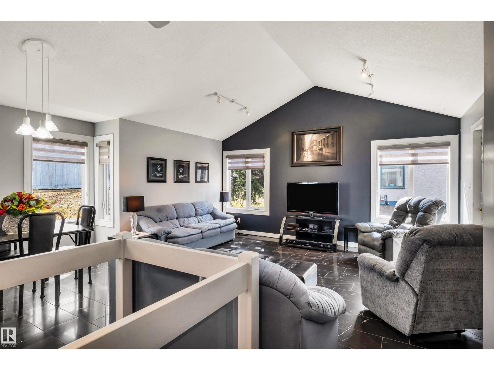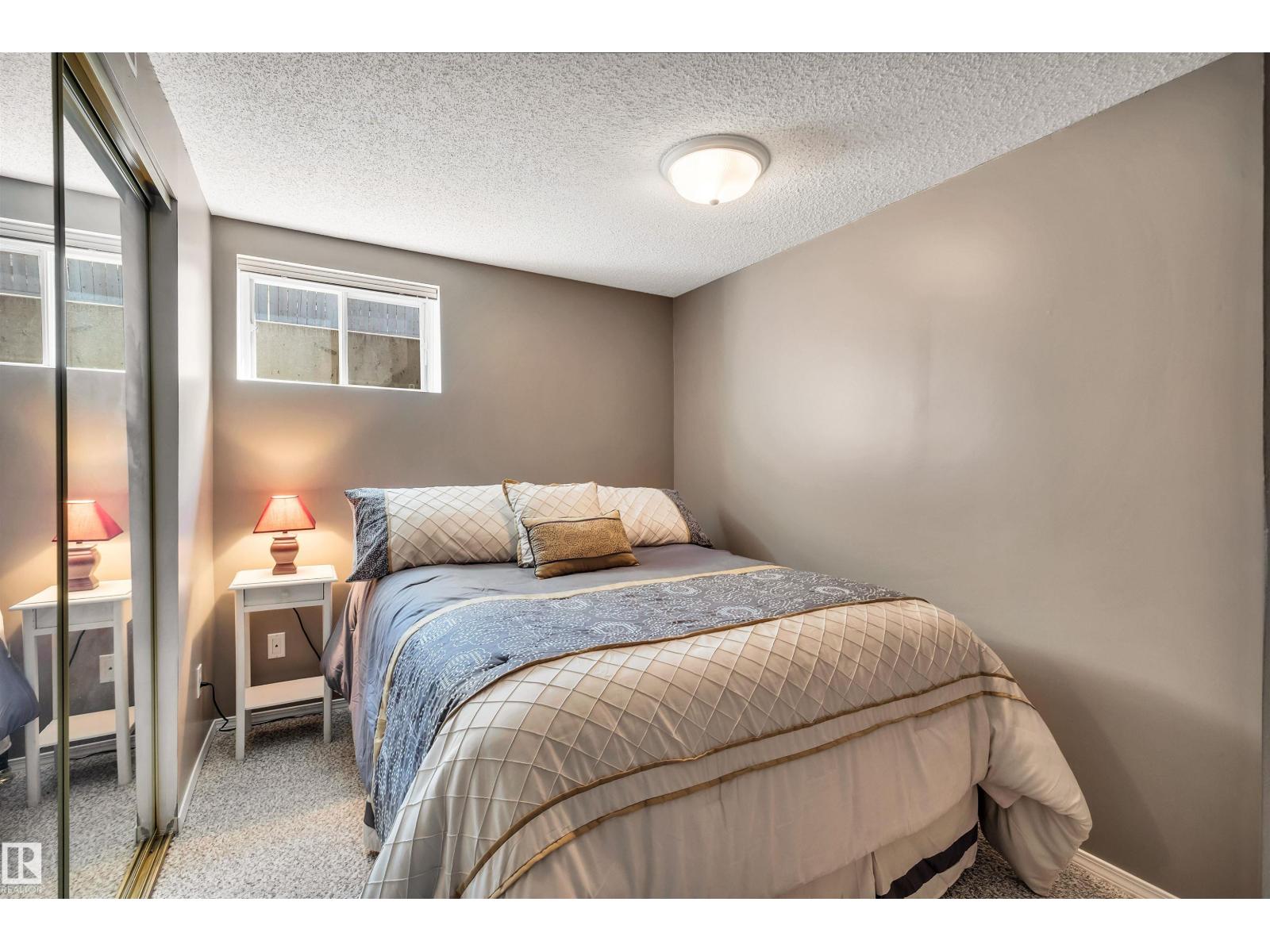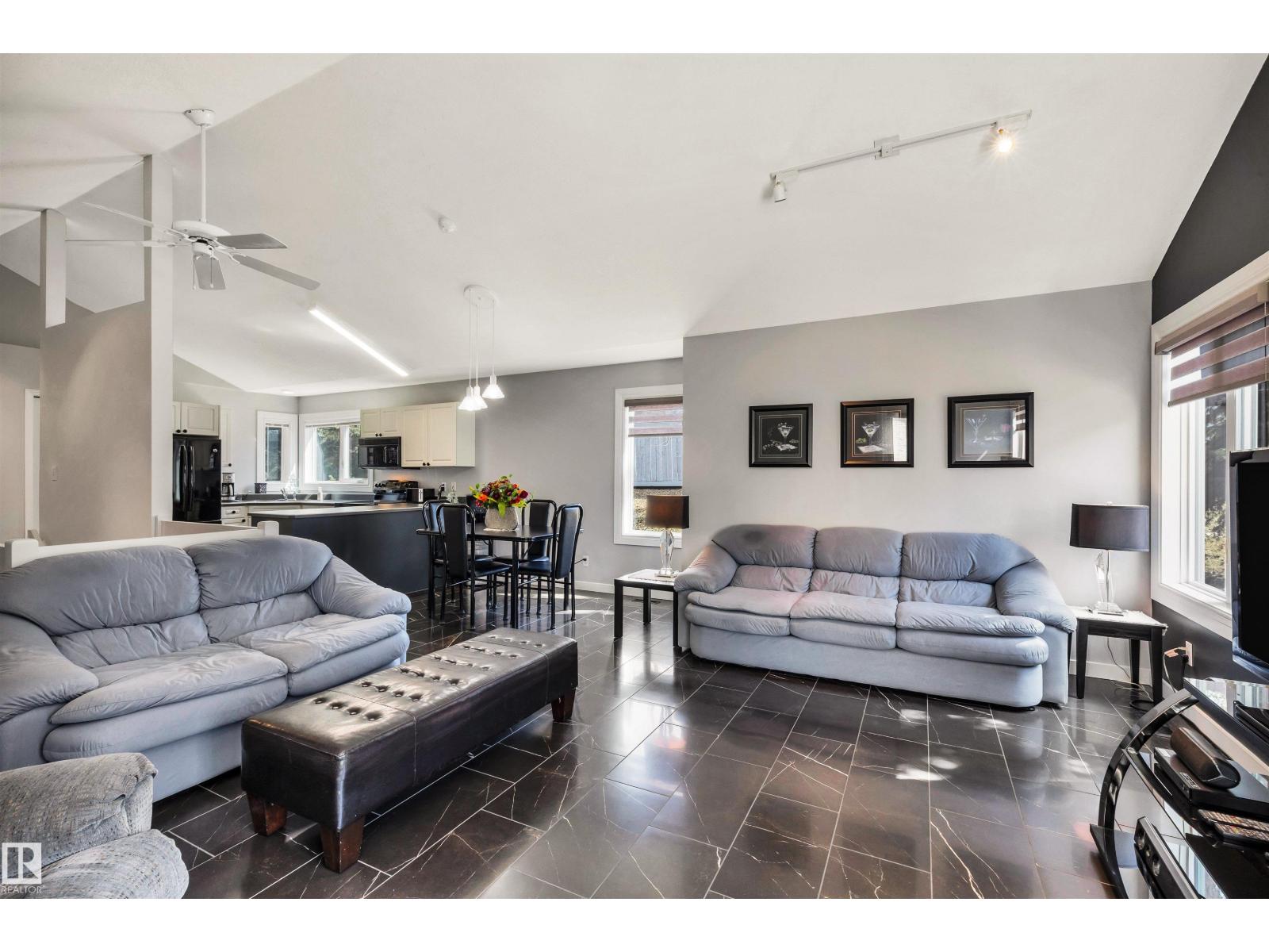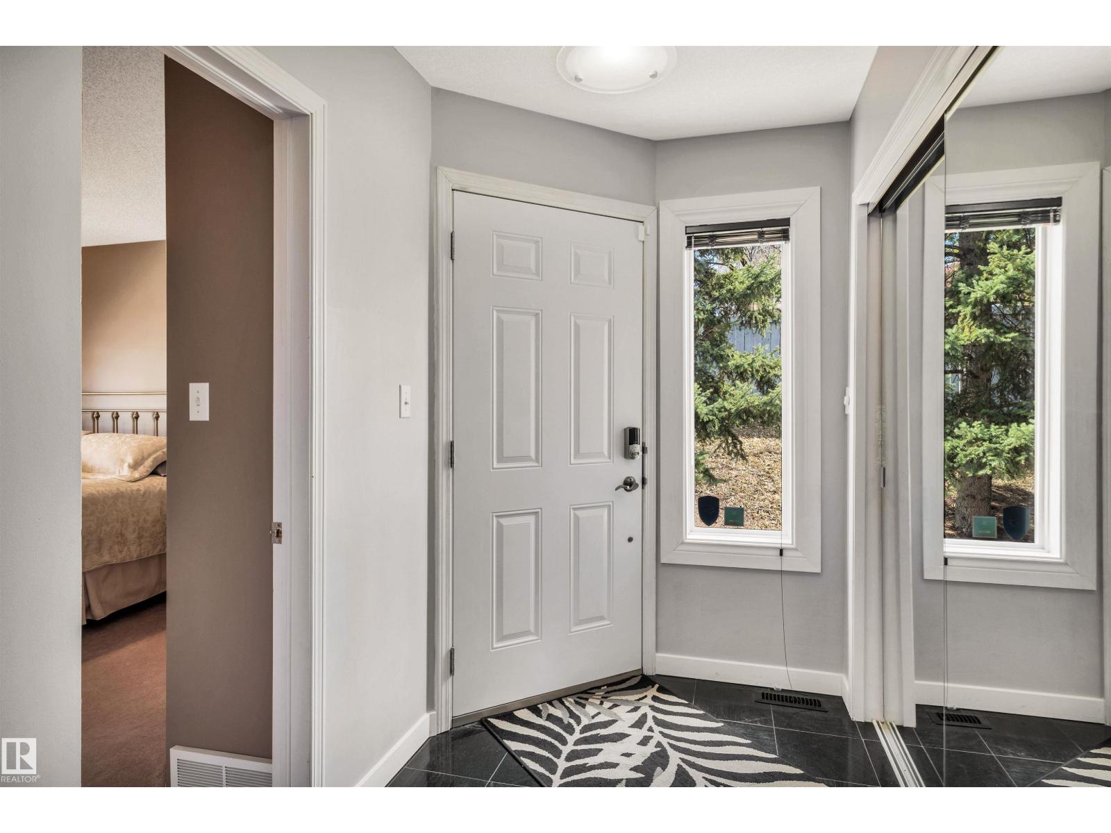 Welcome to this beautifully maintained bungalow in the exclusive Twin Brooks Classics, a sought-after 16+ adult living community. Thoughtfully updated, this home offers an open-concept main floor ideal for comfortable living & entertaining. The timeless white kitchen features dual pantries & flows seamlessly into the main living space. Enjoy the ease of main floor laundry & newer vinyl windows w/custom blinds. The spacious primary includes mirrored closets & renovated spa-inspired ensuite w/heated floors & tiled walk-in shower w/bench. The fully finished basement adds a third bedroom, full bath, large rec room w/pool table, gas fireplace & ample storage. Relax outdoors on the composite deck w/gas BBQ hookup. Complete w/retractable screens on both front/back doors, A/C & double attached garage. Newer furnace & HWT. Located on the MacTaggart Sanctuary & Whitemud Creek Ravine w/extensive walking trails, outdoor skating rink, community league building/garden & more! Close to shopping & all amenities. A gem! (id:63190)