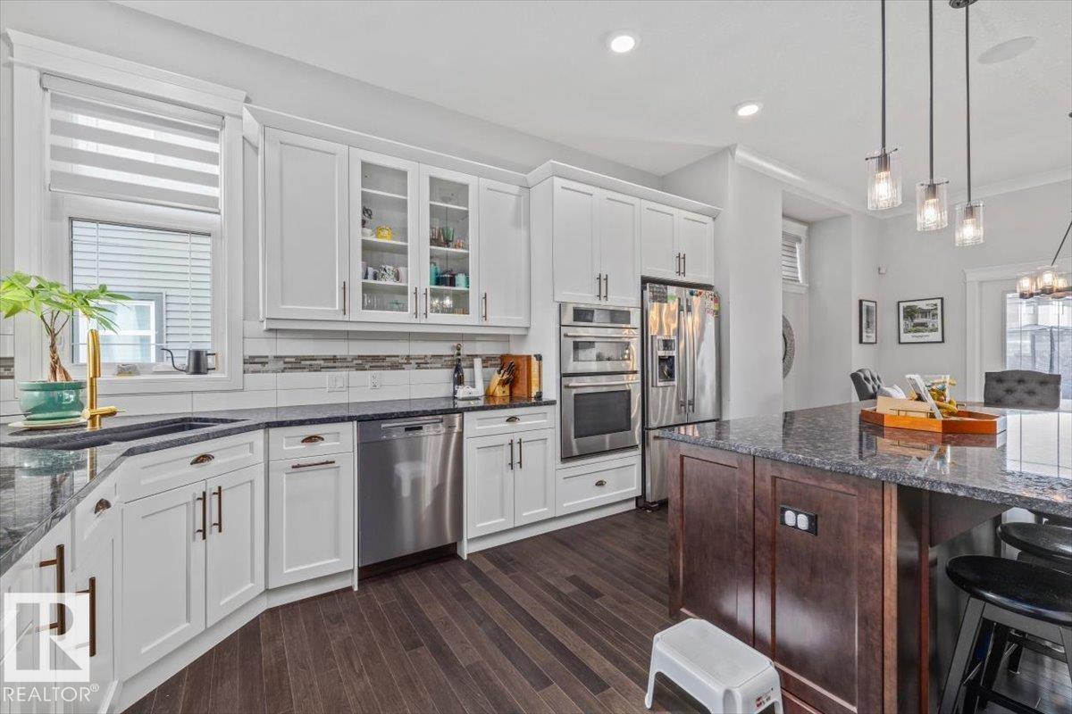 Exceptional fully finished 1,820 sq ft 5 bedroom bungalow, ideally located in the prestigious community of Granville. Showcasing a grand foyer with soaring 10 ft ceilings. Home offers an impressive open-concept design complemented by rich hardwood flooring & central A/C for year-round comfort. The gourmet kitchen is a true showpiece, featuring stunning white cabinetry, Granite countertops, Meile & Jenn Air appliances & an expansive island perfect for entertaining. A main floor den provides an ideal workspace for the modern professional. The great room is anchored by a featured Brick wall & gas fireplace. Massive West-facing windows provide tons of natural light. Retreat to the luxurious primary suite, with its inspired 5-pce spa like ensuite & spacious walk-in closet. Fully finished basement offers a 4th bdr, large rec room & full bath. Oversized Double heated Garage has epoxy flooring. Beautifully landscaped & fenced yard, covered deck, designer paving stone patio, & fire pit, complete this rare offering (id:63190)