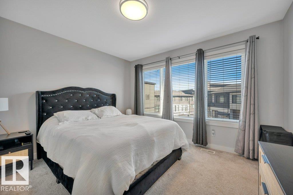 Welcome home to this stylish townhouse in the sought-after community of Keswick. Offering 3 bedrooms, 2.5 baths, and a double attached garage, this home blends comfort and functionality. The open-concept main floor features quartz countertops, vinyl plank flooring, stainless steel appliances, and a balcony off the living room—perfect for enjoying your morning coffee or evening unwind. Upstairs, the spacious primary suite includes a 4-piece ensuite, complemented by two additional well-sized bedrooms and another full 4-piece bath. Ideally located just minutes from shopping and amenities at Essence at Windermere South and Currents of Windermere, plus Windermere Golf & Country Club, with quick access to Anthony Henday Drive for easy commuting. (id:63190)