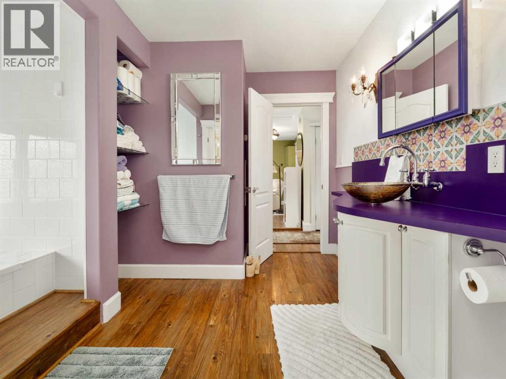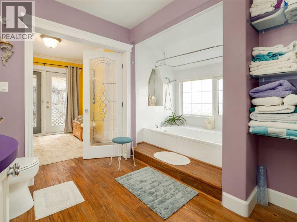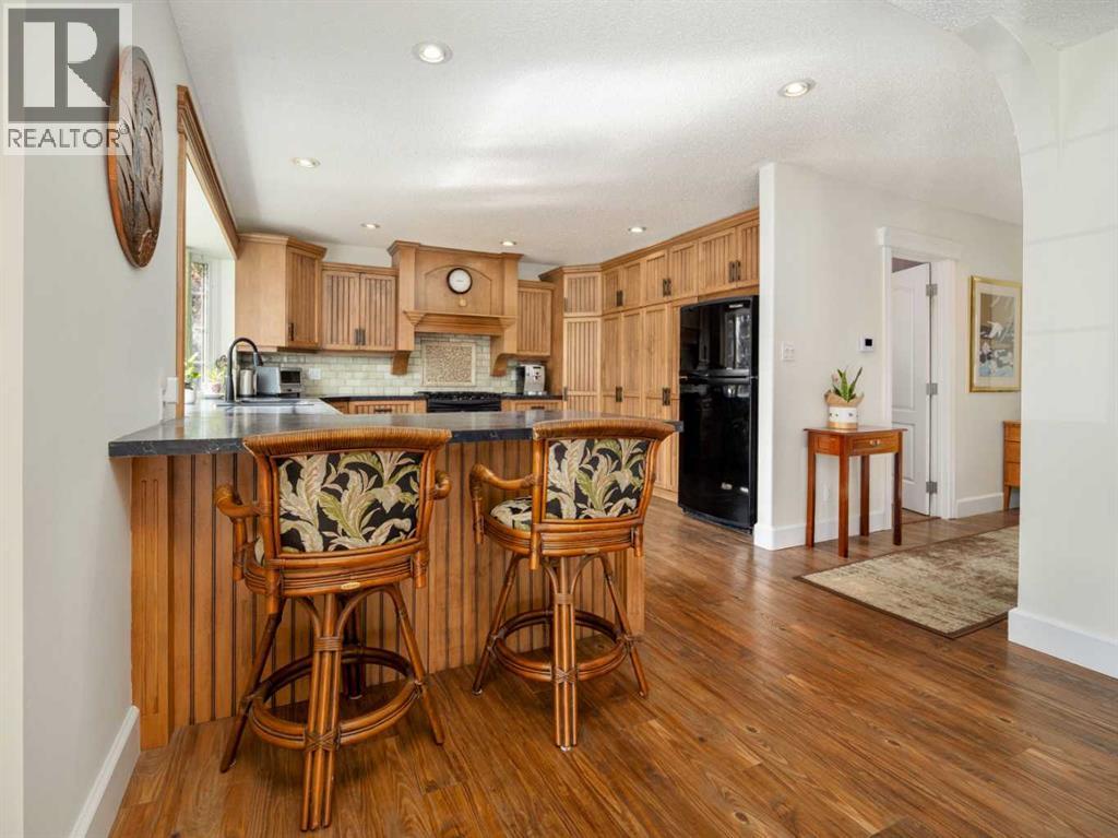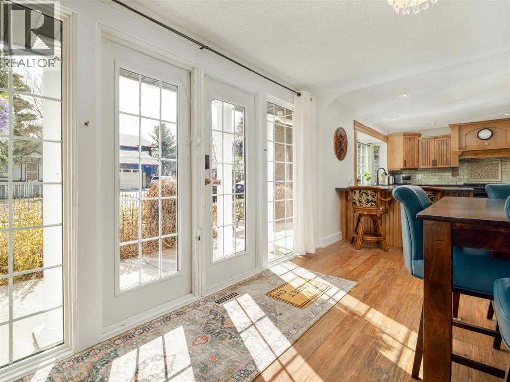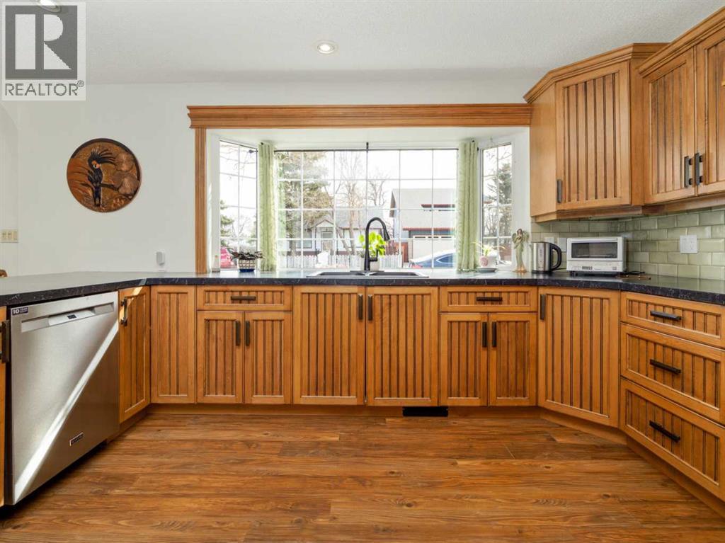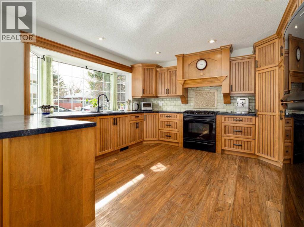 Beautifully updated bungalow featuring architectural arches, a spa like bathroom, cosy living areas as well as interior and exterior french doors, huge windows that allow for a ton of light to flood in and, allow you to enjoy the morning sunrise in your front living room and the evening sunset from your family room! Sitting on a large 66 x 125 ft lot, that is landscaped to perfection , this home is a joy to show both inside and out. Featuring 2 bedrooms and 2 full baths as well as a 23 x 23 heated detached double garage with 9 ft doors, off alley parking and a lovely large deck and pergola, and central A/C . This home will appeal to both retiree's and young families , as all the living spaces are on the main level for easy one-floor living, with an open-concept living, dining, kitchen layout designed for those that love to entertain, or perfect for family time. And you Just have to see this kitchen! This kitchen rivals homes that you would see in a much higher price range or in magazines! This kitchen is a show stopper! If you love to cook and entertain you will be the talk of the town!. Some of the great features of this kitchen are the custom wood cabinetry featuring slow close drawers and cupboards, gas range, gorgeous wood hood fan, cabinets and pantry with pull out shelving and appliance garages with plug ins. The current owners have added the 3 Pc bathroom along with adding the 2nd bedroom and gas fireplace with an acoustic wall in the living room, also adding and upgrading all electrical plugs and light switches to the modern square switches along with finishing a cute storage area accessible from the outside rear of the home for all of your gardening tools. The rear deck and pergola have been painted and it's now ready for the new owners to start enjoying the lovely weather headed our way. Conveniently close to schools, parks, shopping, and transit. Recent upgrades also include a newer furnace, A/C, dishwasher, garage shingles, pot lights front and back, professional landscaping, tree trimming, and fresh paint throughout most of the home. A rare find you won’t want to miss. (Please note that the home is not barrier free, and there is one step down into the slightly sunken living room, home could possibly be modified to be barrier free with some modifications) (id:63190)
