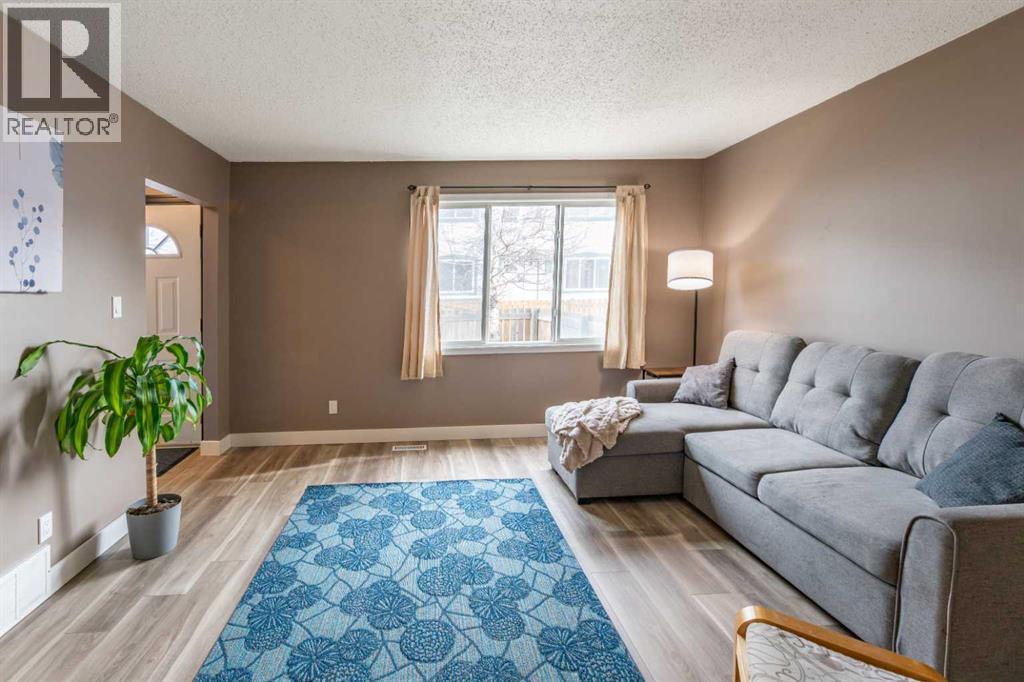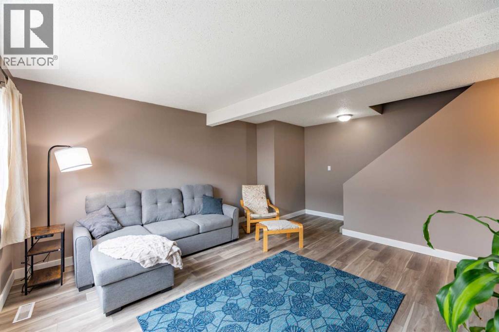This end-unit condo is fully developed and nicely put together. Offering 3 bedrooms and 1.5 baths, this property could work well for a first time buyer or an investor. The main level offers a spacious living room, kitchen, and dining room, along with a 2pc bath. The front entry has a large closet, the space is bright, and this level had brand new vinyl plank flooring just installed. All 3 bedrooms are on the upper level along with the full bathroom. Upstairs also benefits from good quality finishings including laminate floors, nice paint choices, and tile work on the bathroom tub surround. The lower level is developed with a family room and a nook that would make for a great little home office space. Plus, the large laundry/utility room has room for storage. Outside, the front yard is fenced and the assigned parking stall is conveniently located very close to the unit. Extra street parking is also available and close by. Affordable living close to many amenities including a grocery store, restaurants & cafes, and a school. (id:63190)