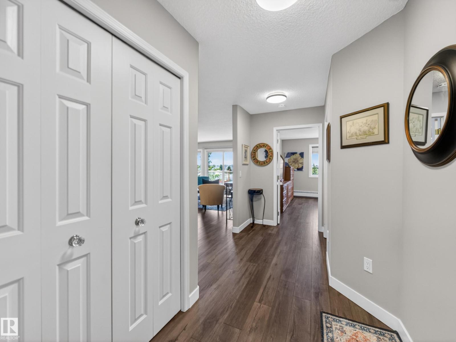 Welcome to Heritage Park Place, an adult living condo (age 55+) offering comfort, community, convenience, and quality in a well-maintained building with great amenities. The spacious 1,131 sq. ft. open concept floor plan of this top floor south facing condo is sure to impress, with its abundance of natural light, large balcony, and recently updated kitchen, it’s the perfect place to spend time with family and friends. The primary bedroom features a walk-through closet and ensuite bathroom. There is a second bedroom and second full bathroom. Additional highlights include, air conditioning, in-suite laundry, underground parking, and a storage locker located in separate storage room just down the hall. Building amenities include a guest suite, meeting rooms, and car wash. Pride of ownership is evident throughout this condo, and the entire building. Ideally located close to shopping, restaurants, and public transportation. (id:63190)