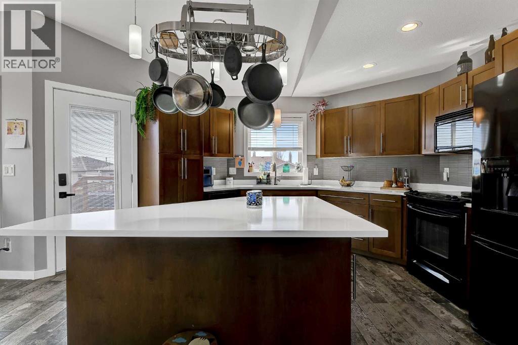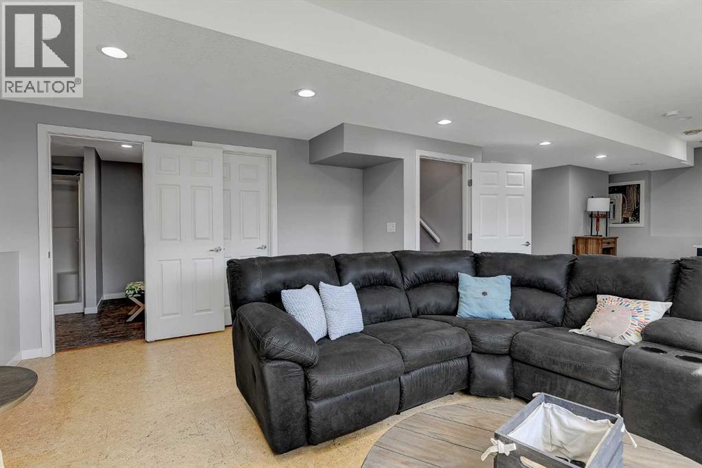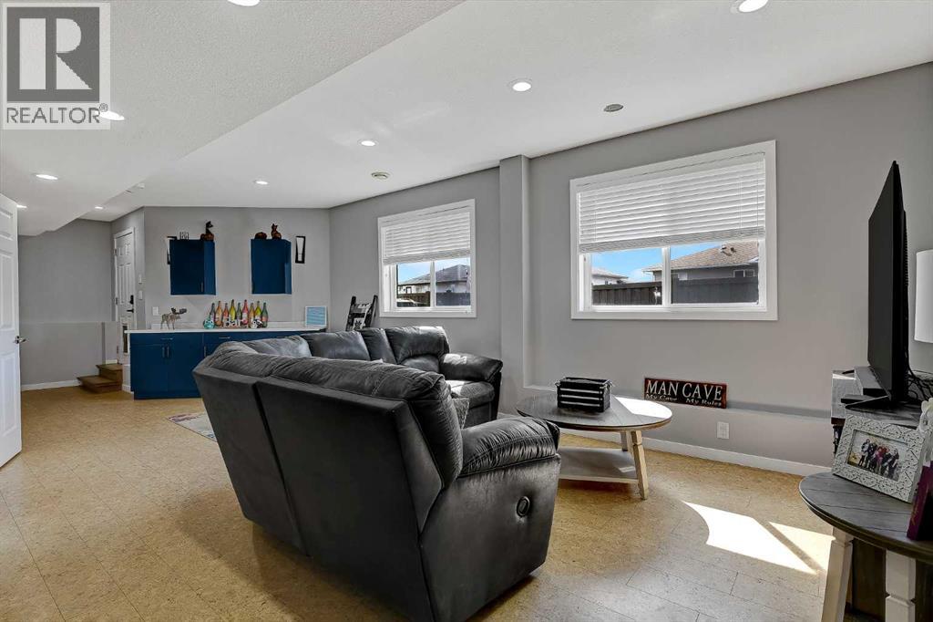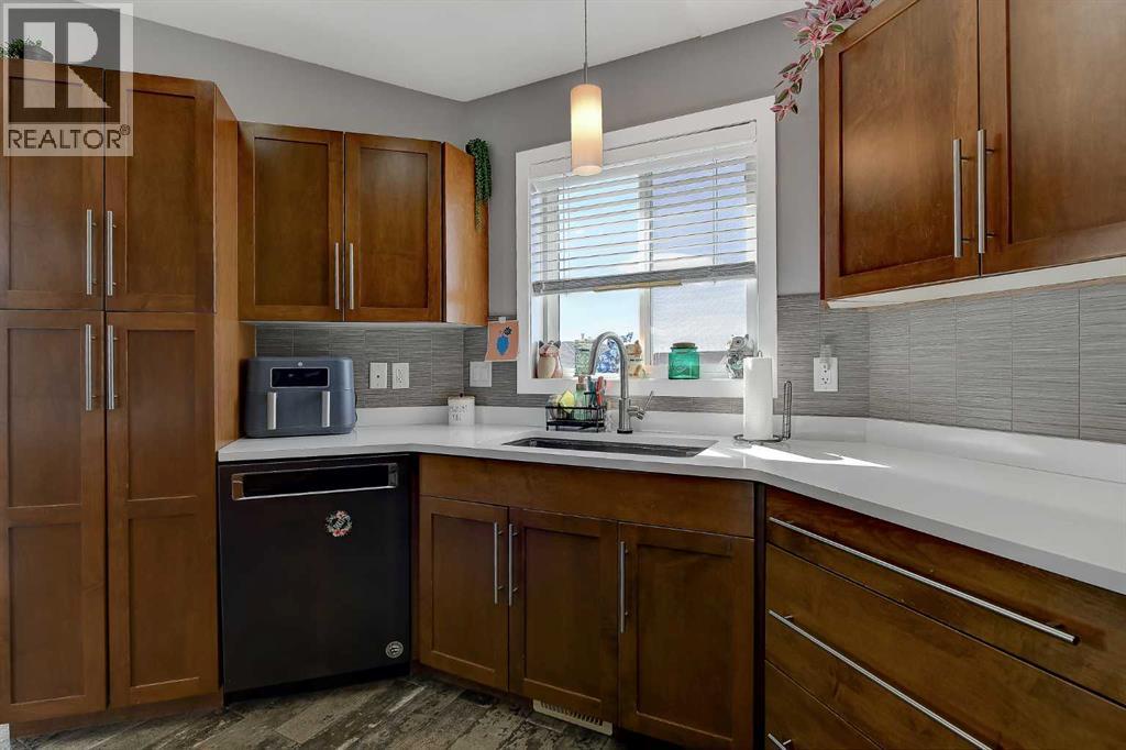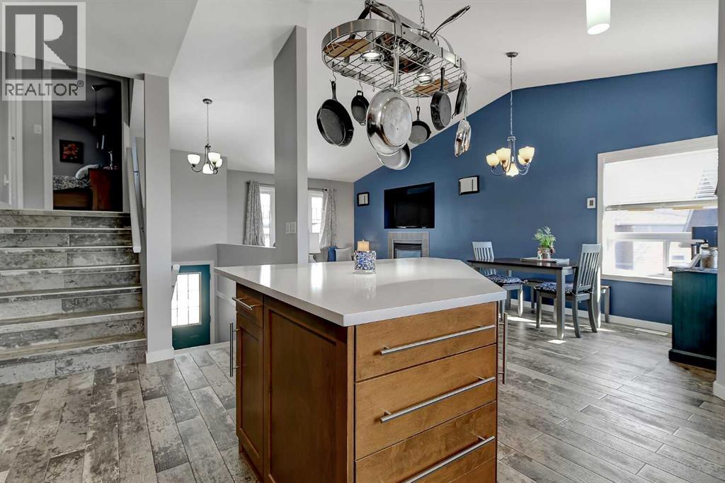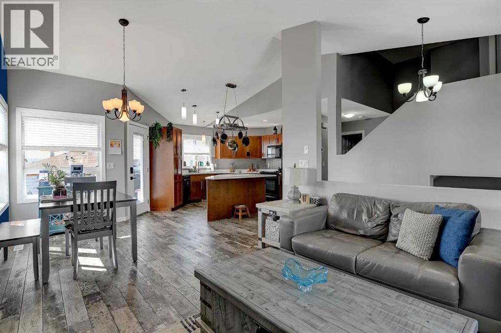 If you’ve been waiting for something that truly stands out, this fully developed, modified bi-level in Crystal Heights delivers in a big way—especially with its rare and incredibly versatile DETACHED GARAGE/STUDIO that takes this property to the next level!The curb appeal is evident with a large driveway and dedicated RV parking pad to the west, along with a boarded and heated 22x22 attached double garage. Step inside to an open-concept design enhanced by vaulted ceilings that carry through the kitchen, dining, living area, and even the office space/spare bedroom, creating an airy and expansive feel. Newer flooring throughout and central air conditioning add both comfort and modern appeal.The kitchen is designed to impress, offering abundant cabinetry and counter space, a built-in wall pantry, granite countertops, fully tiled backsplash and a centre island that provides convenient bar seating and features a built-in wine rack, and an overhead pot rack, making it as functional as it is stylish. The adjacent dining area is generously sized and provides direct access to the large rear deck—perfect for everyday living and entertaining alike. Nearby, the living room is warm and inviting, anchored by a cozy gas fireplace with space for a T.V. above.The main floor includes two well-sized bedrooms, a full 4-piece bathroom, and a convenient laundry closet with stacking washer/dryer. Upstairs, the private primary suite comfortably accommodates a king-sized bed and features a walk-in closet with built-in storage, along with a 4-piece ensuite complete with dbl sink vanity and a dual-head shower. A sliding barn door adds a touch of character and charm to the space.The fully developed basement continues to impress with cork flooring, a 4th bedroom, a 3-piece bathroom featuring two showerheads—including a rain shower, and a utility/storage room. The walk-out basement leads directly to one of the home’s most unique highlights—a thoughtfully designed backyard featuring maintenan ce-free astro turf for year-round greenery, a lower patio with a gas line for BBQ, stamped concrete pad, garden boxes, and a shed.And then there’s the SHOWSTOPPER!: the detached 657 SQ. FT. HEATED GARAGE/STUDIO. Whether you envision a man cave, guest space, home business, or creative studio, this fully finished space is ready to go with hot water on demand, recessed lighting, a large 3-piece bathroom with shower, and even a Murphy bed for added flexibility.Situated on a huge lot in the desirable Crystal Heights subdivision, this home is ideally located close to three schools and all essential amenities, making it a perfect fit for families and those looking for both convenience and standout features in one exceptional property. Call to arrange your private viewing! (id:63190)