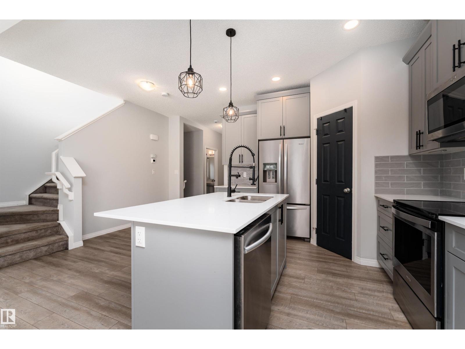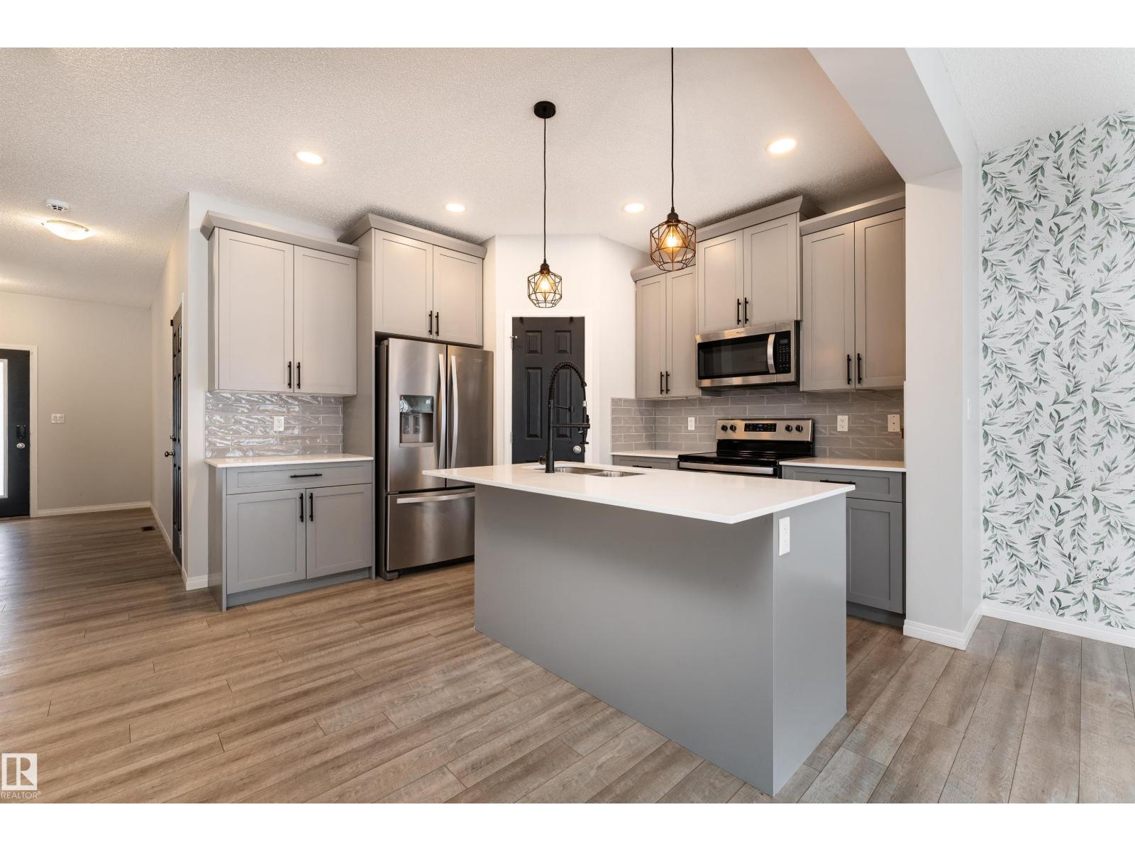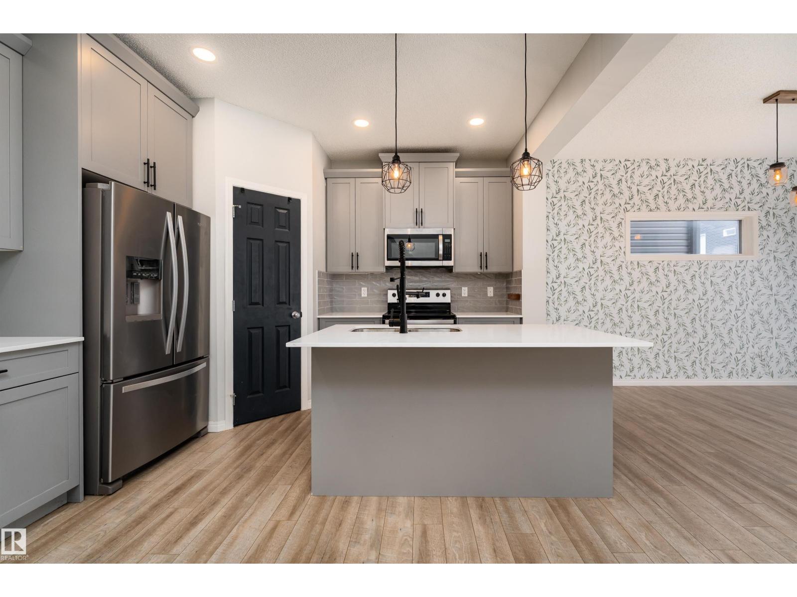Experience 1,735 sq. ft. of bright, modern living where pondside walks, natural light, and prime Keswick convenience come together. Welcome to this beautiful 2-storey home in Keswick offering 4 bedrooms and 3 bathrooms designed for modern family living. The open-concept main floor features a sleek kitchen with quartz island, pendant lighting, and walk-in pantry, flowing into bright living and dining areas with a custom accent wall and large windows for natural light. Step outside to a spacious deck and yard in this SW-facing home, perfect for relaxing or entertaining. Upstairs includes convenient laundry, a primary suite with walk-in closet and 5-piece ensuite with double sinks, plus two additional bedrooms and a full bath. The fully finished basement adds a large recreation area and 4th bedroom. Located beside a scenic pond and walking path with golf, parks, schools, and shopping nearby, plus a single attached garage—a rare Keswick opportunity not to be missed! (id:63190)