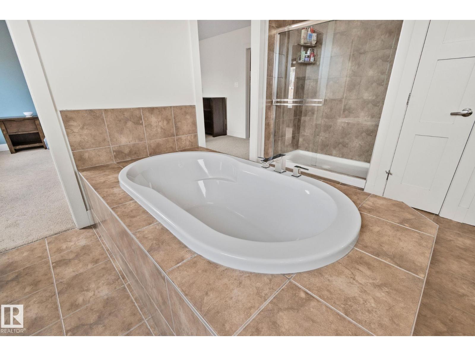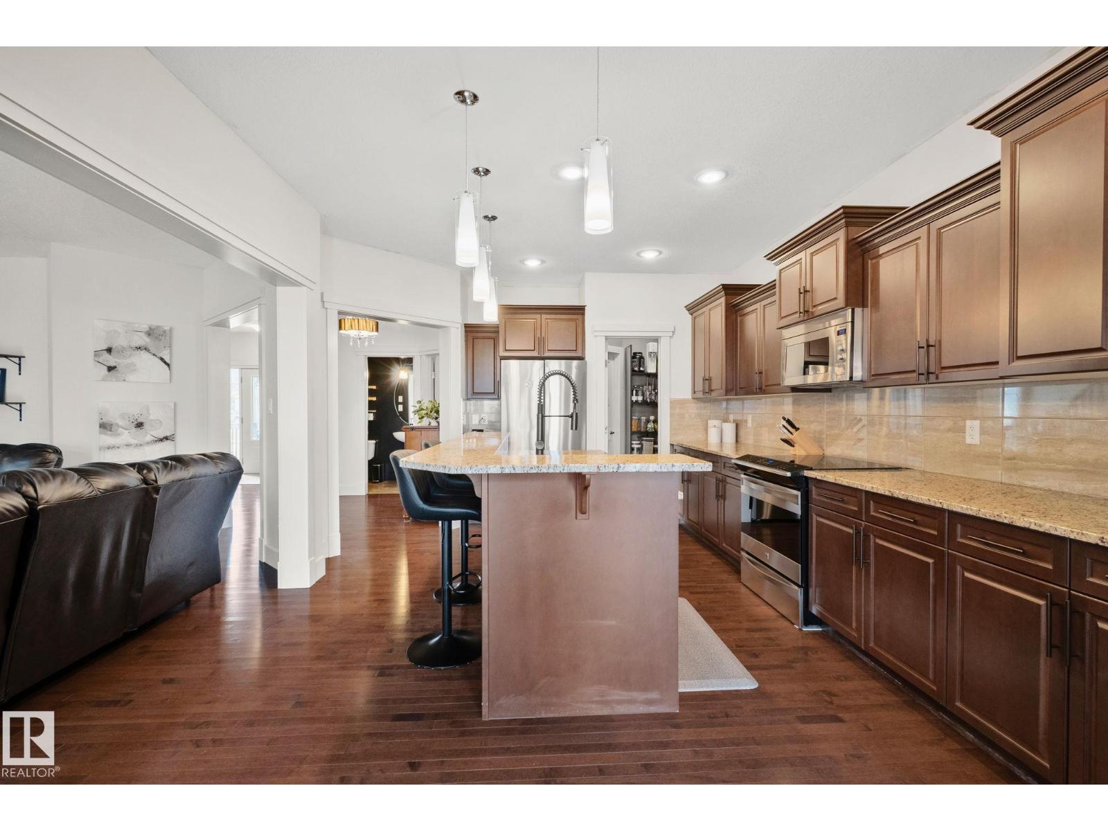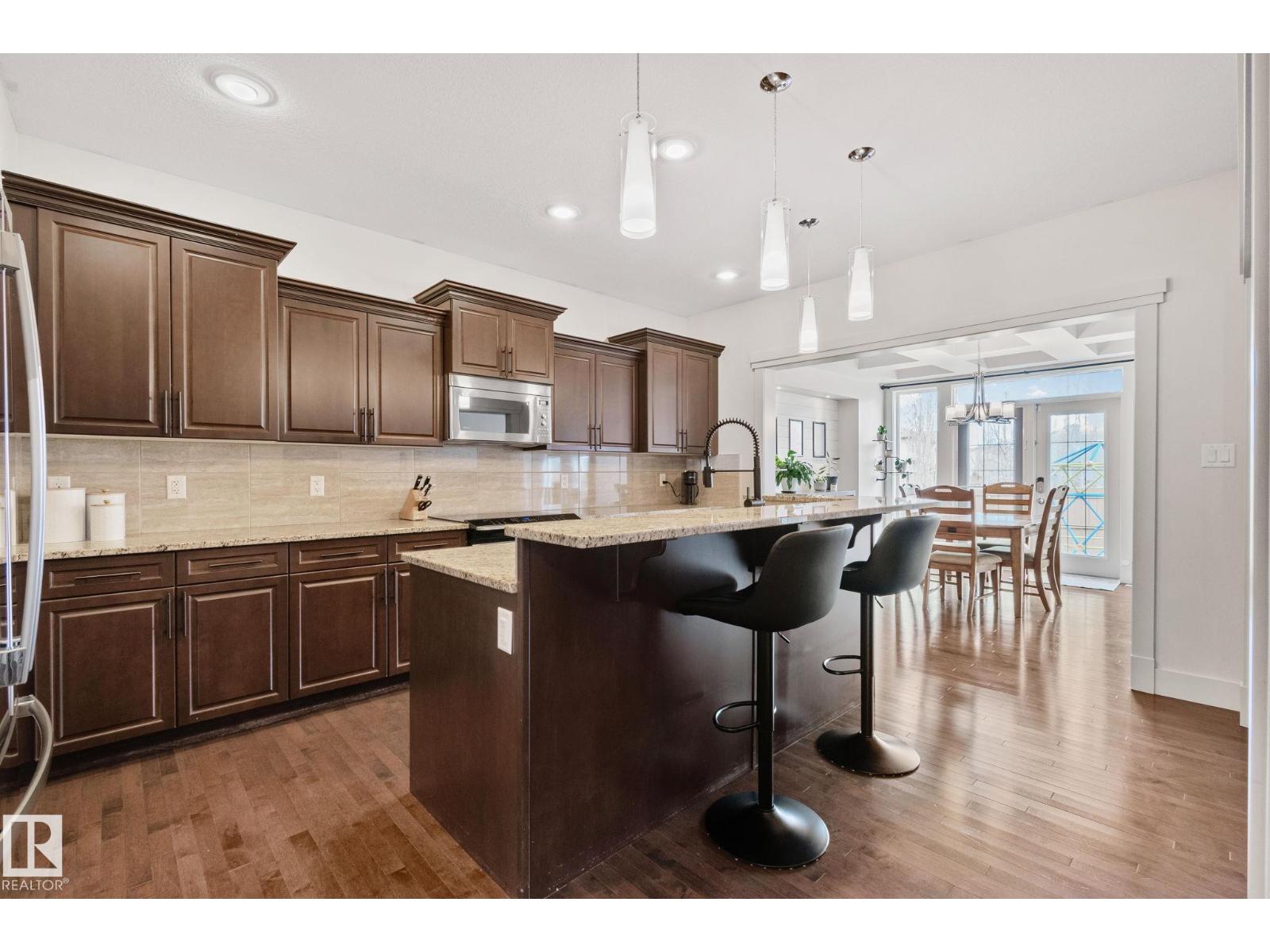 Welcome to Summerwood, Sherwood Park’s favourite family community! This beautifully maintained, freshly painted 2,555 SQFT Pacesetter 2-story offers the perfect blend of style and function. Stunning chef’s kitchen with granite countertops, new stainless steel appliances, huge island, and walk-through pantry. Bright dining area with coffered ceiling opens to a large family room with gas fireplace and hardwood floors. Stay cool with full A/C or entertain on the stamped concrete patio. Also features a large boot room off the garage which is perfect for busy families. Upstairs features a vaulted bonus room, 3 spacious bedrooms, and a large primary bedroom with California Closets and a 5 pc large spa ensuite with soaker tub, dual sinks, and full tile shower. Basement offers 9’ ceilings, laundry and is ready for your personal touch. Ideally located with quick access in/out of Summerwood and steps to walking trails, parks and forested areas. (id:63190)