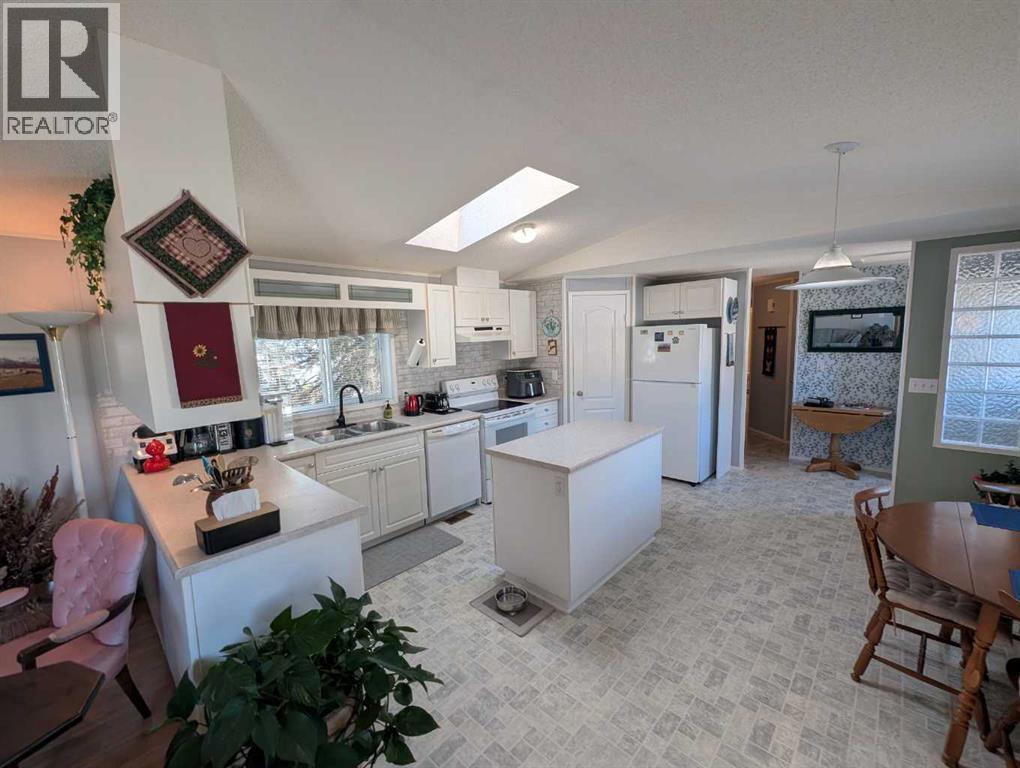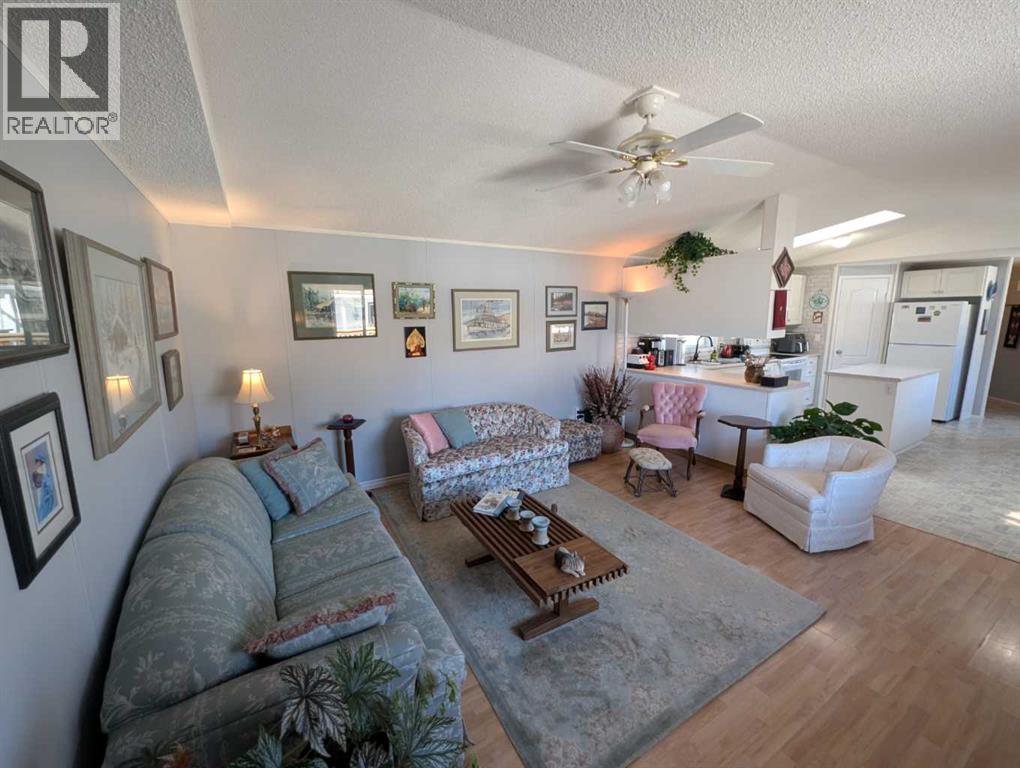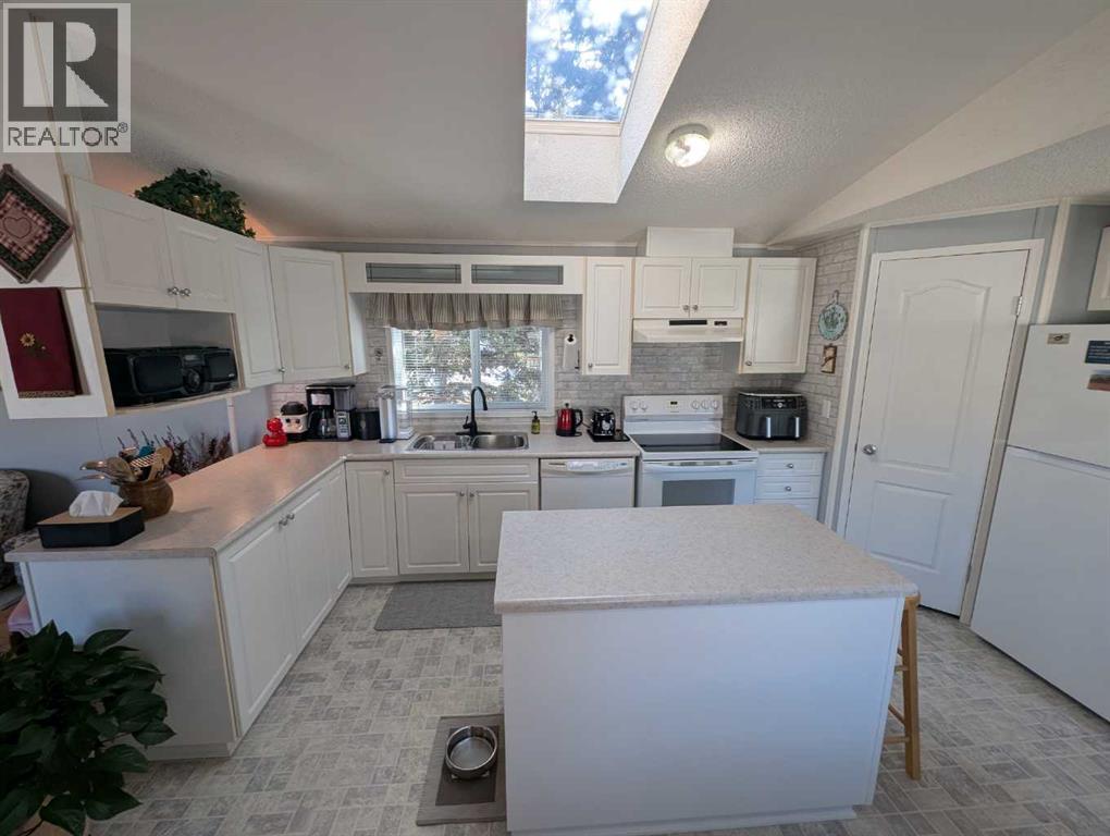 Discover modern comfort in this beautifully refreshed 3-bedroom, 2-bathroom mobile home. The interior shines with updated lighting, paint, and wallpaper throughout. The primary suite serves as a private retreat, featuring an ensuite with a relaxing jet tub.Key Features & Recent Updates:Kitchen & Laundry: Fridge and stove (2020); washer and dryer (2021).Major Maintenance: New roofs on the home and both sheds (2025), updated faucets, and installed heat tape.Outdoor Living: Professionally landscaped yard boasting a fenced-in garden area and two functional sheds. The yard is fully fenced with chain link and has three different locking gates to meet your needs. Meticulously maintained and updated for peace of mind—this home is ready for its next chapter! (id:63190)