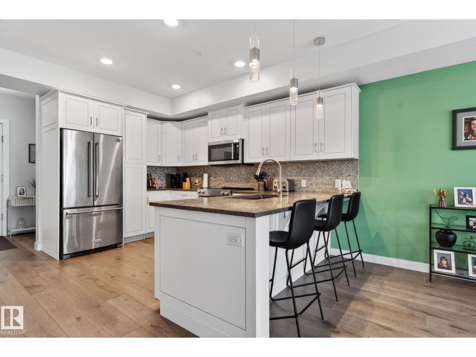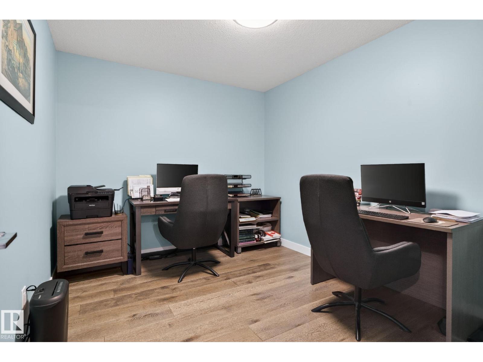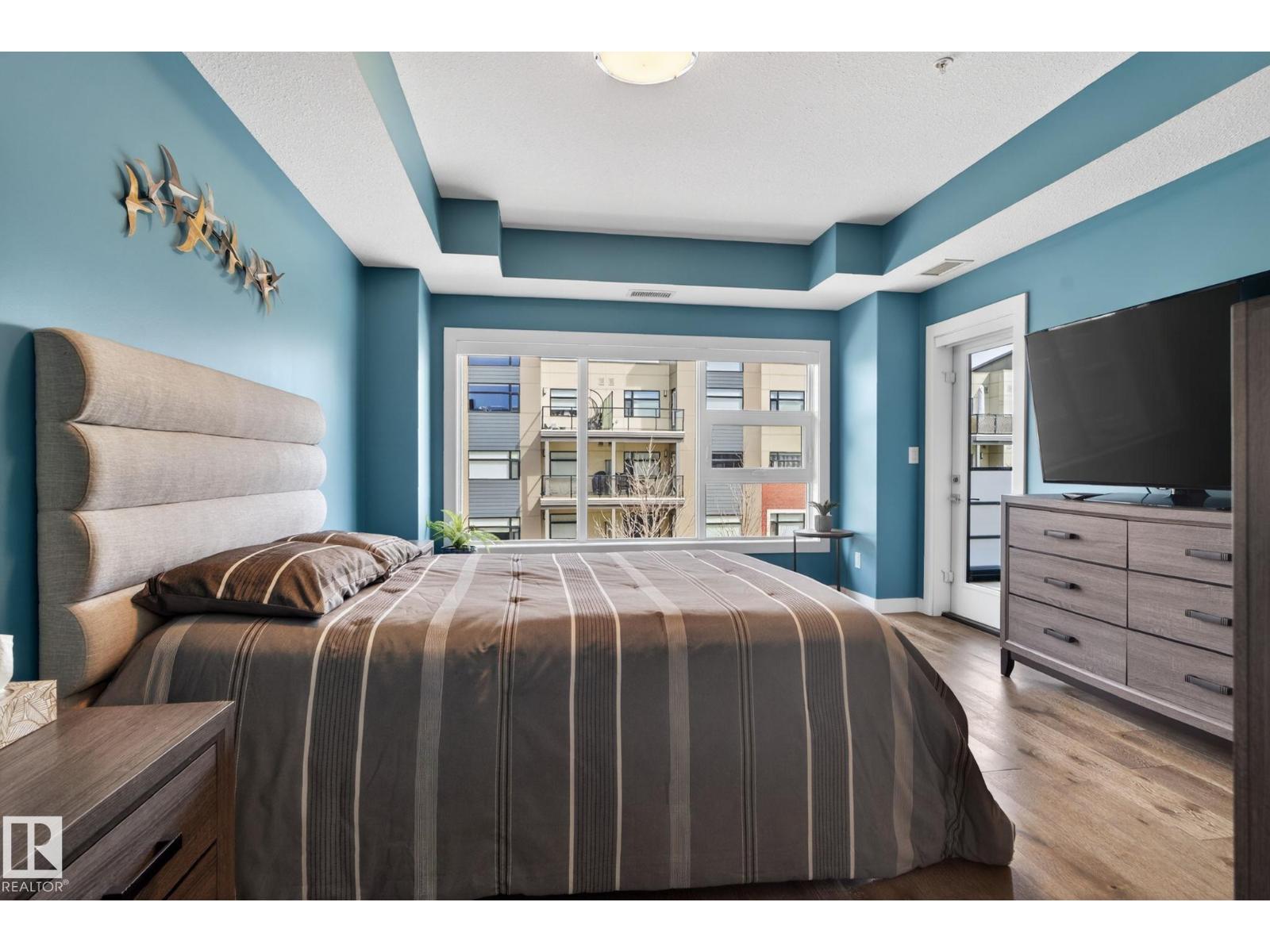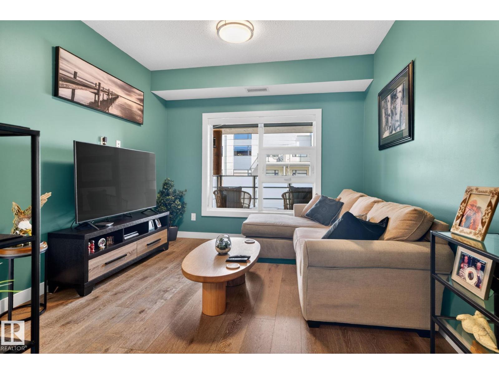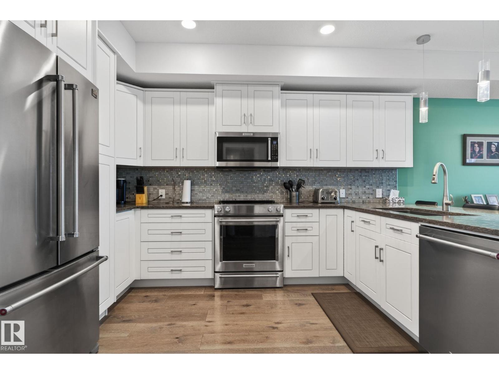 LUXURY CONDO LIVING in the heart of Sherwood Park! Welcome to SAVONA at Centre in the Park by Salvi Group. This 1674 sq ft suite offers spacious elegant living with an open-concept kitchen flowing to the bright living room and designated dining area, thoughtfully designed to separate entertaining spaces from private retreats. Enjoy TWO balconies, both overlooking the Prairie Walkway. Featuring 2 bedrooms + den and 2.5 bathrooms, all generously sized. The second bedroom includes a walk-in closet, while the primary retreat offers private balcony access, a 4-piece ensuite, & a large walk-in closet. Finished with stainless steel appliances, A/C, window coverings, custom cabinetry, quartz countertops, Hardwood Flooring throughout. Includes secure TWO underground parking stalls and one storage cage, bike storage & car wash bay. Access to Roof Top Patio, Fitness Center & Gym. Prime location steps to shopping, dining & Festival Place! (id:63190)