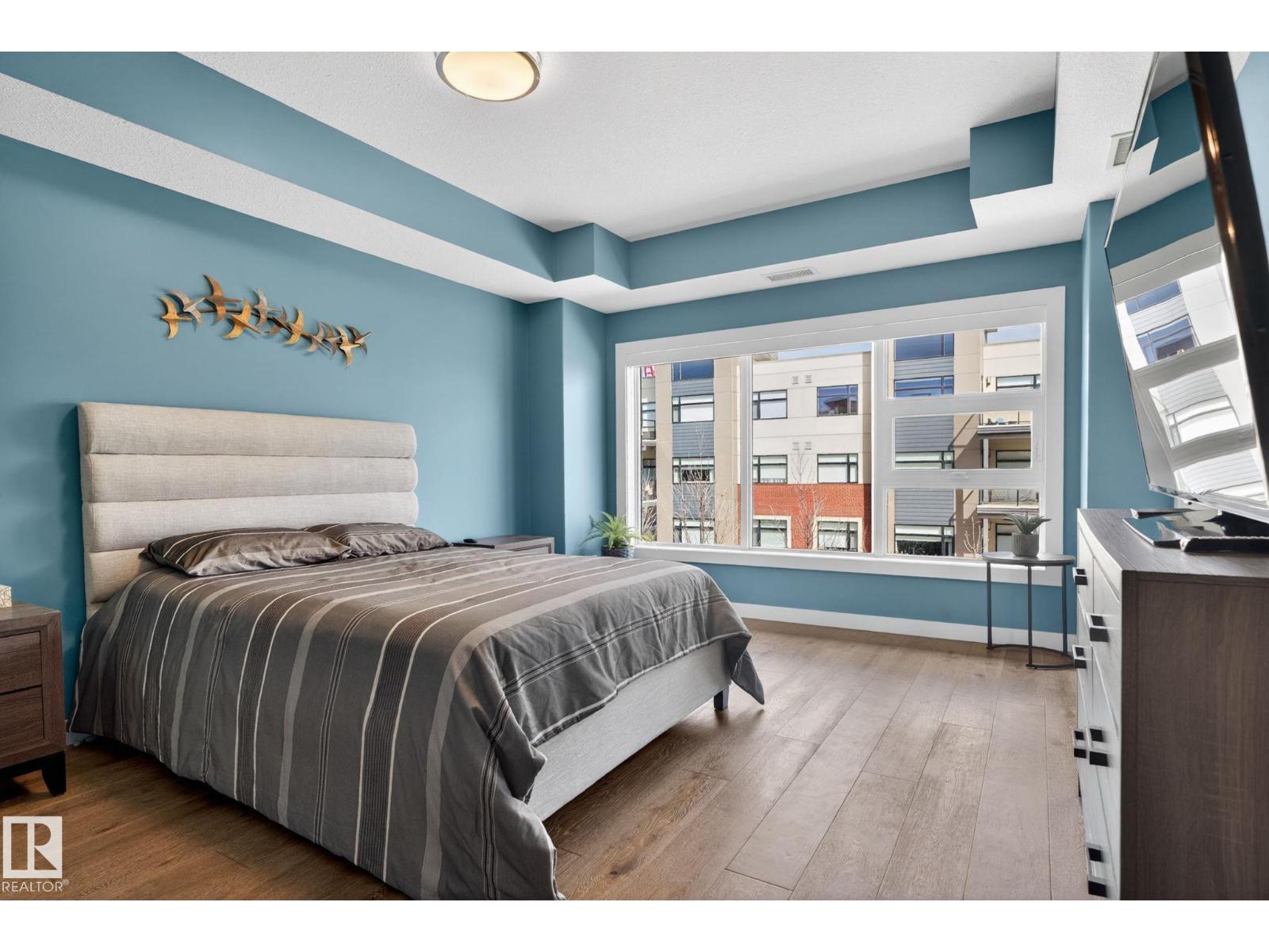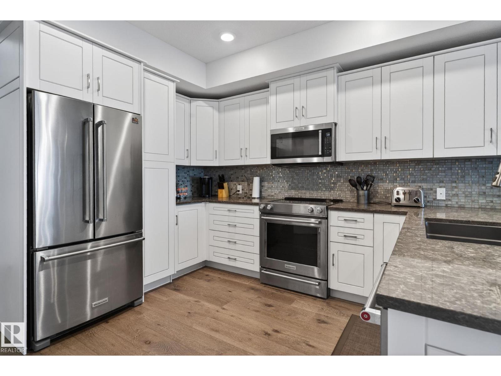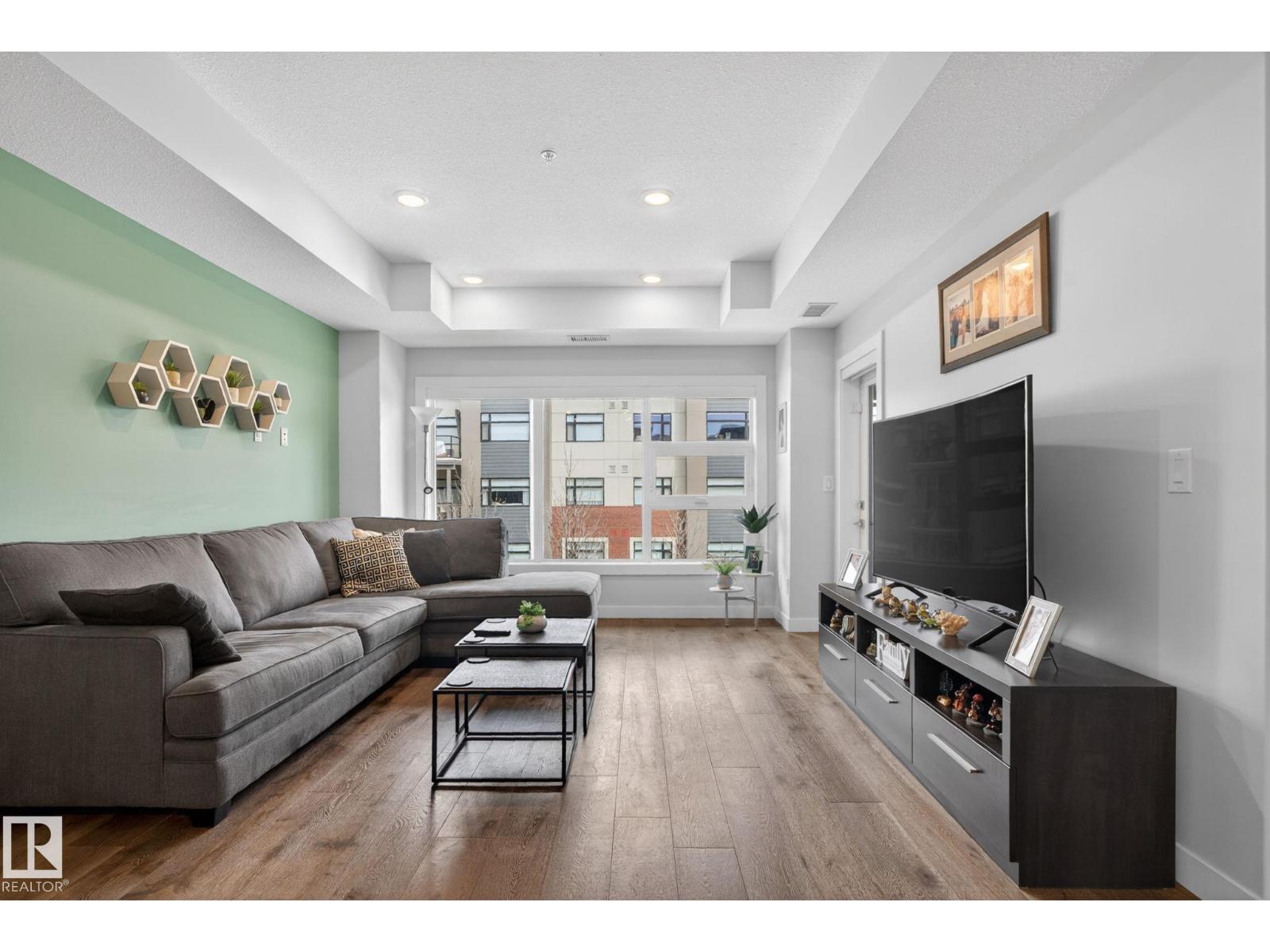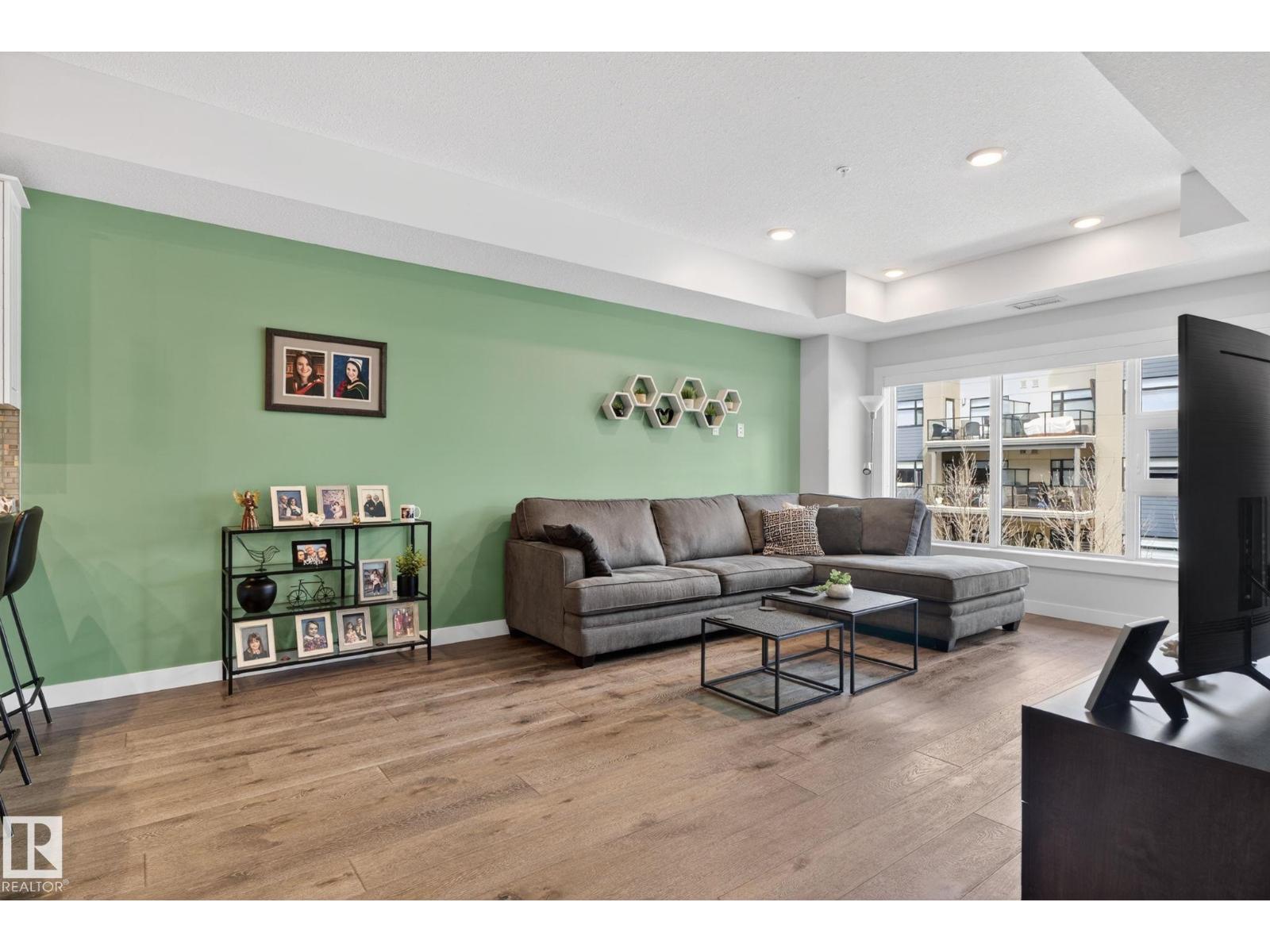 LUXURY CONDO LIVING in the heart of Sherwood Park! Welcome to SAVONA at Centre in the Park by Salvi Group. This 1674 sq ft suite offers spacious elegant living with an open-concept kitchen flowing to the bright living room and designated dining area, thoughtfully designed to separate entertaining spaces from private retreats. Enjoy TWO balconies, both overlooking the Prairie Walkway. Featuring 2 bedrooms + den and 2.5 bathrooms, all generously sized. The second bedroom includes a walk-in closet, while the primary retreat offers private balcony access, a 4-piece ensuite, & a large walk-in closet. Finished with stainless steel appliances, A/C, window coverings, custom cabinetry, quartz countertops, Hardwood Flooring throughout. Includes secure TWO underground parking stalls and one storage cage, bike storage & car wash bay. Access to Roof Top Patio, Fitness Center & Gym. Prime location steps to shopping, dining & Festival Place! (id:63190)
