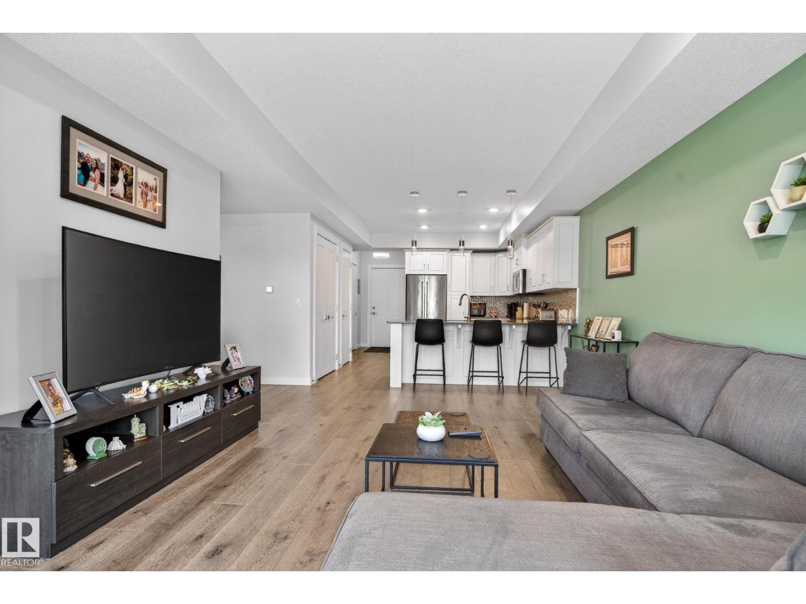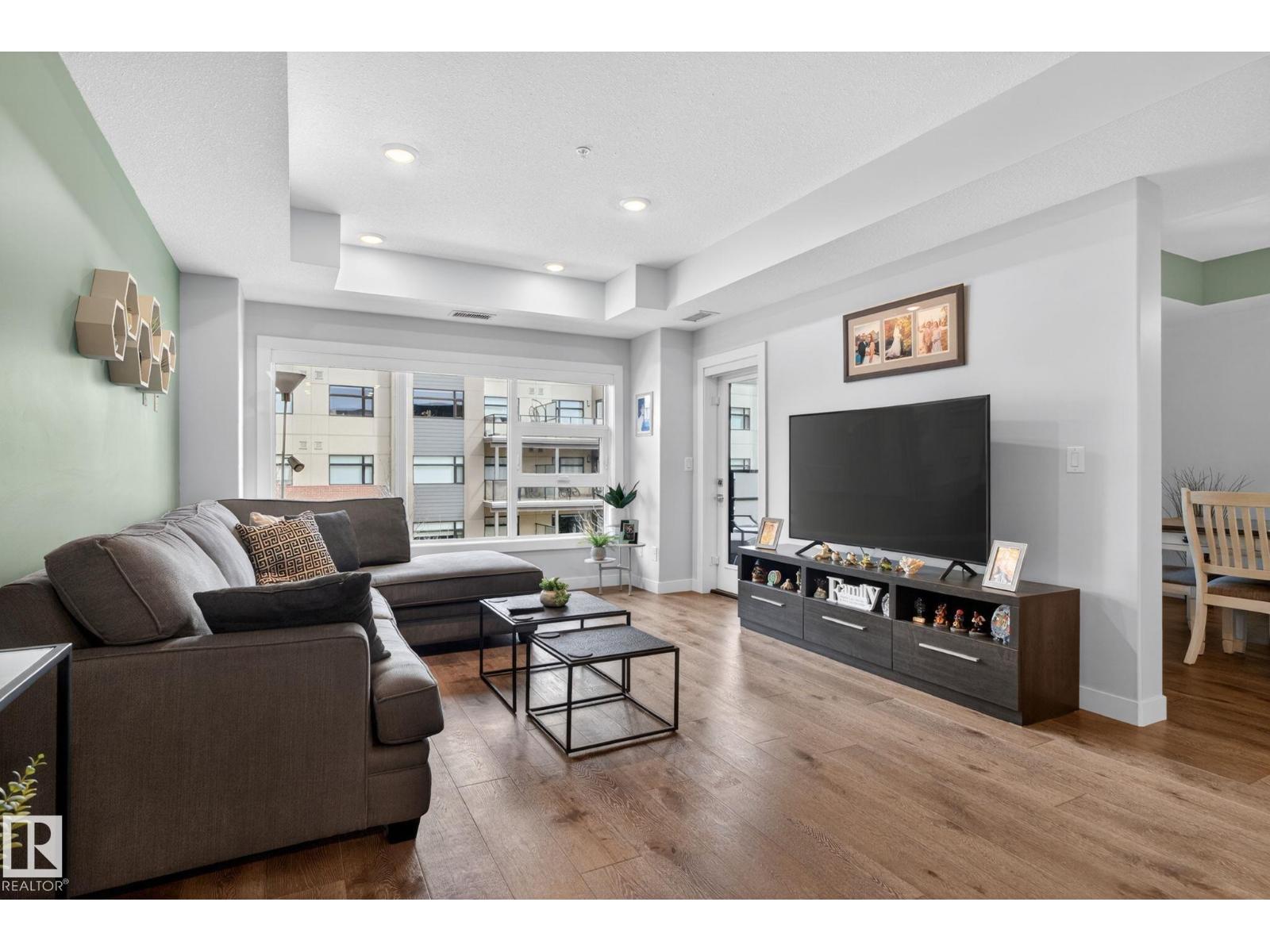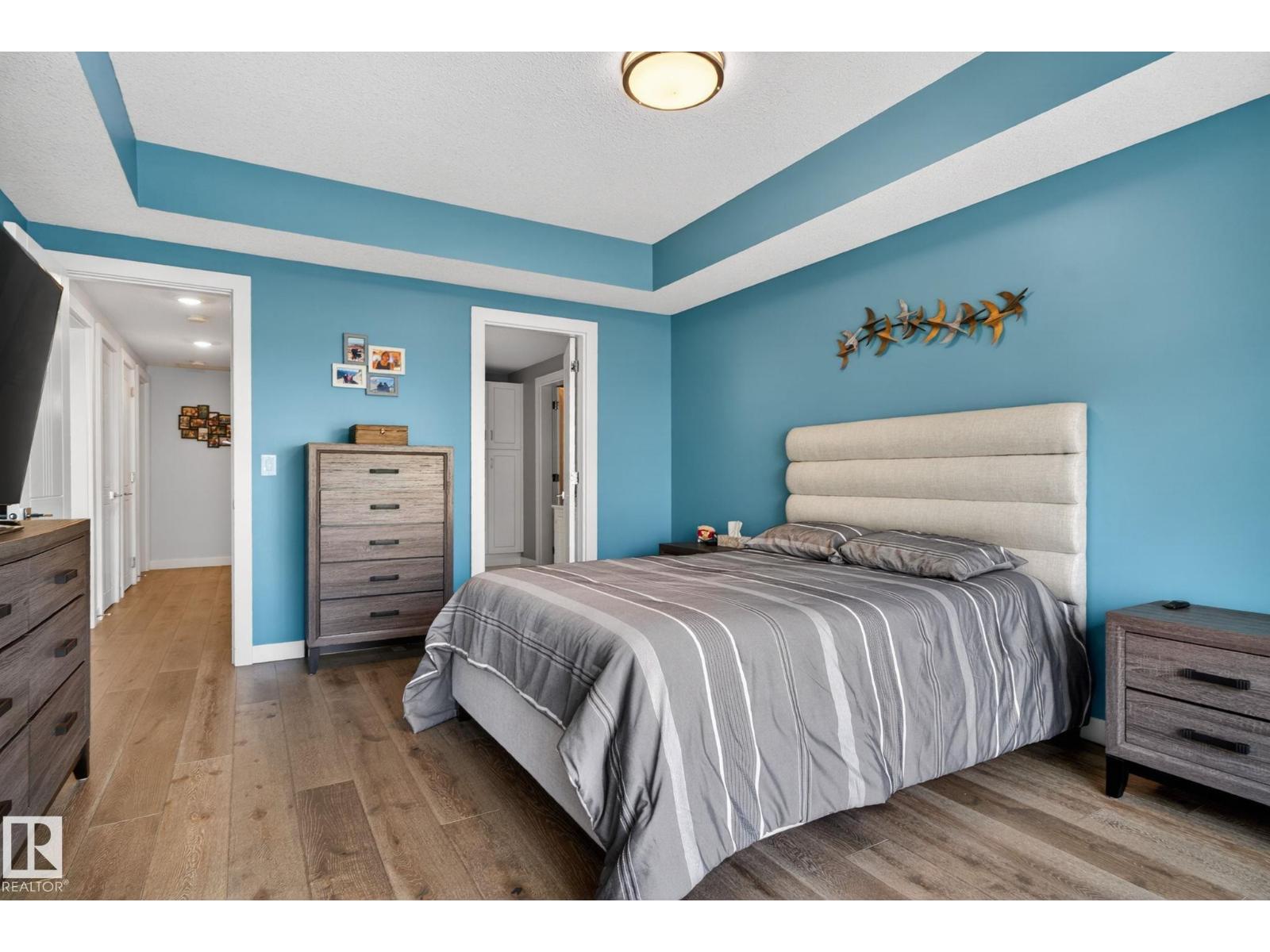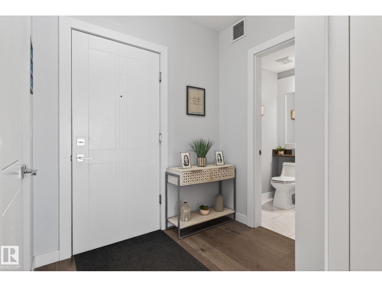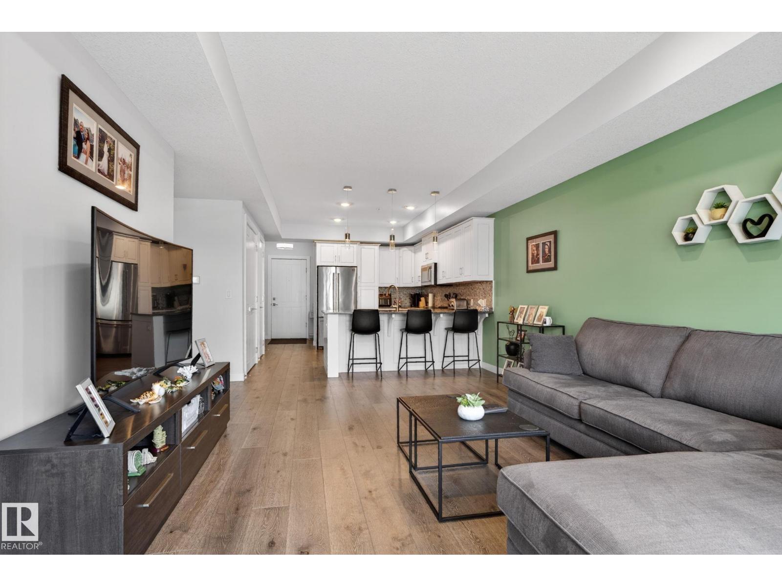 LUXURY CONDO LIVING in the heart of Sherwood Park! Welcome to SAVONA at Centre in the Park by Salvi Group. This 1674 sq ft suite offers spacious elegant living with an open-concept kitchen flowing to the bright living room and designated dining area, thoughtfully designed to separate entertaining spaces from private retreats. Enjoy TWO balconies, both overlooking the Prairie Walkway. Featuring 2 bedrooms + den and 2.5 bathrooms, all generously sized. The second bedroom includes a walk-in closet, while the primary retreat offers private balcony access, a 4-piece ensuite, & a large walk-in closet. Finished with stainless steel appliances, A/C, window coverings, custom cabinetry, quartz countertops, Hardwood Flooring throughout. Includes secure TWO underground parking stalls and one storage cage, bike storage & car wash bay. Access to Roof Top Patio, Fitness Center & Gym. Prime location steps to shopping, dining & Festival Place! (id:63190)