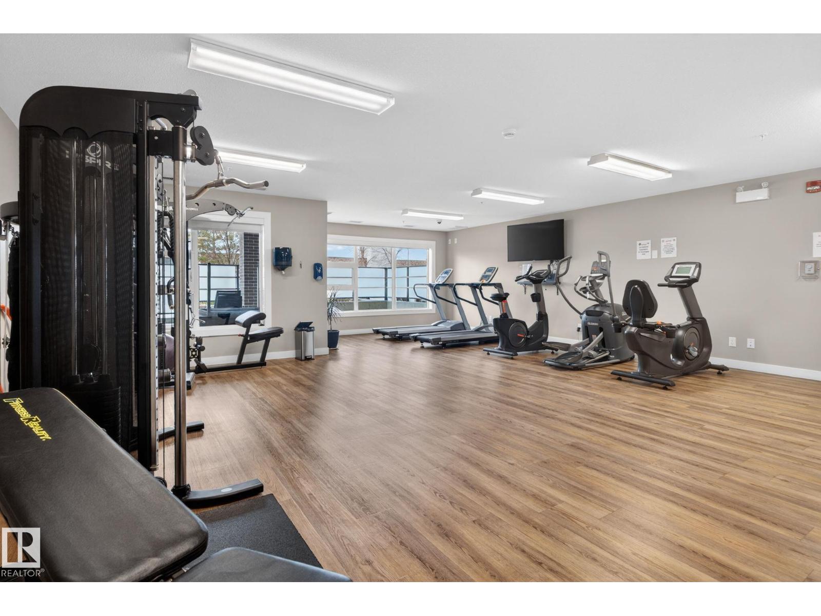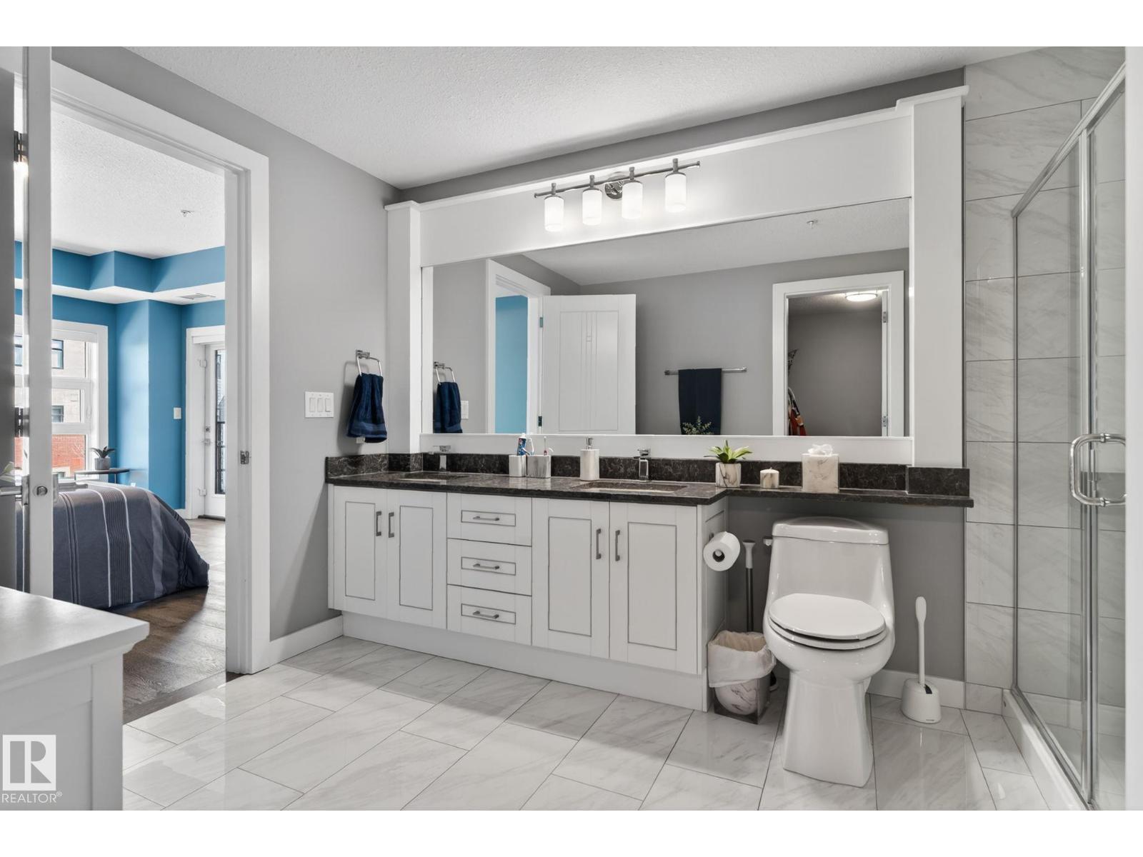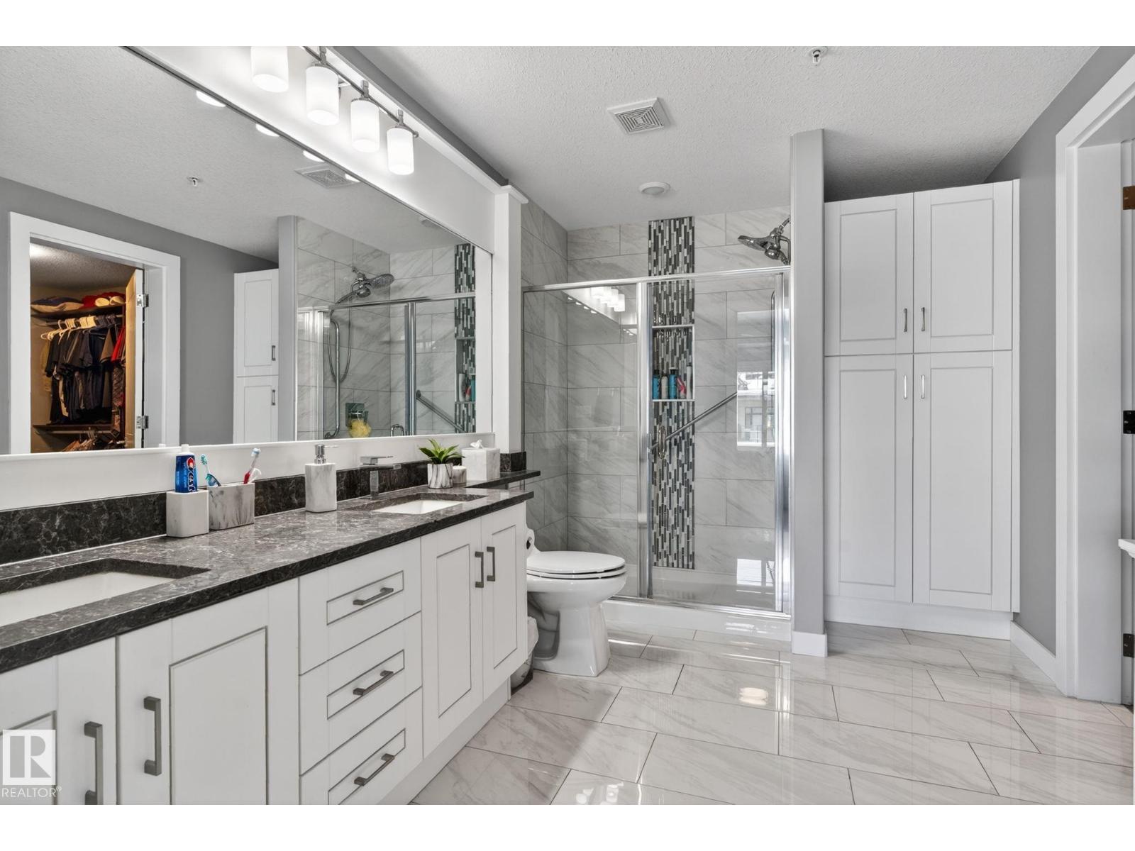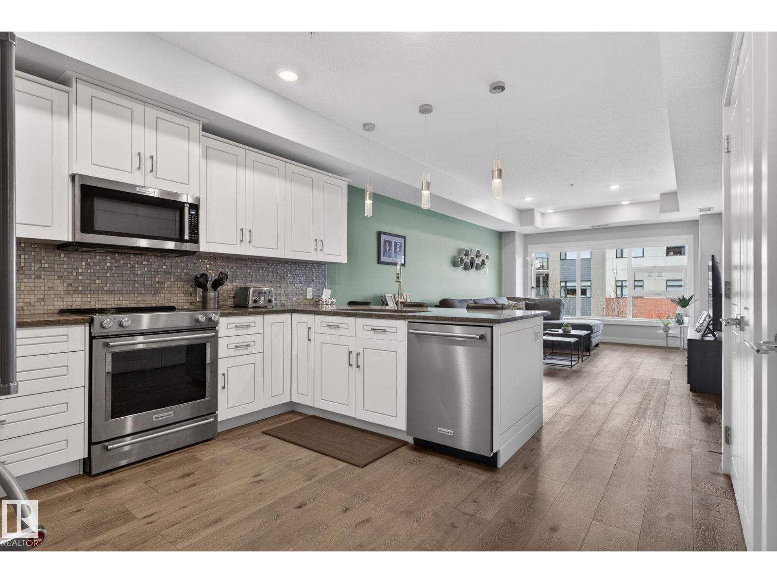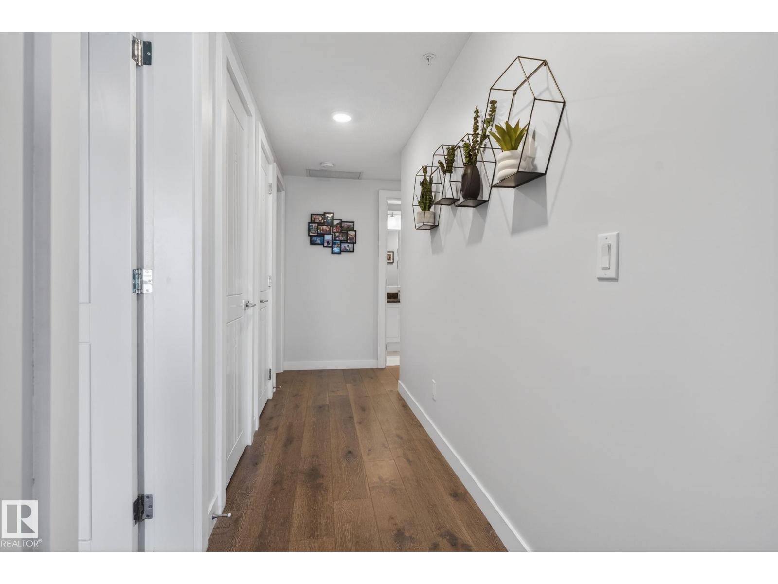 LUXURY CONDO LIVING in the heart of Sherwood Park! Welcome to SAVONA at Centre in the Park by Salvi Group. This 1674 sq ft suite offers spacious elegant living with an open-concept kitchen flowing to the bright living room and designated dining area, thoughtfully designed to separate entertaining spaces from private retreats. Enjoy TWO balconies, both overlooking the Prairie Walkway. Featuring 2 bedrooms + den and 2.5 bathrooms, all generously sized. The second bedroom includes a walk-in closet, while the primary retreat offers private balcony access, a 4-piece ensuite, & a large walk-in closet. Finished with stainless steel appliances, A/C, window coverings, custom cabinetry, quartz countertops, Hardwood Flooring throughout. Includes secure TWO underground parking stalls and one storage cage, bike storage & car wash bay. Access to Roof Top Patio, Fitness Center & Gym. Prime location steps to shopping, dining & Festival Place! (id:63190)