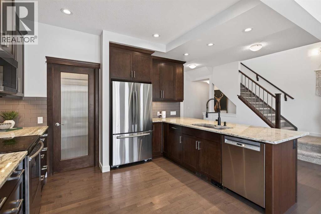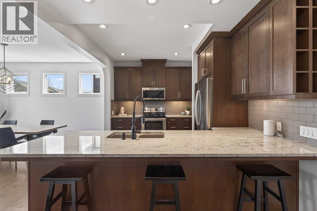 OPEN HOUSE - SAT April 25, 2-4 PM. Located in Ravenswood and just steps from two elementary schools (including a French option), this is the kind of home that makes everyday life feel easy.Set on an ~6000 sqft pie lot, there’s no shortage of space. Whether you’re dreaming of a pool, need room for kids and dogs to run, or just want a backyard you can actually enjoy. The composite deck is ready for summer, and the triple slider off the dining area creates that seamless indoor-outdoor flow.The triple car tandem garage is the star of the show, with an additional overhead door to the backyard. Perfect for projects, toys, or extra access when you need it. Add in a large driveway, and there’s room for everything.Inside, the open floorplan is filled with natural light thanks to all the extra windows, and the hardwood floors add warmth throughout the main level. The living room is anchored by a gas fireplace, while the kitchen is designed to keep up with real life. Loads of cabinetry, functional, and centred around a peninsula that makes cooking, hosting, and everyday moments feel connected. Bonus: the pantry leads to the garage for easy unloads.Upstairs, the primary suite is spacious and bright, complete with a walk-in closet and a 5-piece ensuite. Two more bedrooms, another full 5-piece bath (2 sinks means less fighting), and a thoughtfully designed laundry room with folding counter and storage make this level as practical as it is comfortable. The bonus room gives you that extra space everyone wants for either movie nights, a playroom, or a quiet place to unwind.The basement is ready for whatever you have in mind.Extras include A/C, a 75-gallon hot water tank, and a heated garage.A home that offers space, function, and flexibility inside and out. Garage is 24'5" x 20'1" - Tandem is 24'5"x 12'2" (id:63190)