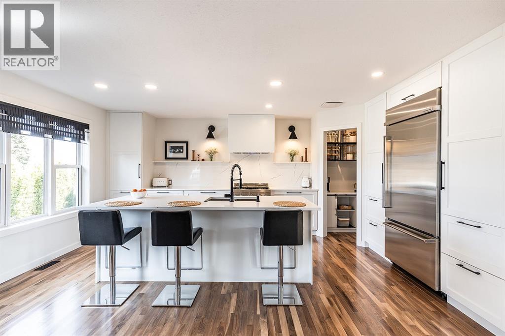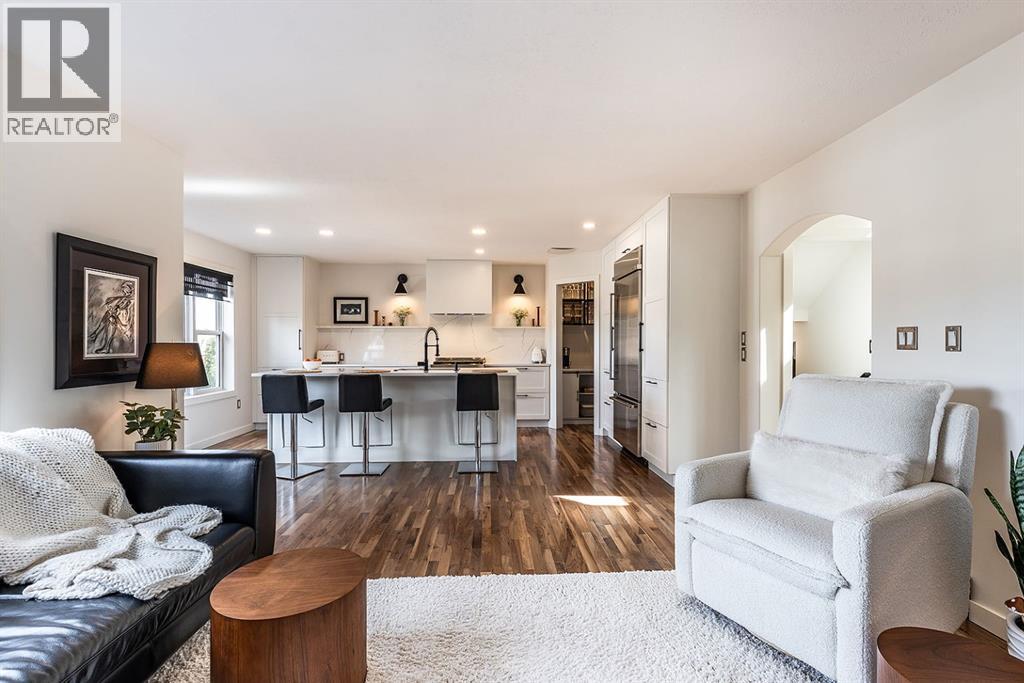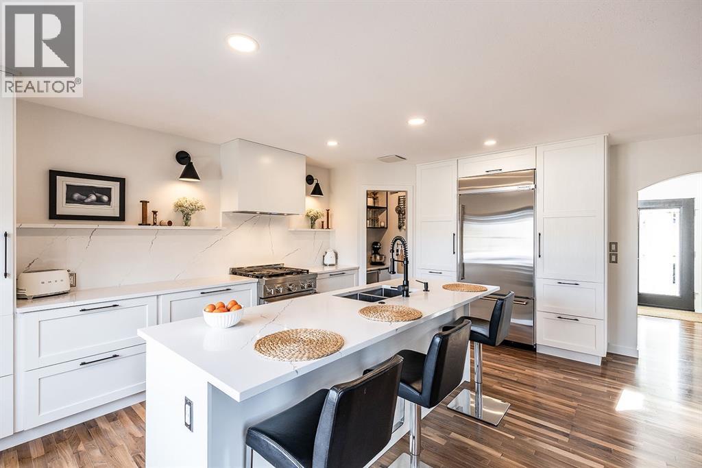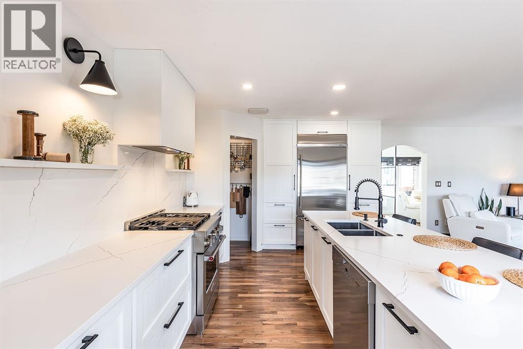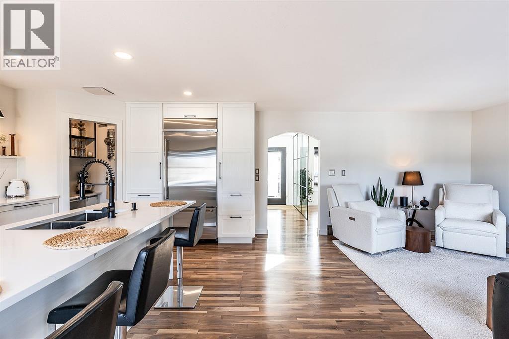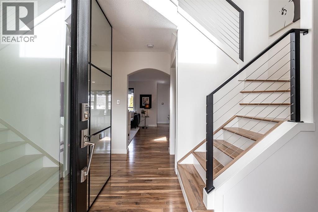 Step into refined living designed for discerning buyers—this fully renovated home offers upscale luxury from top to bottom, inside and out. Every detail has been thoughtfully curated to create a seamless blend of modern sophistication and everyday comfort.The open-concept main floor is both minimalist and striking, featuring rich walnut hardwood flooring and a beautifully designed kitchen where quartz countertops extend effortlessly into a full-height backsplash. Sleek KitchenAid Professional stainless steel appliances are integrated into the cabinetry and matte black fixtures add a bold, contemporary edge, while the dining area is elevated by a stunning modern glass wall—creating a bright, airy space perfect for entertaining.Upstairs, you’ll find three generously sized bedrooms, including a serene primary retreat complete with a 4-piece ensuite featuring a relaxing soaker tub. An additional full bathroom ensures convenience for family or guests.The fully finished basement offers a cozy and inviting atmosphere with cork flooring and carpet underfoot—ideal for movie nights, family gatherings, or quiet evenings in. This level also includes a fourth bedroom and another full bathroom, providing flexibility for guests or a home office.A truly unique highlight is the double attached garage, transformed into an exceptional extension of the home. With durable epoxy flooring, new heater and new spray foamed door/side mount opener, it doubles as an incredible entertaining space while still maintaining functionality. Additionally, the RV parking is an added bonus. Outside, the backyard is a fully landscaped summer oasis designed for relaxation and enjoyment. Both the rear deck and front porch are constructed with low-maintenance composite decking, offering durability without compromising style.Perfectly located close to scenic trails, schools, shopping, and everyday amenities, this home delivers the ideal balance of luxury, lifestyle, and location. (id:63190)