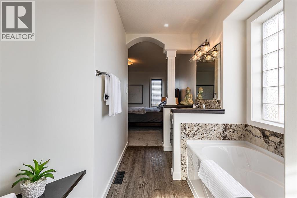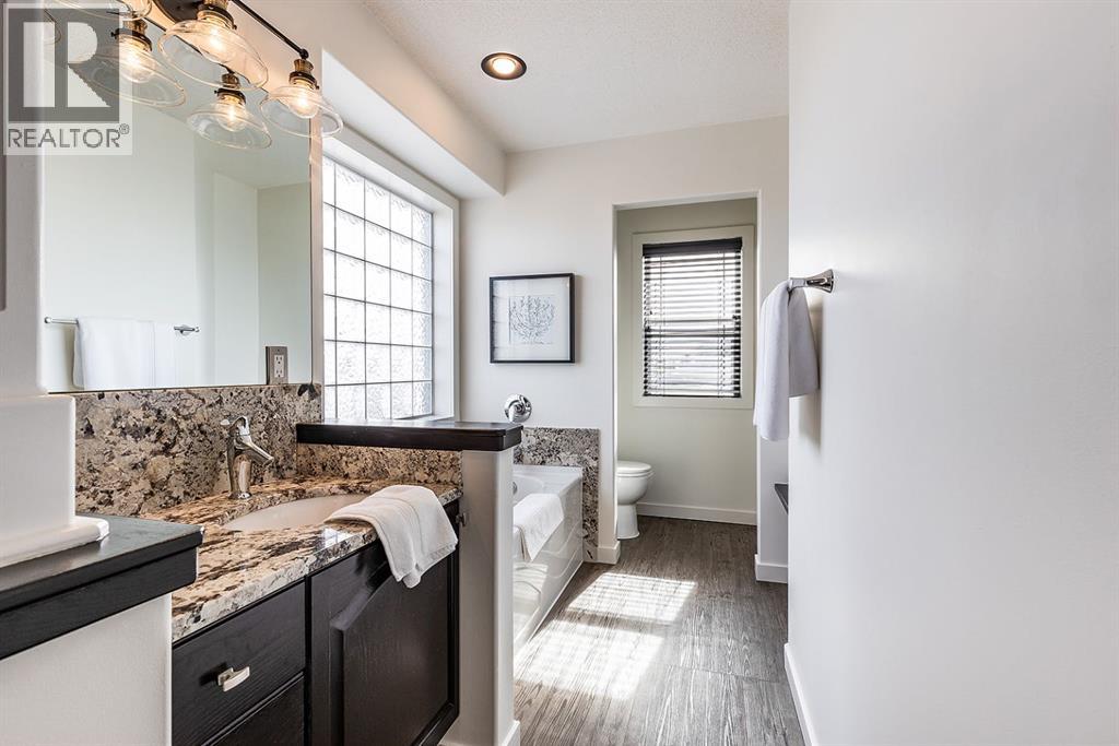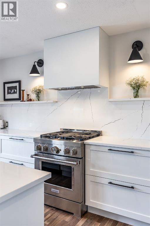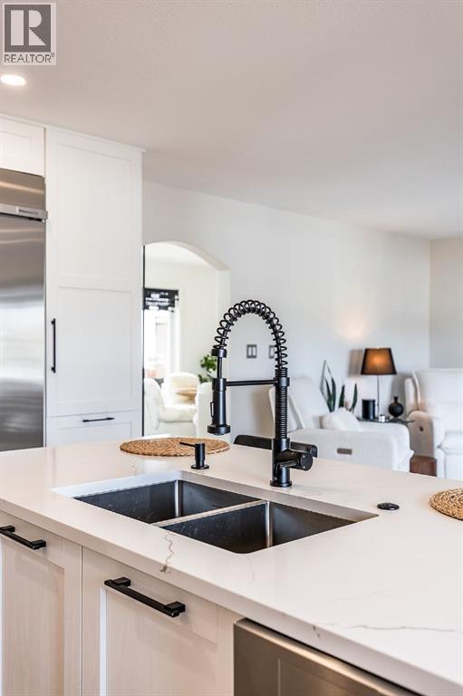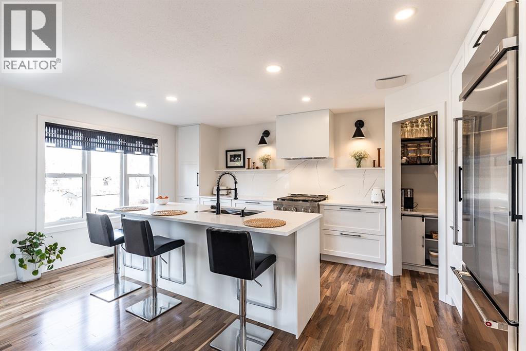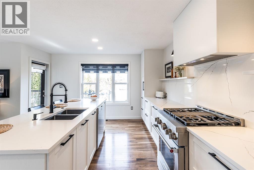 Step into refined living designed for discerning buyers—this fully renovated home offers upscale luxury from top to bottom, inside and out. Every detail has been thoughtfully curated to create a seamless blend of modern sophistication and everyday comfort.The open-concept main floor is both minimalist and striking, featuring rich walnut hardwood flooring and a beautifully designed kitchen where quartz countertops extend effortlessly into a full-height backsplash. Sleek KitchenAid Professional stainless steel appliances are integrated into the cabinetry and matte black fixtures add a bold, contemporary edge, while the dining area is elevated by a stunning modern glass wall—creating a bright, airy space perfect for entertaining.Upstairs, you’ll find three generously sized bedrooms, including a serene primary retreat complete with a 4-piece ensuite featuring a relaxing soaker tub. An additional full bathroom ensures convenience for family or guests.The fully finished basement offers a cozy and inviting atmosphere with cork flooring and carpet underfoot—ideal for movie nights, family gatherings, or quiet evenings in. This level also includes a fourth bedroom and another full bathroom, providing flexibility for guests or a home office.A truly unique highlight is the double attached garage, transformed into an exceptional extension of the home. With durable epoxy flooring, new heater and new spray foamed door/side mount opener, it doubles as an incredible entertaining space while still maintaining functionality. Additionally, the RV parking is an added bonus. Outside, the backyard is a fully landscaped summer oasis designed for relaxation and enjoyment. Both the rear deck and front porch are constructed with low-maintenance composite decking, offering durability without compromising style.Perfectly located close to scenic trails, schools, shopping, and everyday amenities, this home delivers the ideal balance of luxury, lifestyle, and location. (id:63190)