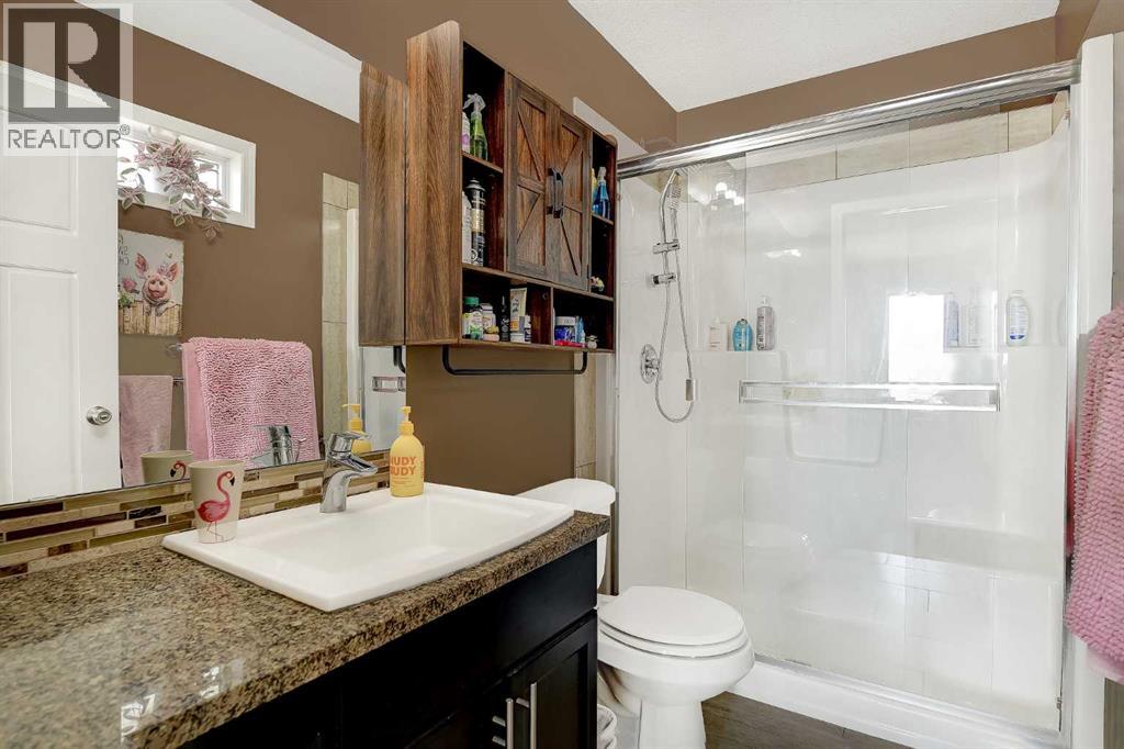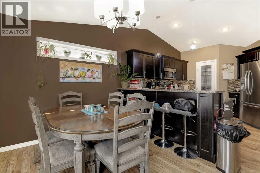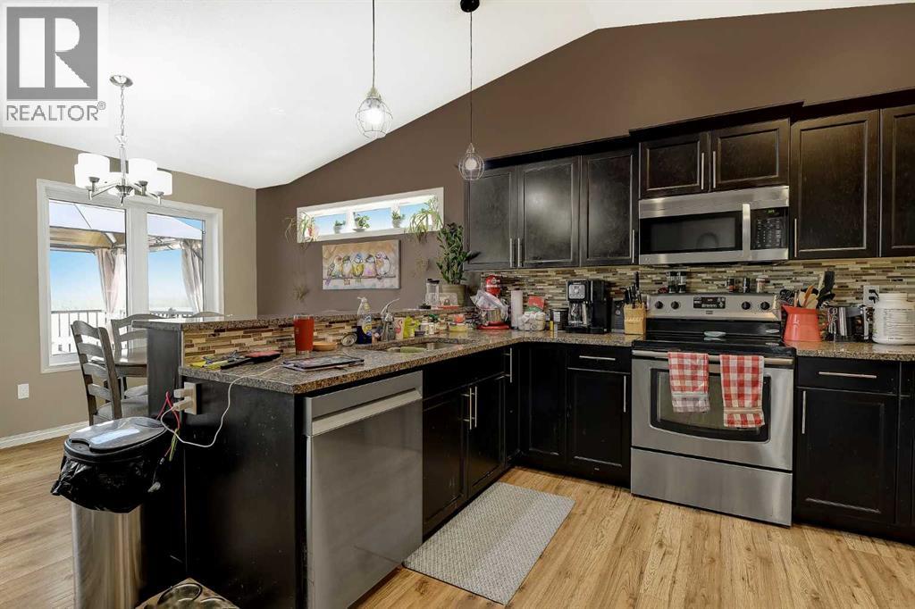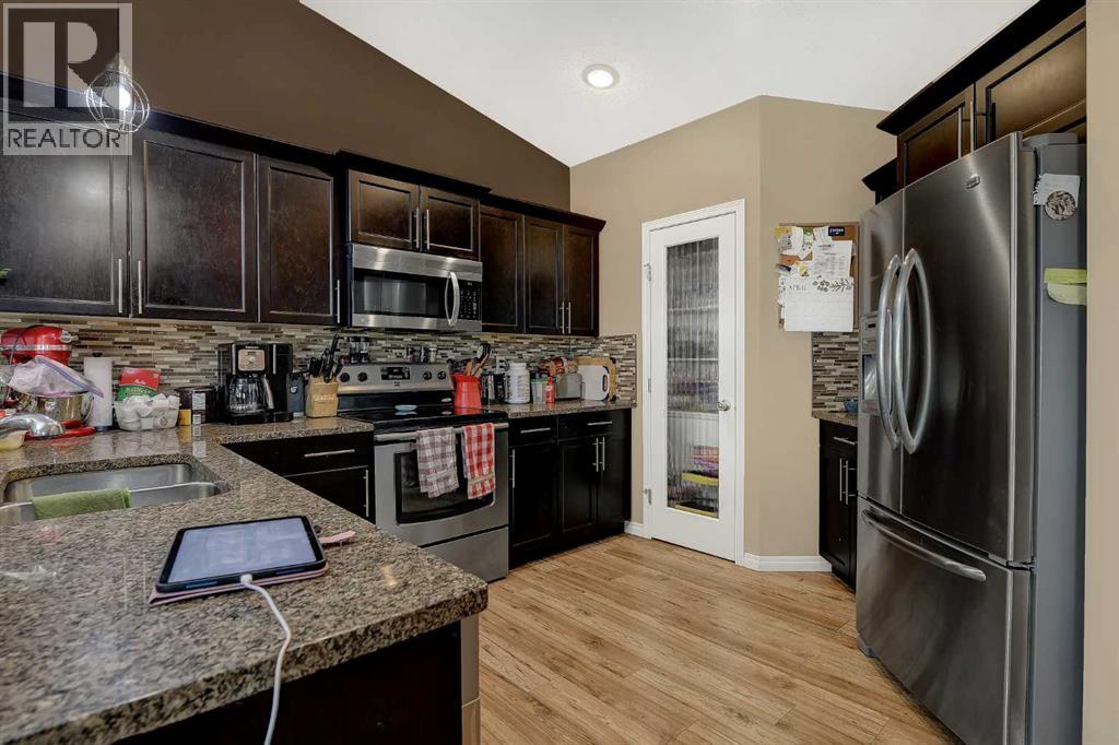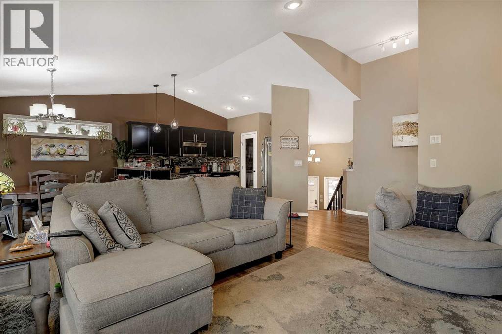 Welcome to this lovely modified bi-level home located in the sought-after Painted Sky community in Sexsmith. Offering a functional layout and thoughtful updates. Step into a spacious entryway that leads to an open-concept main floor, featuring a bright living room complete with a cozy fireplace. The kitchen is well-appointed with an eating bar, granite counter tops, stainless steel appliances, a convenient pantry, and a garden door that opens onto a recently redone deck (2024). The main floor also hosts a generous primary bedroom with a private three-piece ensuite. Upstairs, you’ll find two additional bedrooms, a full four-piece bathroom, and laundry providing excellent separation for family or guests. The partially developed walk-out basement includes an additional bedroom and bathroom. Outside, enjoy the privacy of no rear neighbours, along with a gazebo that stays with the property. Additional features include air conditioning, a heated triple attached garage, a shed and tons of parking space. This home combines comfort, space, and a fantastic location—ready for you to move in and enjoy. (id:63190)