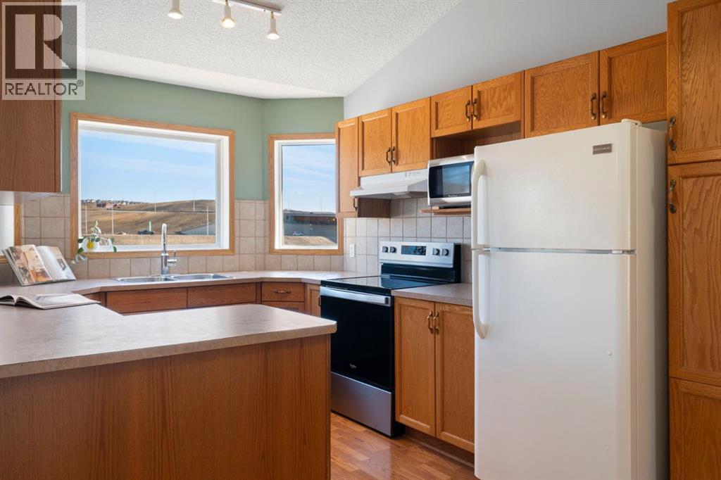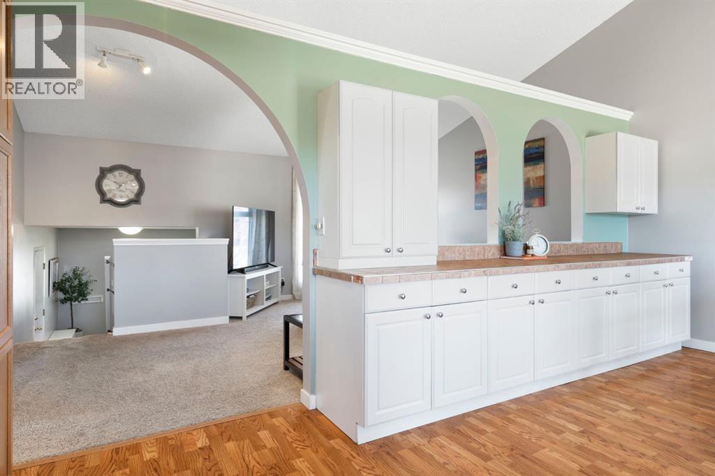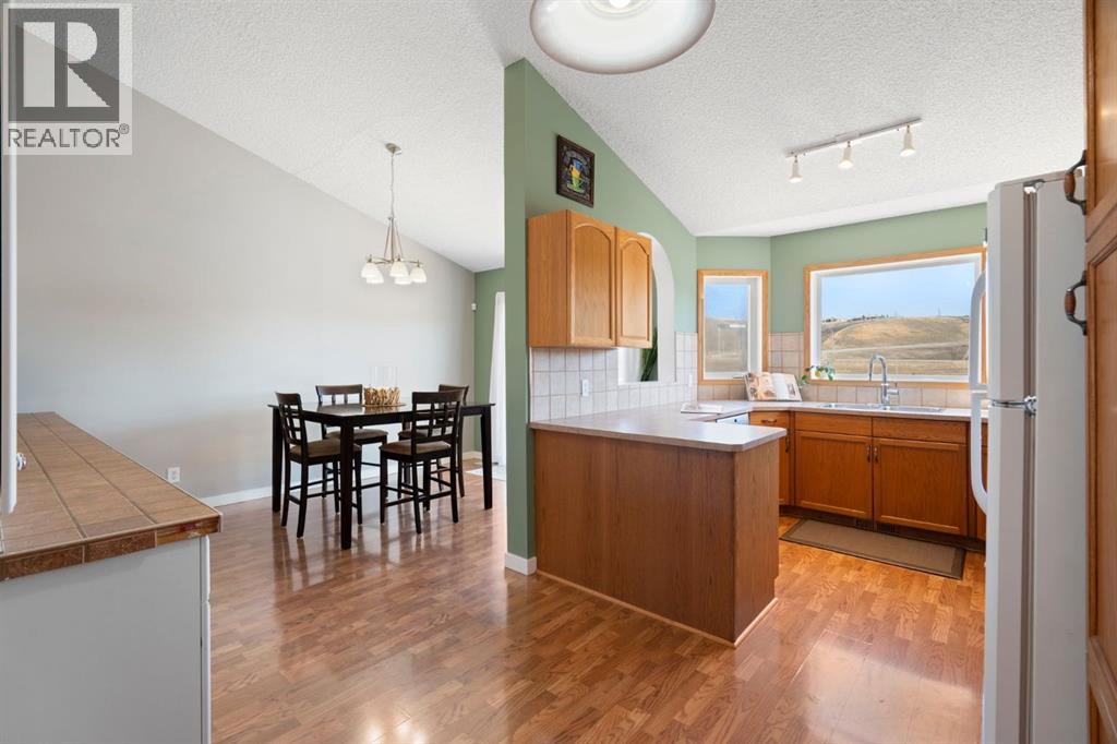 Located in the established community of West Valley, this walkout bi-level offers over 2,300 sq ft of finished living space in a central Cochrane location with easy access to schools, parks, pathways and everyday amenities.The main floor opens to a bright and spacious layout with vaulted ceilings and large windows that bring in natural light throughout the day. The kitchen, dining area and living room connect easily, creating a layout that works well for day-to-day living and having people over without feeling closed off. The primary bedroom is set on the main level and is complemented by a generous five-piece bathroom with dual sinks, a jetted tub, steam shower and a dedicated wardrobe area.The walkout lower level adds additional living space with a bright family room centred around a gas fireplace, two well-sized bedrooms, an office, and a flexible area that can be used as a den, workout space or hobby room. A laundry room with sink and added storage completes the lower level.From the main floor, step out onto the large deck just off the dining area with a gas BBQ hookup and open views toward the foothills. The fully fenced backyard includes a dog run, garden shed and a two-storey playhouse that adds a fun and usable feature to the space.West Valley is known for its mature setting and walkability. From here, it’s an easy walk to Mitford School, with Glenbow Elementary School and École Notre-Dame des Vallées also nearby. Mitford Park, sports fields, and the pathway system are woven throughout the area, with quick access to downtown Cochrane and a straightforward drive into Calgary.Call your favourite realtor and book a showing today! (id:63190)