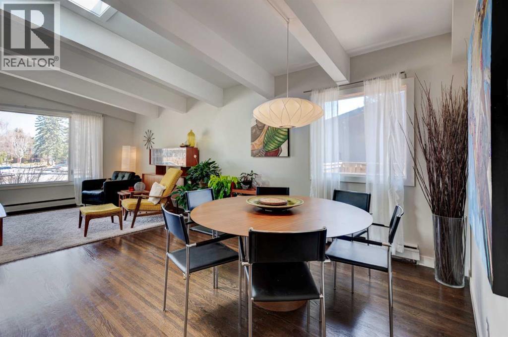 This beautiful family home is situated on a quiet, tree-lined street in Chinook Park,which is one of Calgary’s most sought-after communities. This 4-level split offers anexceptional blend of timeless character and thoughtful updates.The main and upper levels showcase rich hardwood flooring, complemented by elegantceramic tile in the updated gorgeous kitchen and eating area. Soaring vaulted ceilingsin the living and dining rooms create a bright, open ambiance—perfectly suited for bothsophisticated entertaining and everyday living.At the heart of the home is the updated modern and sun-filled kitchen. It offers quartzcountertops, stainless steel appliances, and loads of cupboards and counter space.The convenience of main floor laundry adds to the home’s effortless functionality.Upstairs, three generously proportioned bedrooms provide comfortable retreats,accompanied by a well-appointed 4-piece bath featuring a relaxing jetted tub. The lowerlevels expand the living space beautifully, offering a substantial L-shaped family room, alarge fourth bedroom, a 3-piece bath, and tons of storage. This floor plan provides roomfor everyone to have their own space as well as generous areas for gathering.Outdoors, the private, mature yard, is highlighted by established trees and offers roomfor kids and pets to play. There is also a newer deck and access to the garage.A recently installed boiler (2025) enhances comfort and efficiency, offering addedpeace of mind. The ideal location is great for commuting in all directions. Theneighbourhood offers great schools, quick access to the Glenmore Park pathwaysystem, it is close to Rockyview Hospital, transit, as well as shopping and dining.This is an exceptional opportunity to own a refined home in a terrific community. (id:63190)