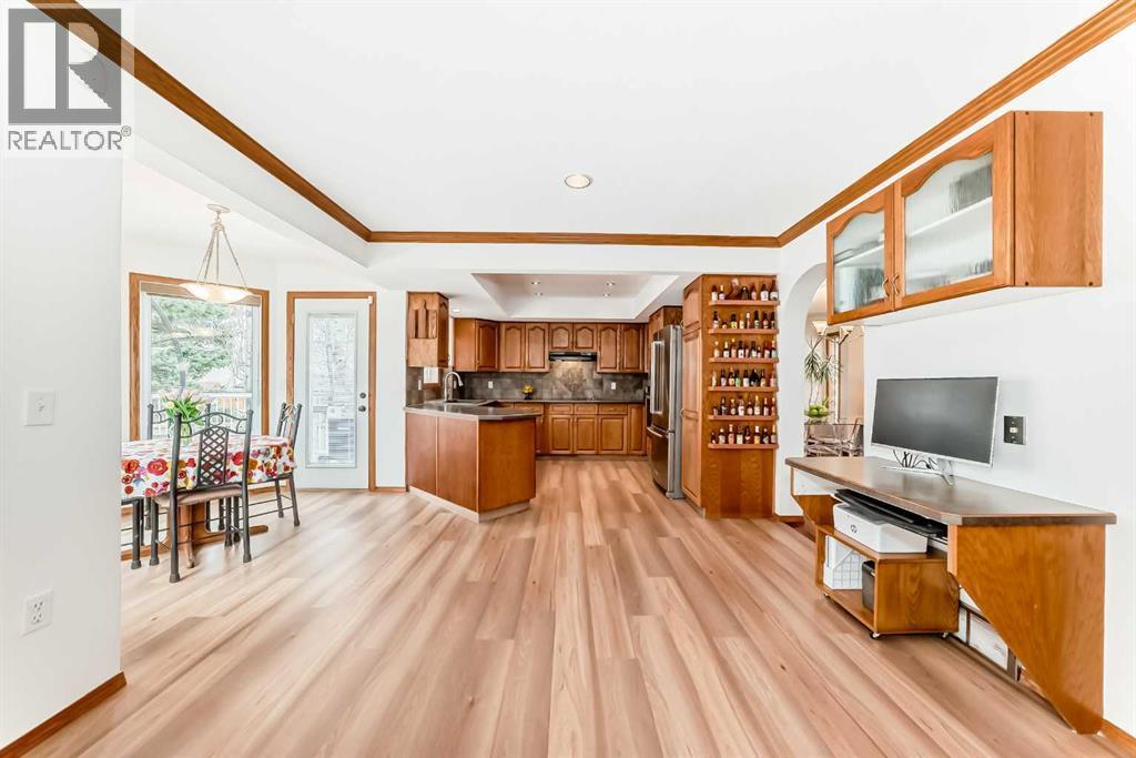 Welcome to this beautifully updated executive home offering over 2,230 sq ft of well-designed living space in the highly desirable community of Woodbine. With 4 bedrooms and 3.5 bathrooms, this home is perfectly suited for growing families.Step inside to soaring vaulted ceilings and a bright, inviting living and dining area finished with rich hardwood flooring, ideal for both everyday living and entertaining. The spacious kitchen is thoughtfully designed with newer appliances (cooktop 2026), brand-new vinyl plank flooring, and a sun-filled breakfast nook surrounded by windows.The main floor also features a warm and comfortable family room, perfect for relaxing evenings, complete with a beautiful gas fireplace, along with a built-in desk for work or study, a convenient 2-piece powder room, and a spacious laundry area.Upstairs, you’ll find three generously sized bedrooms, including a inviting primary retreat complete with a walk-in closet and convenient ensuite featuring double sinks, a jetted tub, and separate shower. The upper 4-piece bathroom includes heated floors, adding everyday comfort for the whole family.The fully finished basement extends your living space with a large family room, newer carpeting (2021), a spacious fourth bedroom, and a 3-piece bathroom, ideal for guests, teens, or extended family.This home has been meticulously maintained and upgraded, including full Poly-B replacement with PEX, recent interior repainting, including ceilings (2026), triple-pane windows, air conditioning (upper level), water softener (2024), hot water tank anode replacement (2024), underground sprinklers, a composite deck, and the roof was replaced in the summer of 2022.Ideally located close to excellent amenities, schools, transportation, and just minutes from Fish Creek Park, this home offers the perfect balance of comfort, convenience, and lifestyle. This home is a must see... schedule your showing today! (id:63190)