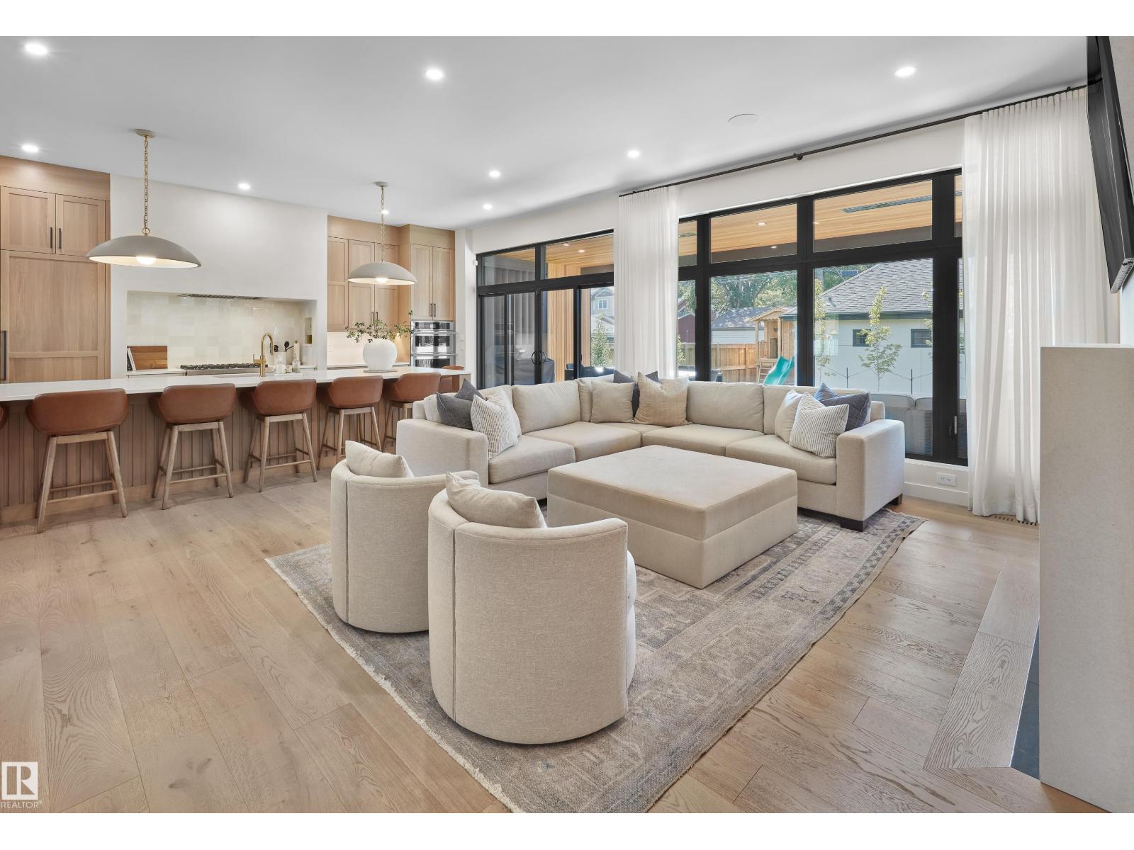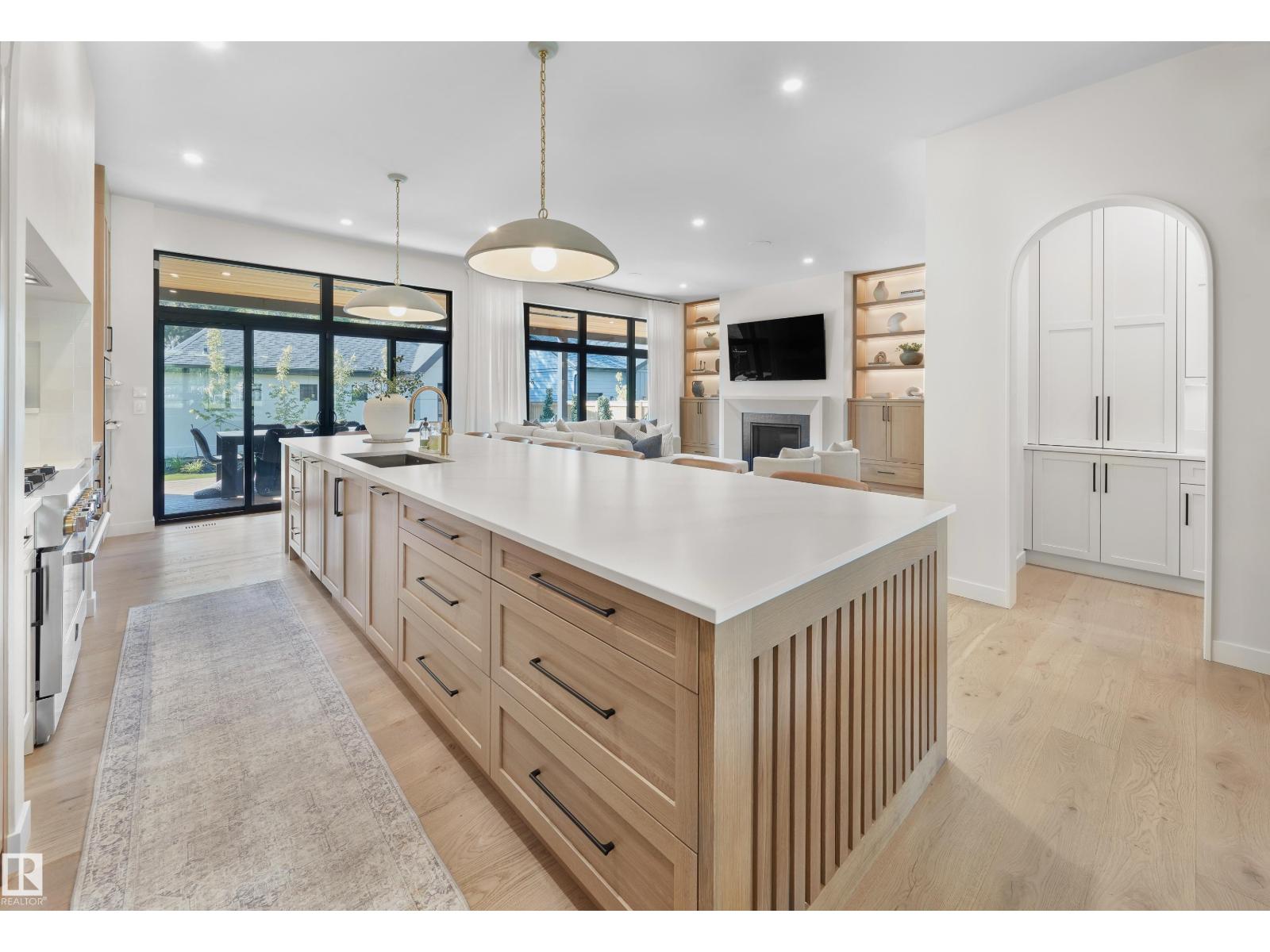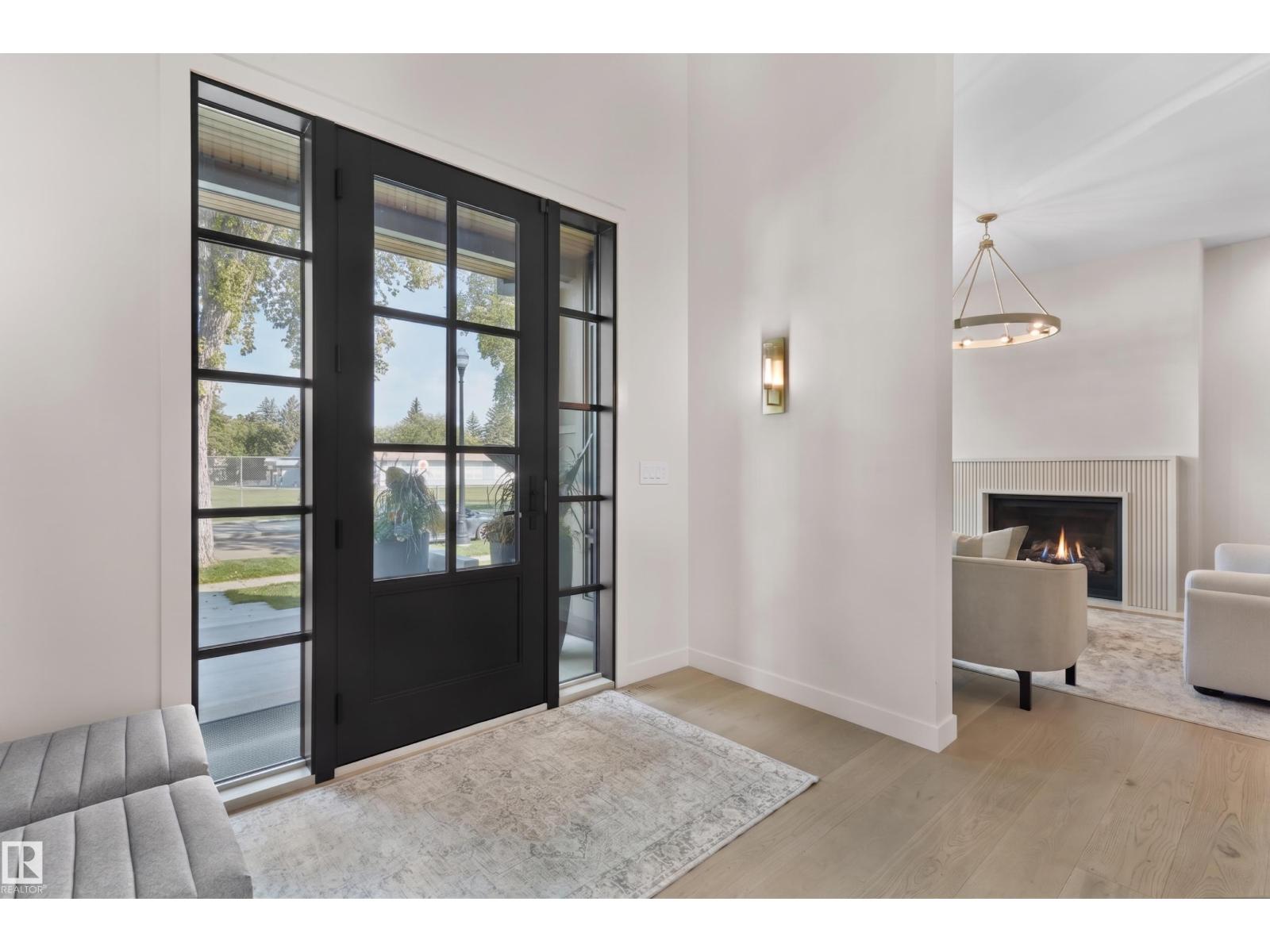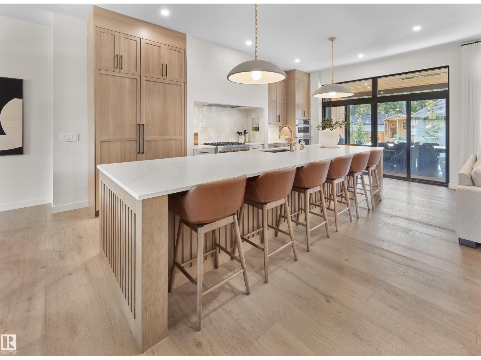 Set on a premier park-facing lot in the heart of Glenora & custom-built by Urbis, this modern farmhouse blends timeless architecture with elevated design. Featuring 5 bedrooms, 4.5 bathrooms, and a rare triple garage, the home offers exceptional space and functionality. The main floor showcases European oak hardwood, arched transitions, and a chef-inspired kitchen with white oak cabinetry, a fluted island, quartz waterfall edges, and a butler’s pantry. A dedicated bar area, formal living room, and separate family room—each with its own fireplace—create ideal spaces for both entertaining and everyday living. A private office, stylish powder room, and well-designed mudroom complete the main level. Upstairs offers 4 bedrooms, including a luxurious primary retreat with vaulted ceilings and a spa-like ensuite. The fully finished basement features a gym with infrared sauna (designed by the creators of the Kananaskis Nordic Spa), wet bar, and large rec space & guest suite. Steps to parks, schools, and amenities. (id:63190)
