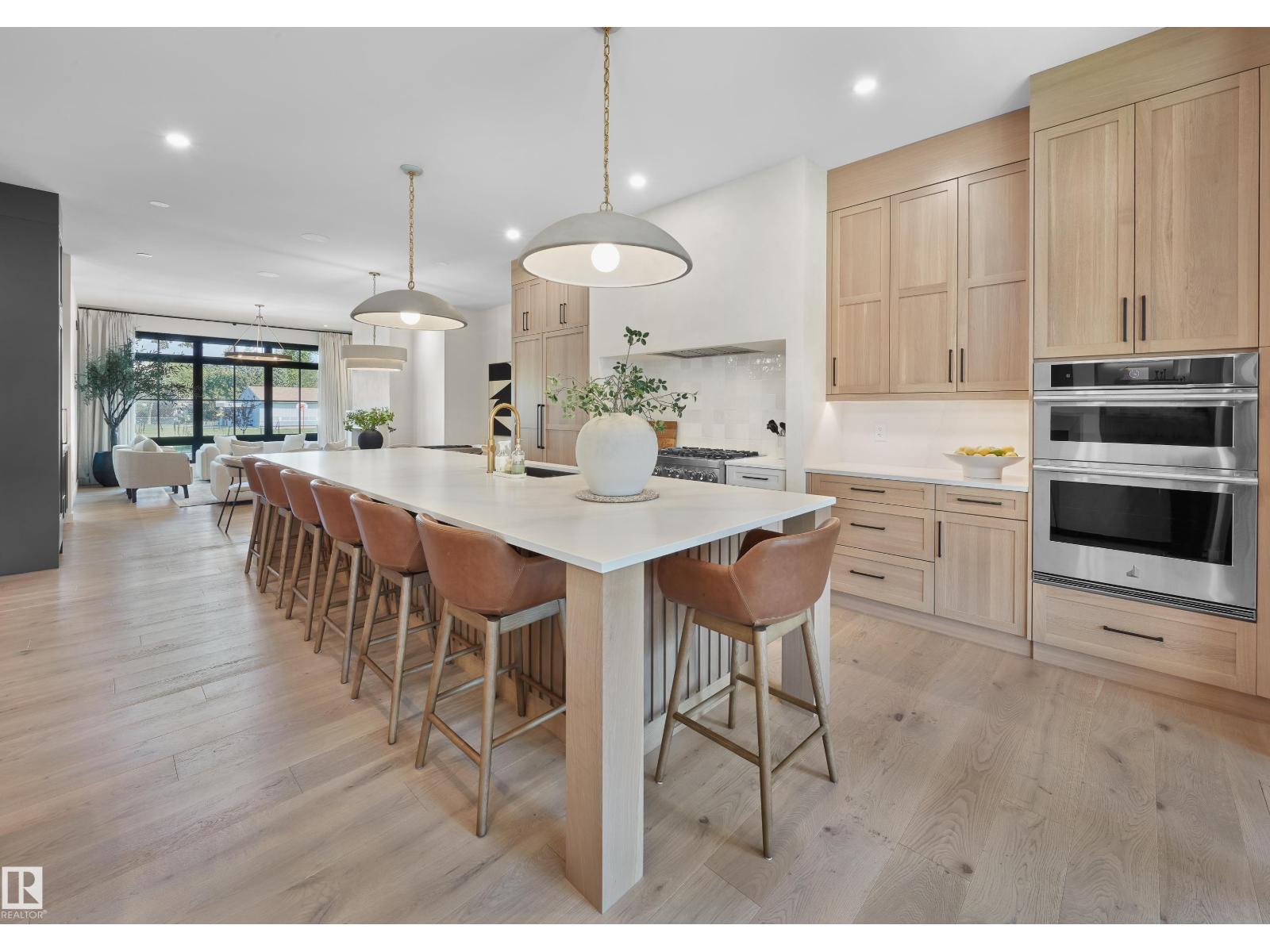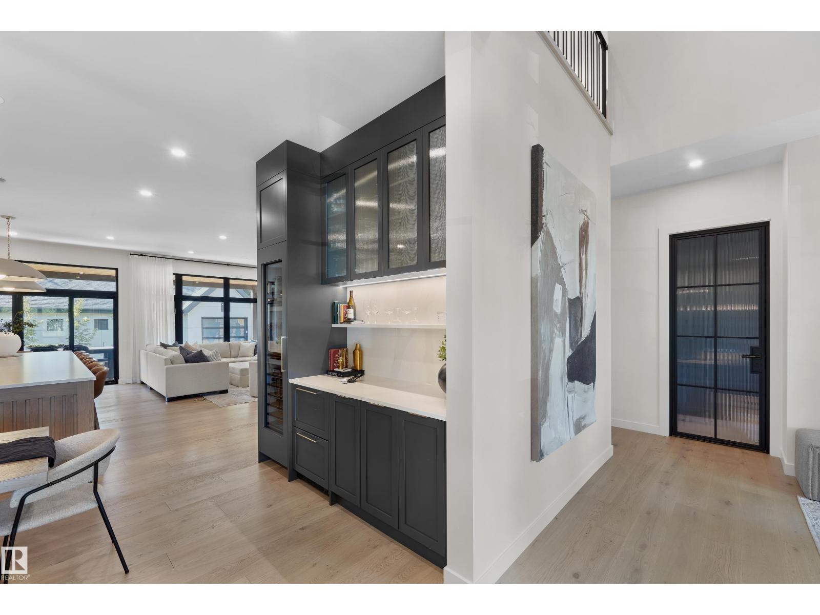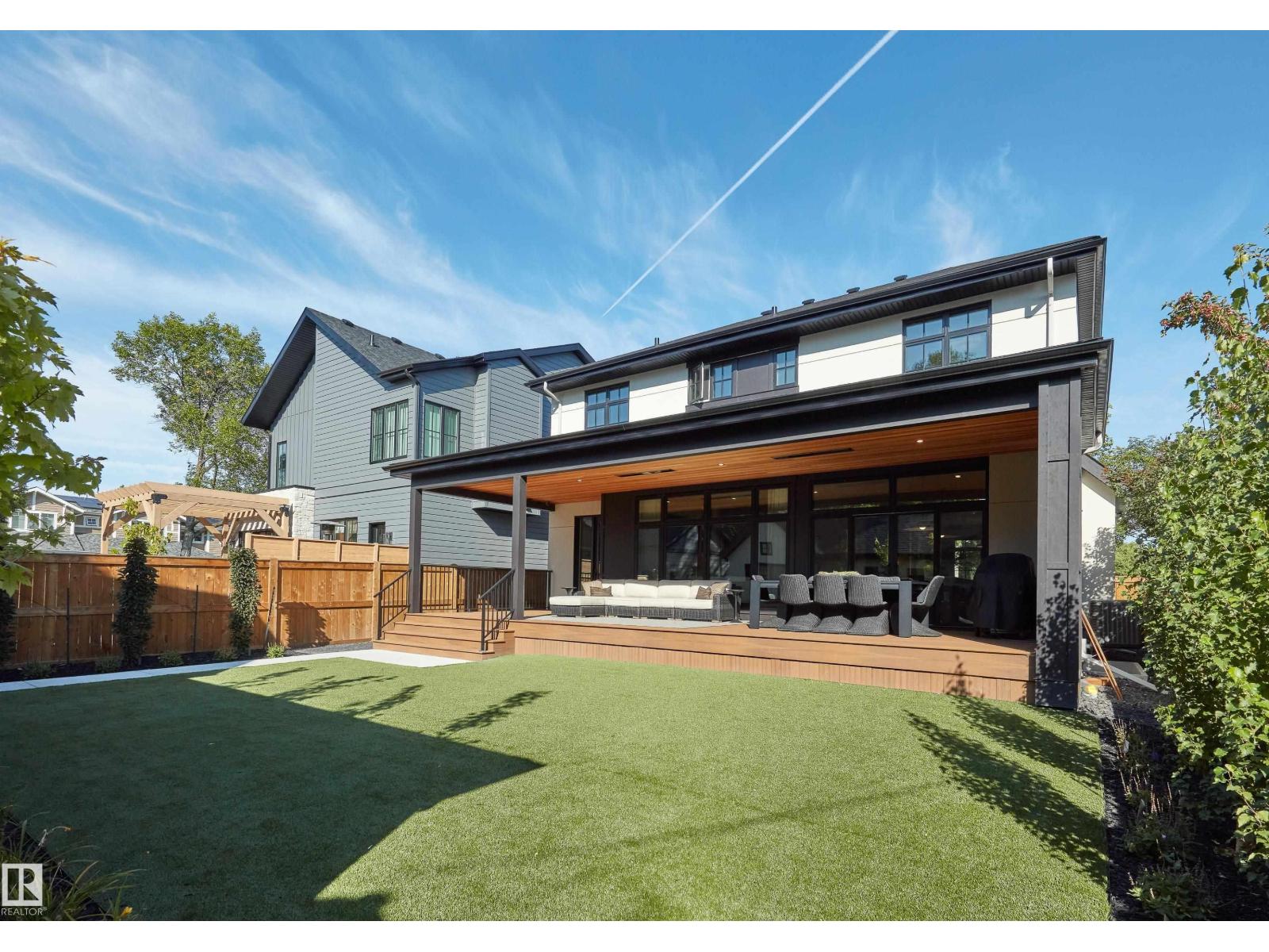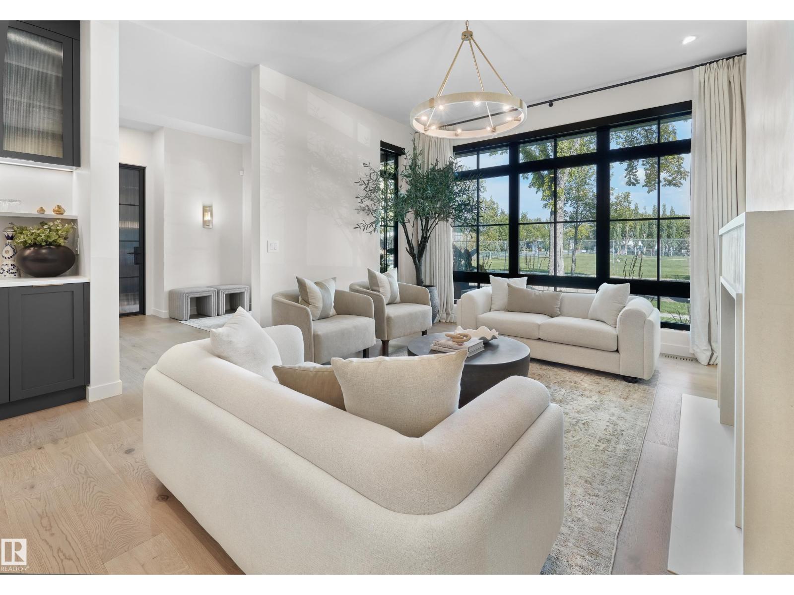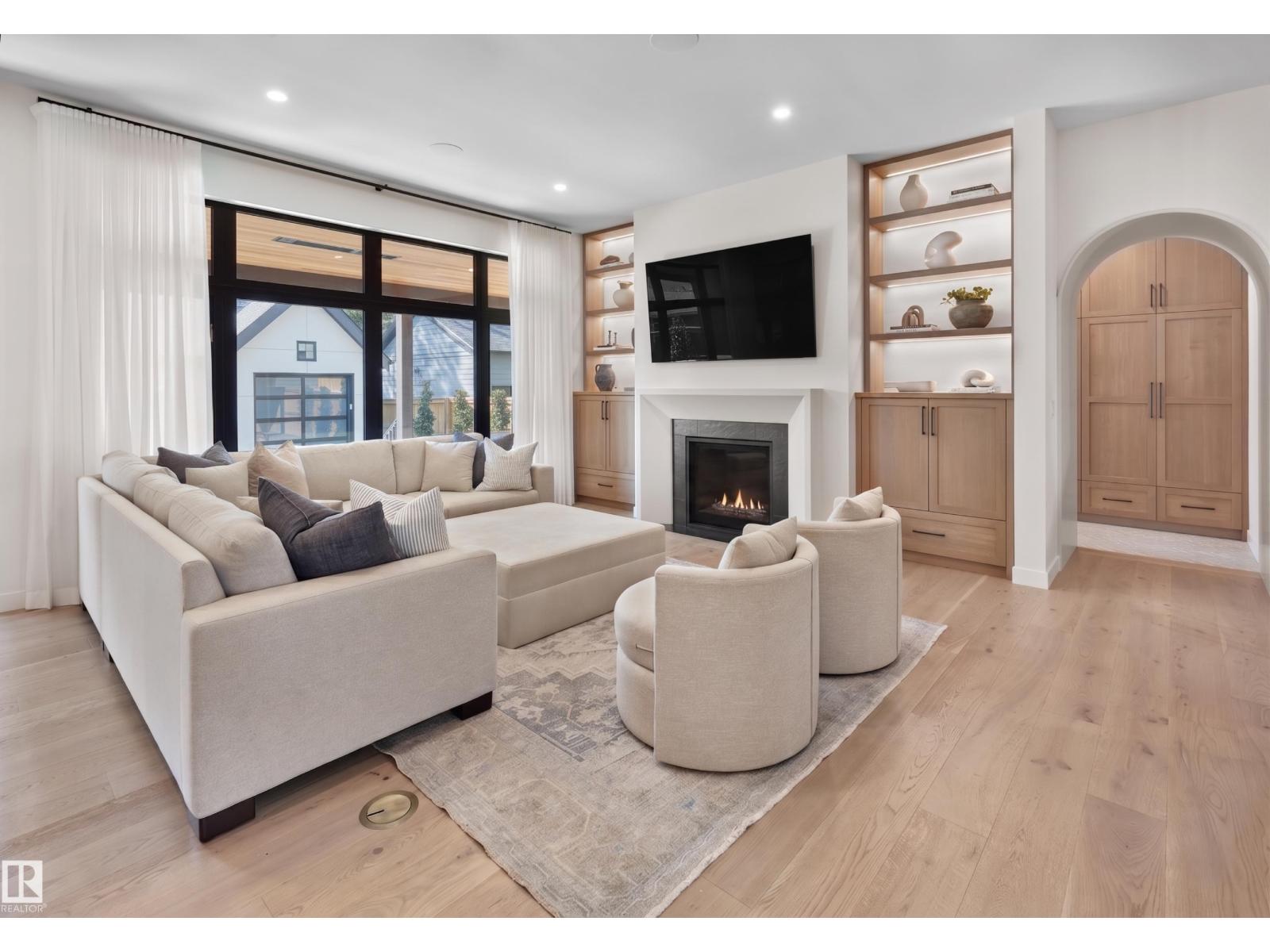 Set on a premier park-facing lot in the heart of Glenora & custom-built by Urbis, this modern farmhouse blends timeless architecture with elevated design. Featuring 5 bedrooms, 4.5 bathrooms, and a rare triple garage, the home offers exceptional space and functionality. The main floor showcases European oak hardwood, arched transitions, and a chef-inspired kitchen with white oak cabinetry, a fluted island, quartz waterfall edges, and a butler’s pantry. A dedicated bar area, formal living room, and separate family room—each with its own fireplace—create ideal spaces for both entertaining and everyday living. A private office, stylish powder room, and well-designed mudroom complete the main level. Upstairs offers 4 bedrooms, including a luxurious primary retreat with vaulted ceilings and a spa-like ensuite. The fully finished basement features a gym with infrared sauna (designed by the creators of the Kananaskis Nordic Spa), wet bar, and large rec space & guest suite. Steps to parks, schools, and amenities. (id:63190)