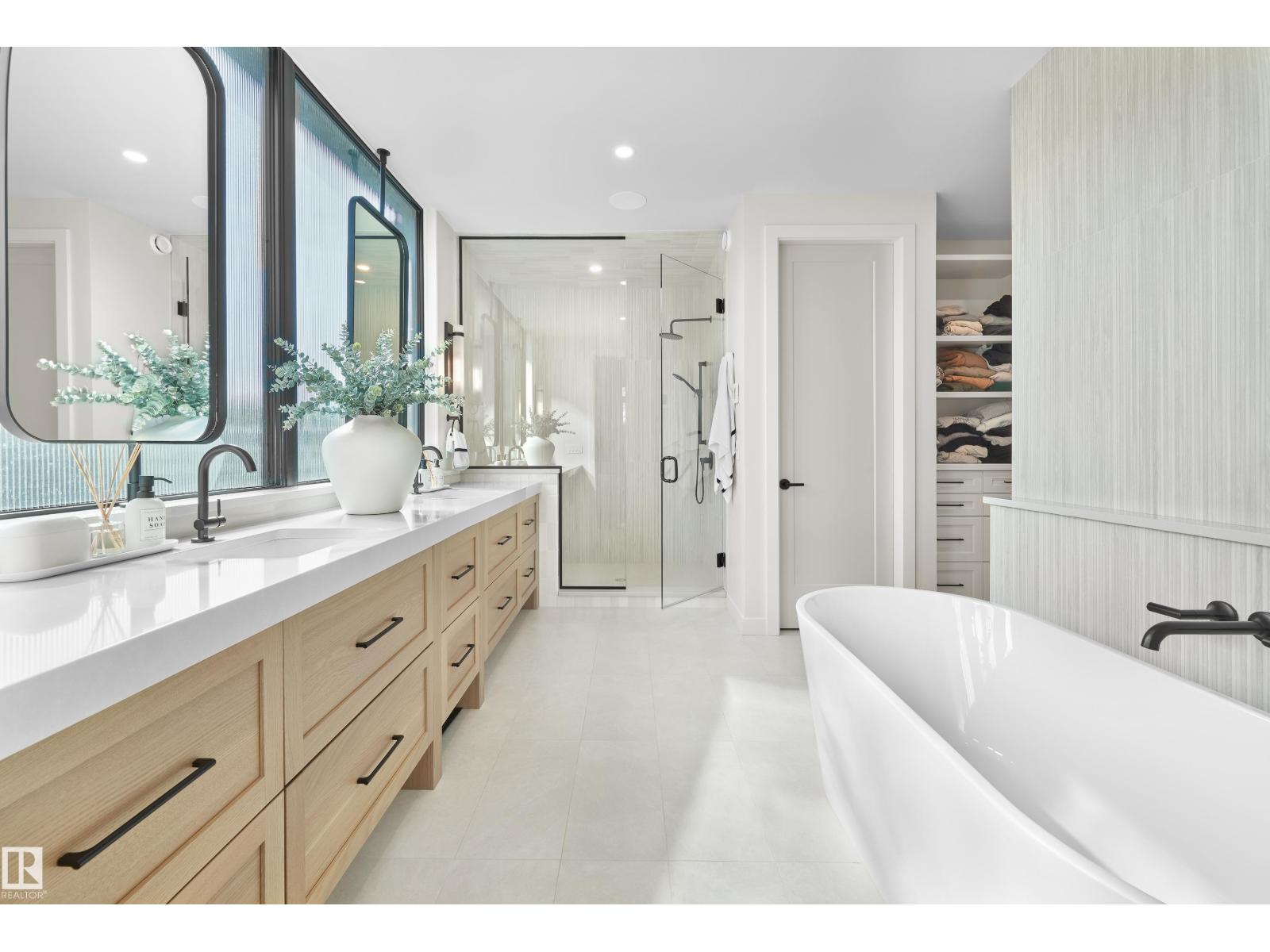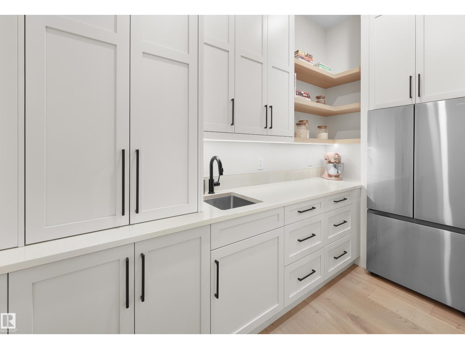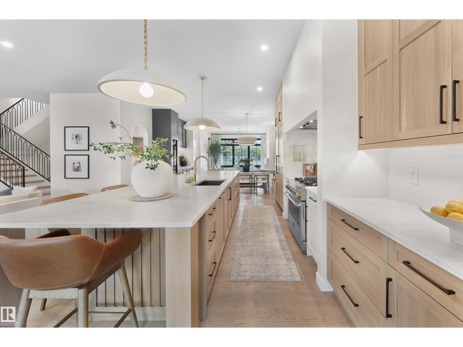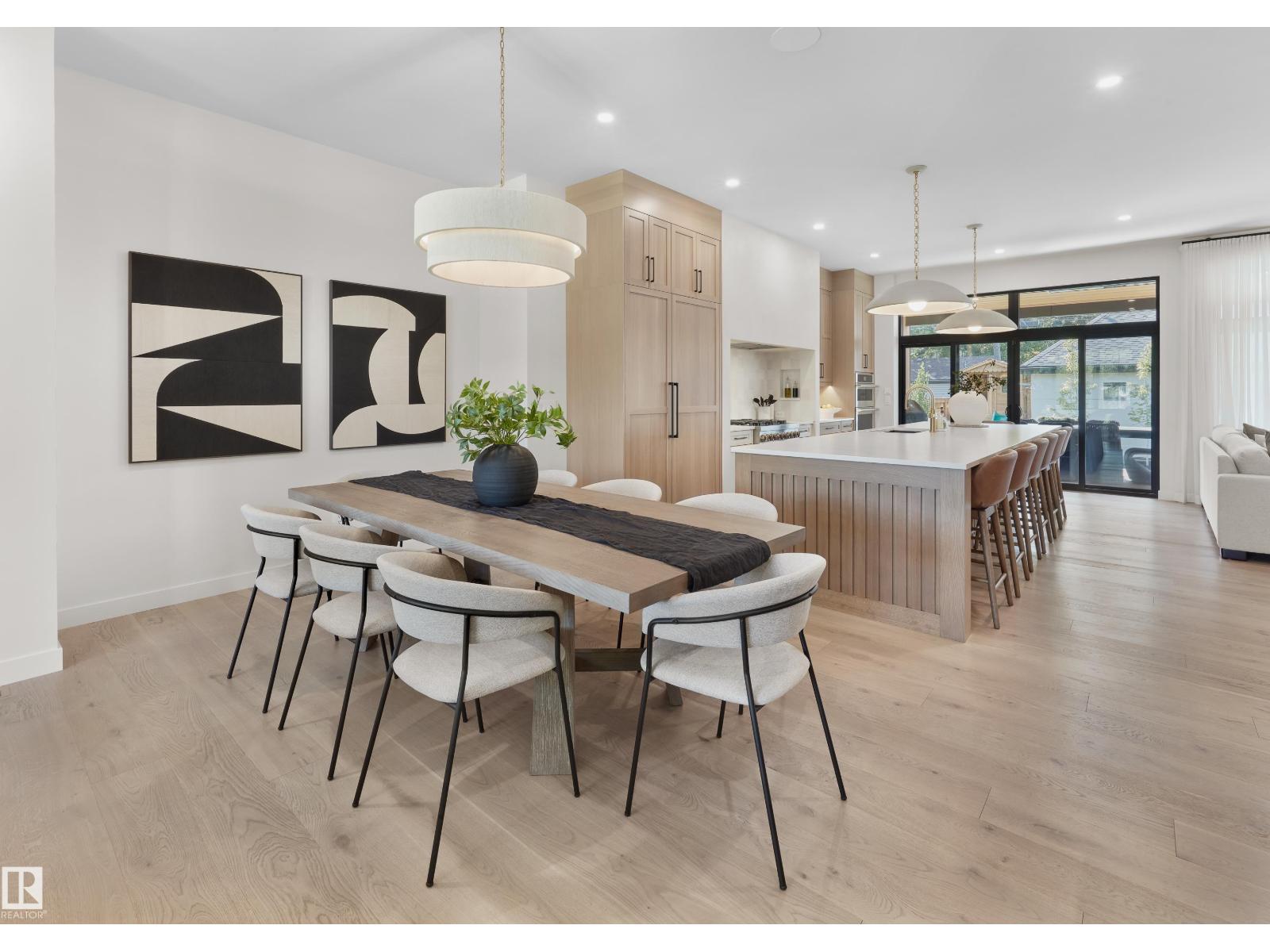 Set on a premier park-facing lot in the heart of Glenora & custom-built by Urbis, this modern farmhouse blends timeless architecture with elevated design. Featuring 5 bedrooms, 4.5 bathrooms, and a rare triple garage, the home offers exceptional space and functionality. The main floor showcases European oak hardwood, arched transitions, and a chef-inspired kitchen with white oak cabinetry, a fluted island, quartz waterfall edges, and a butler’s pantry. A dedicated bar area, formal living room, and separate family room—each with its own fireplace—create ideal spaces for both entertaining and everyday living. A private office, stylish powder room, and well-designed mudroom complete the main level. Upstairs offers 4 bedrooms, including a luxurious primary retreat with vaulted ceilings and a spa-like ensuite. The fully finished basement features a gym with infrared sauna (designed by the creators of the Kananaskis Nordic Spa), wet bar, and large rec space & guest suite. Steps to parks, schools, and amenities. (id:63190)