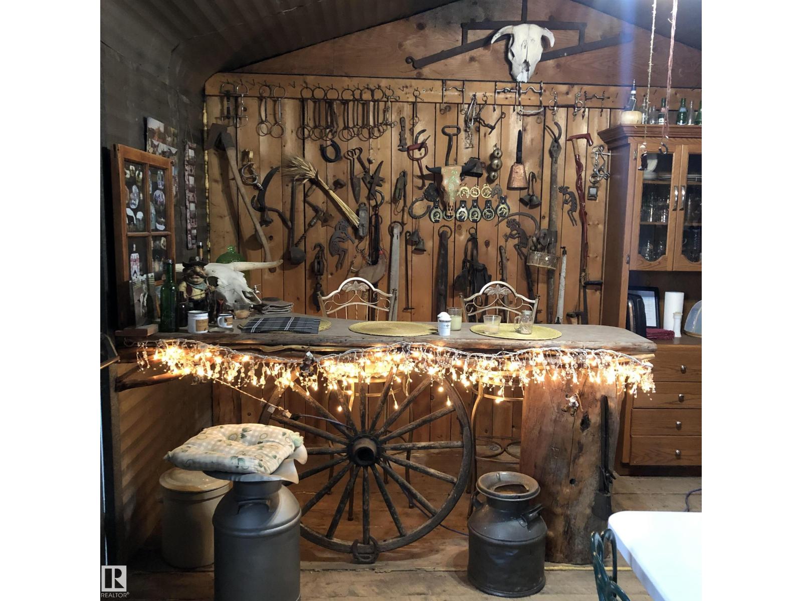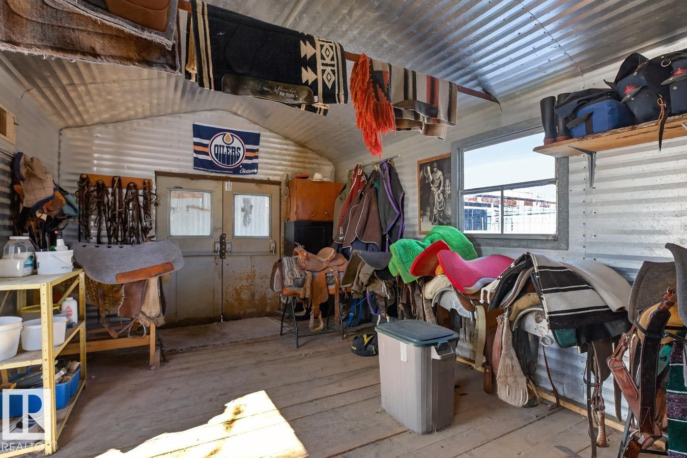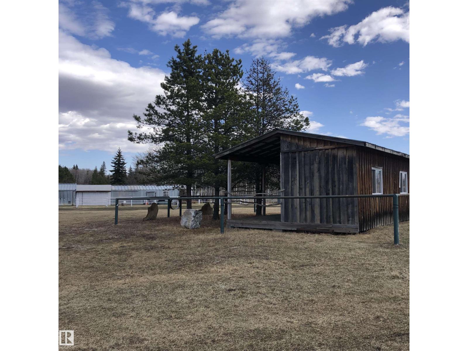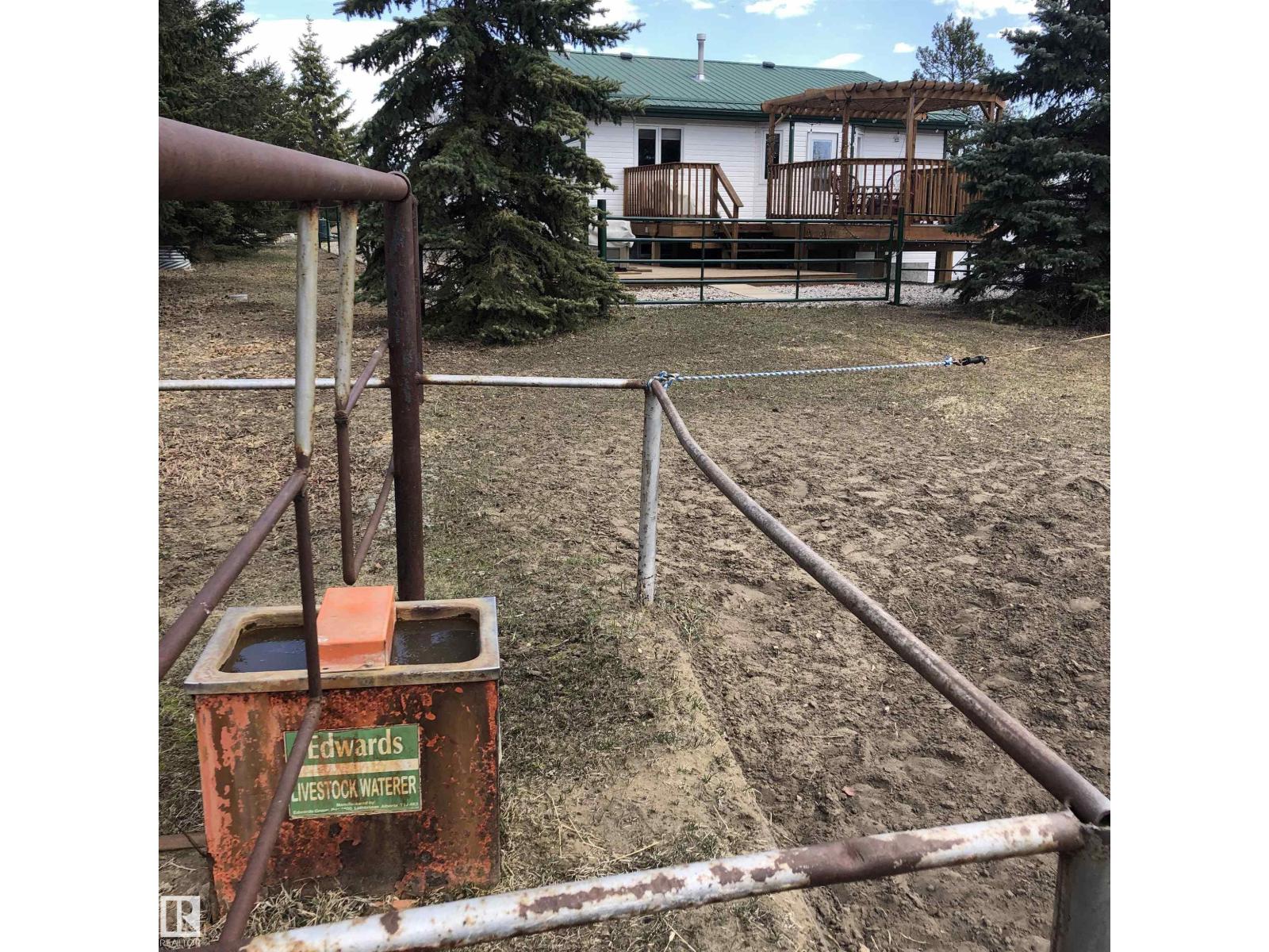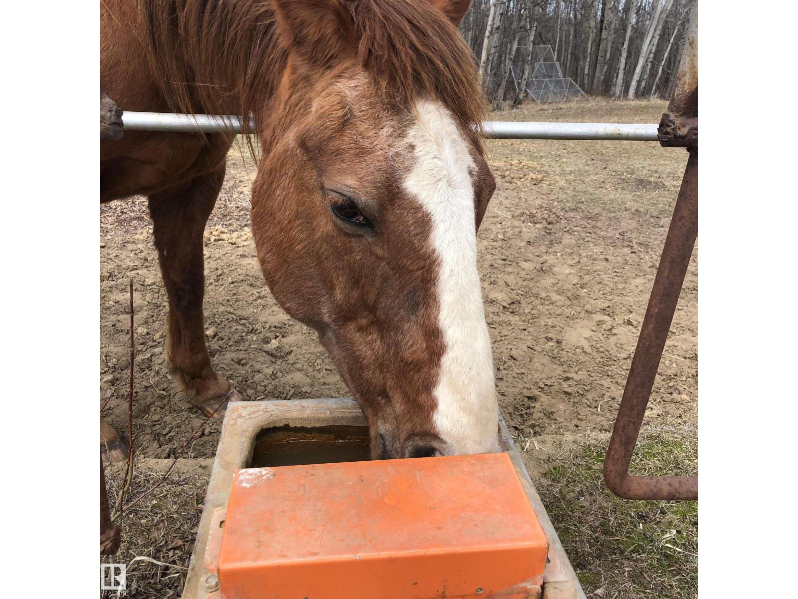 The ultimate opportunity for outdoor enthusiasts, equestrians, or entrepreneurs! The subdividable/multi-residential 74 acre parcel provides a picturesque plentitude of trees and meadows. Currently set up for horses with a 100' x 200' sand base arena, extensive pipe fencing, multiple paddocks, covered 60' breezeway, 9 horse shelters, barn, tack shed, rustic party room, and auto-waterer from the bored well. The thoughtfully placed walkout bungalow with low maintenance landscaping has extensive updates completed in 2024: furnace & A/C, triple pane windows, vinyl plank flooring, and 3000 gallon cistern. The west facing deck with natural gas hookup, pergola, and hot tub, is ready for relaxing or entertaining while your equine friends and wildlife meander under sky or stars. Enjoy morning coffee on the sunny south deck off the bright and efficient kitchen. The property comes complete with a 50 x 60 heated shop with tall overhead doors, sheds, cozy cabin and a creek. 10min. to Edm.,Sp.Grove, & 25min. to airport! (id:63190)