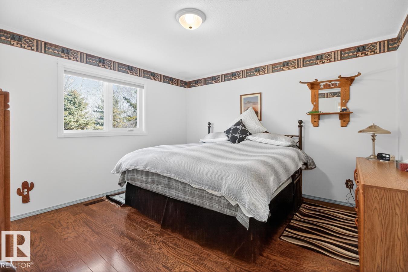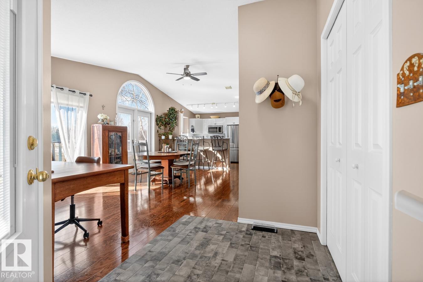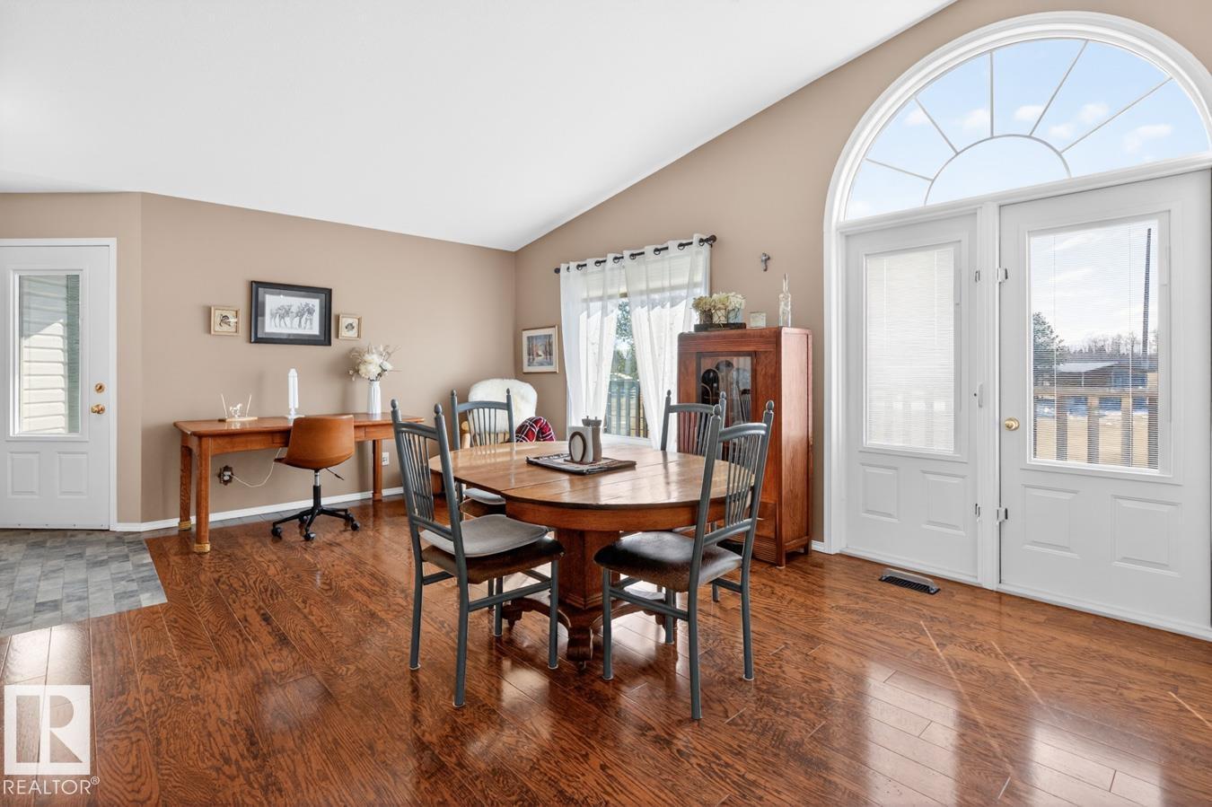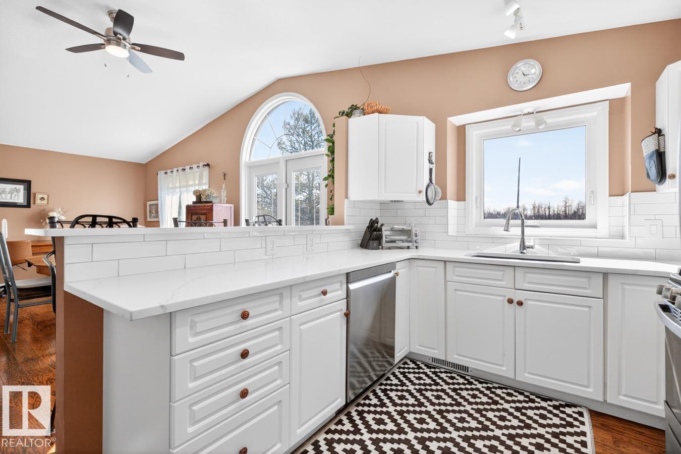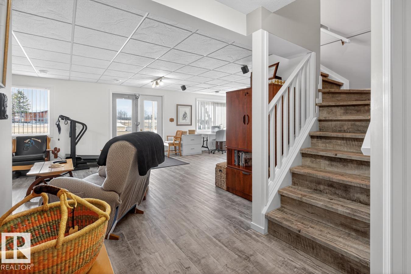 The ultimate opportunity for outdoor enthusiasts, equestrians, or entrepreneurs! The subdividable/multi-residential 74 acre parcel provides a picturesque plentitude of trees and meadows. Currently set up for horses with a 100' x 200' sand base arena, extensive pipe fencing, multiple paddocks, covered 60' breezeway, 9 horse shelters, barn, tack shed, rustic party room, and auto-waterer from the bored well. The thoughtfully placed walkout bungalow with low maintenance landscaping has extensive updates completed in 2024: furnace & A/C, triple pane windows, vinyl plank flooring, and 3000 gallon cistern. The west facing deck with natural gas hookup, pergola, and hot tub, is ready for relaxing or entertaining while your equine friends and wildlife meander under sky or stars. Enjoy morning coffee on the sunny south deck off the bright and efficient kitchen. The property comes complete with a 50 x 60 heated shop with tall overhead doors, sheds, cozy cabin and a creek. 10min. to Edm.,Sp.Grove, & 25min. to airport! (id:63190)
