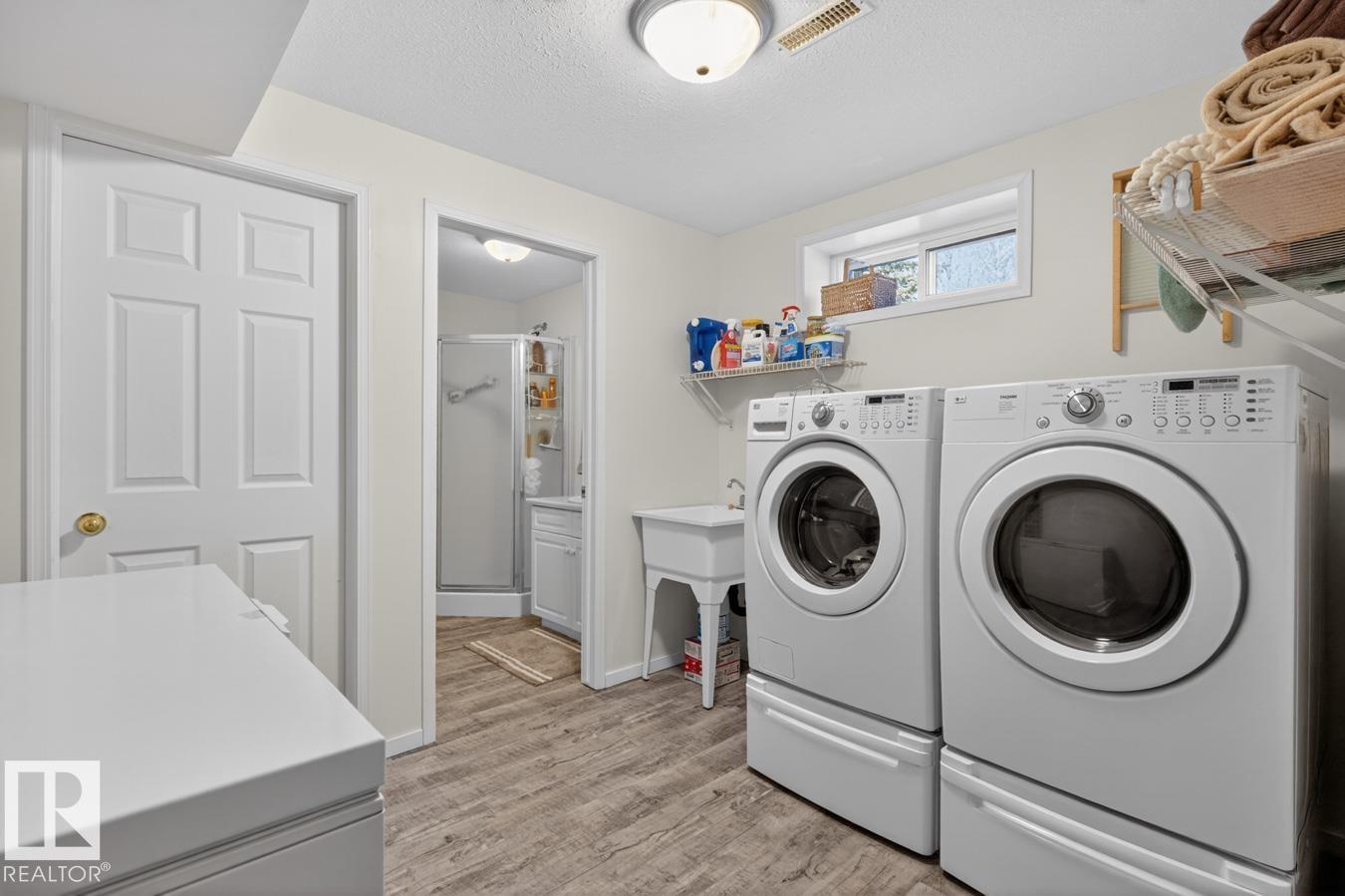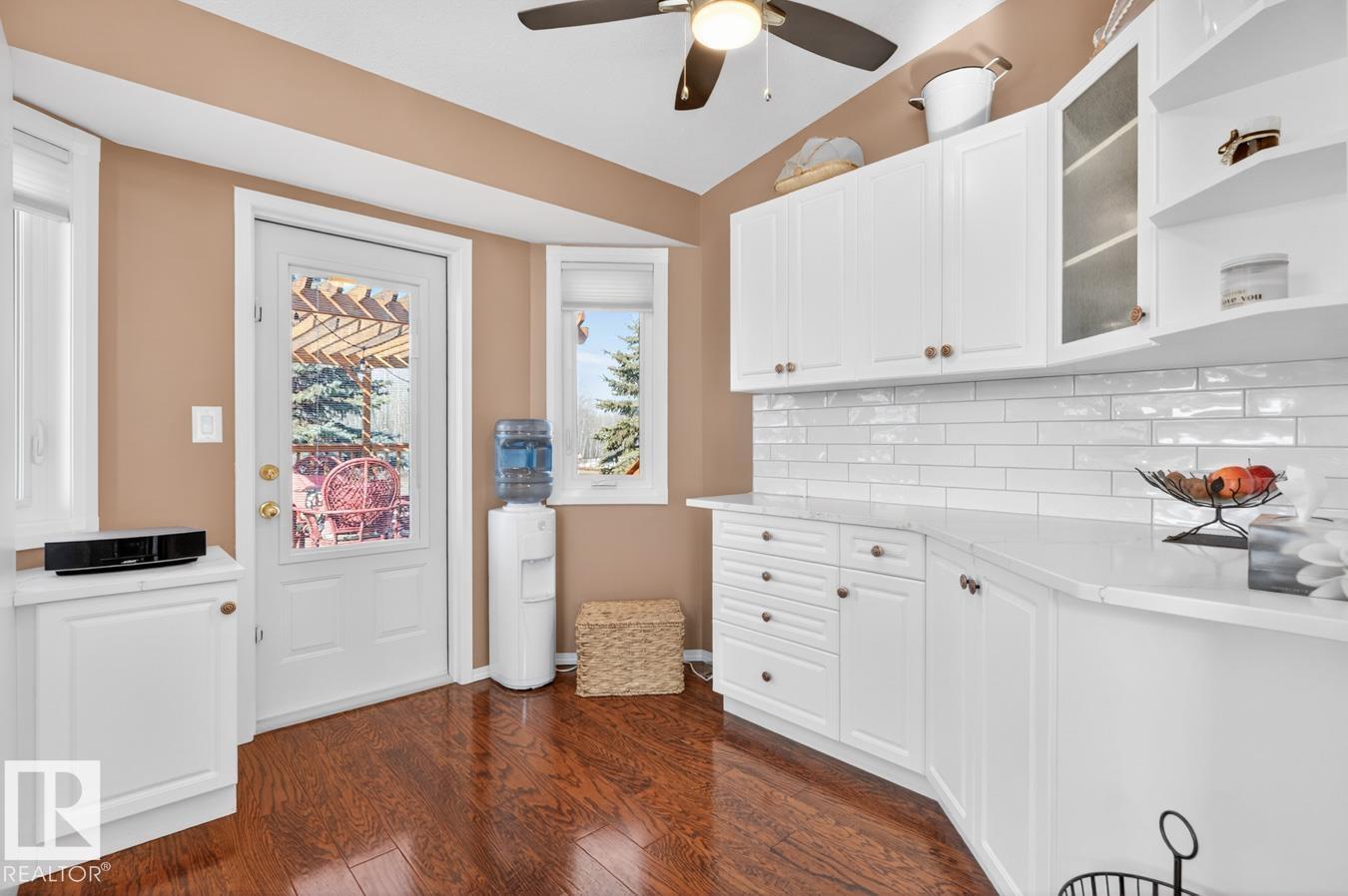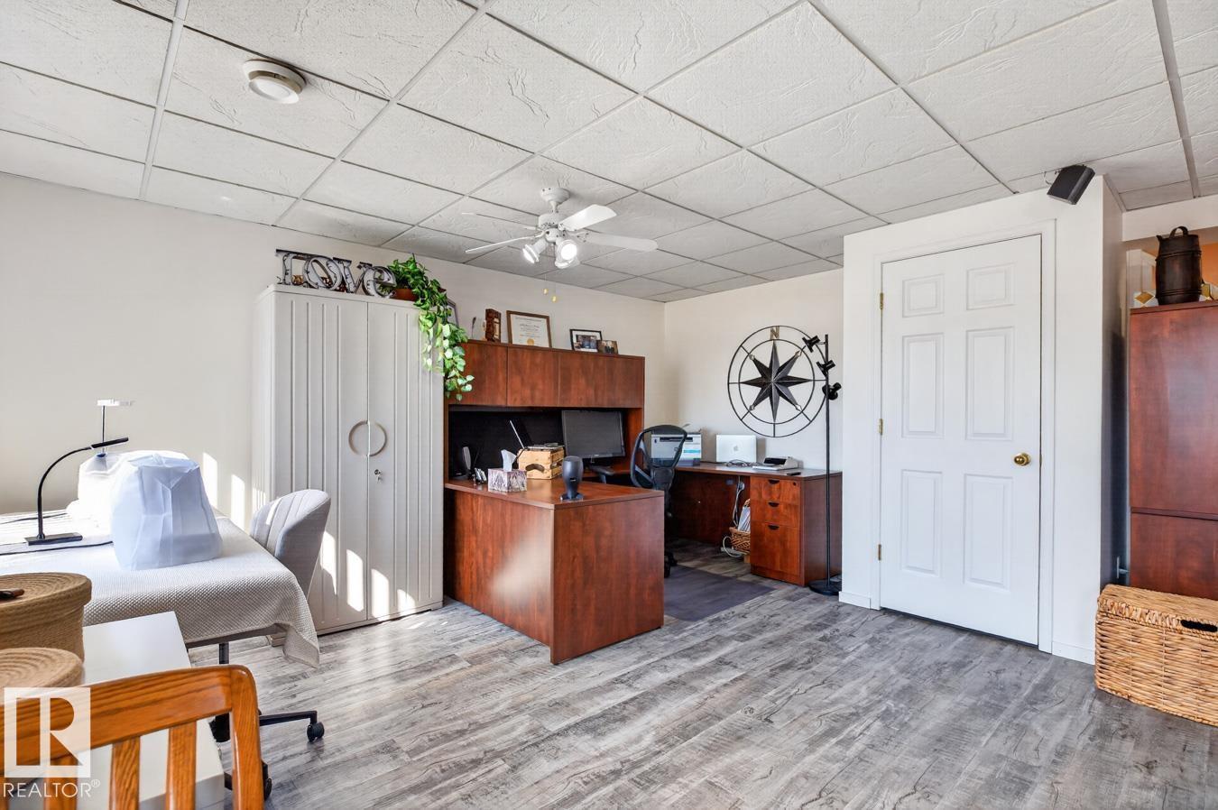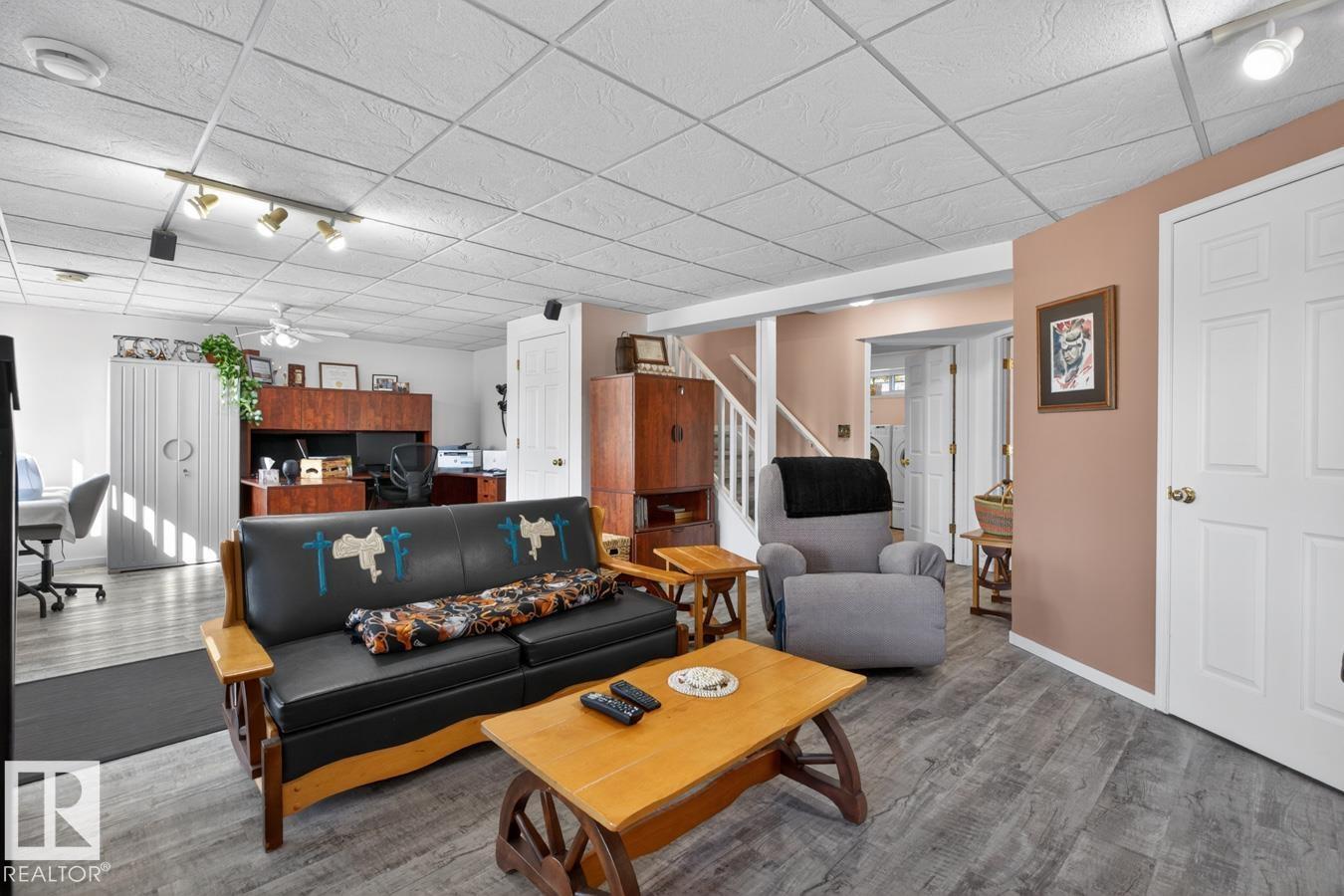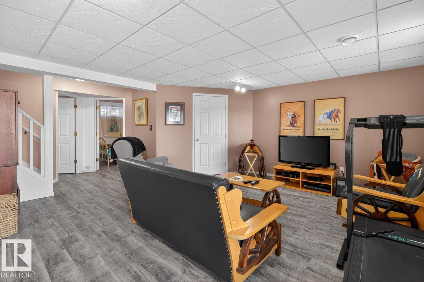 The ultimate opportunity for outdoor enthusiasts, equestrians, or entrepreneurs! The subdividable/multi-residential 74 acre parcel provides a picturesque plentitude of trees and meadows. Currently set up for horses with a 100' x 200' sand base arena, extensive pipe fencing, multiple paddocks, covered 60' breezeway, 9 horse shelters, barn, tack shed, rustic party room, and auto-waterer from the bored well. The thoughtfully placed walkout bungalow with low maintenance landscaping has extensive updates completed in 2024: furnace & A/C, triple pane windows, vinyl plank flooring, and 3000 gallon cistern. The west facing deck with natural gas hookup, pergola, and hot tub, is ready for relaxing or entertaining while your equine friends and wildlife meander under sky or stars. Enjoy morning coffee on the sunny south deck off the bright and efficient kitchen. The property comes complete with a 50 x 60 heated shop with tall overhead doors, sheds, cozy cabin and a creek. 10min. to Edm.,Sp.Grove, & 25min. to airport! (id:63190)