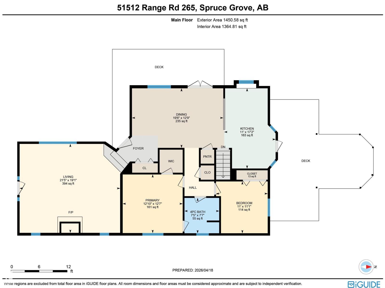 | Primary Bedroom | Main level | 12.5 x 12.8 | — |