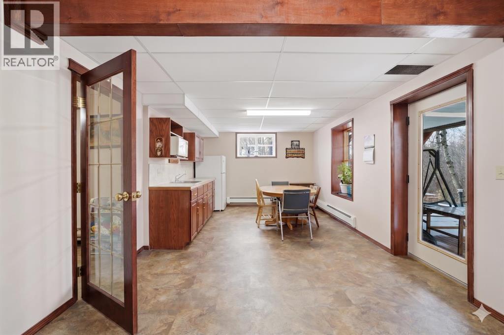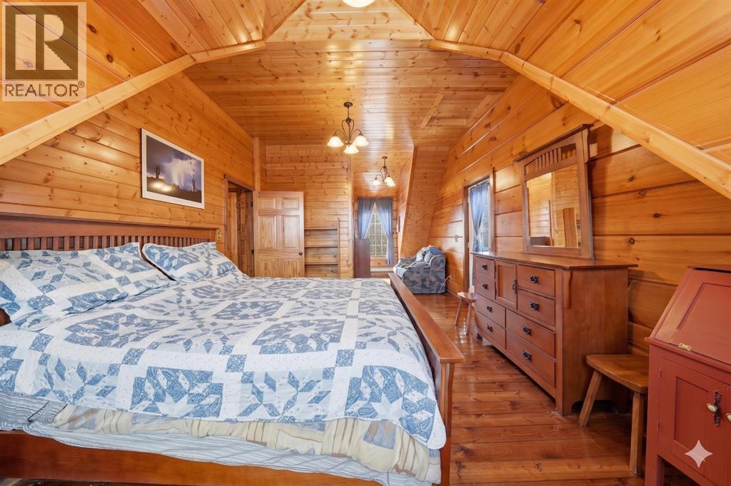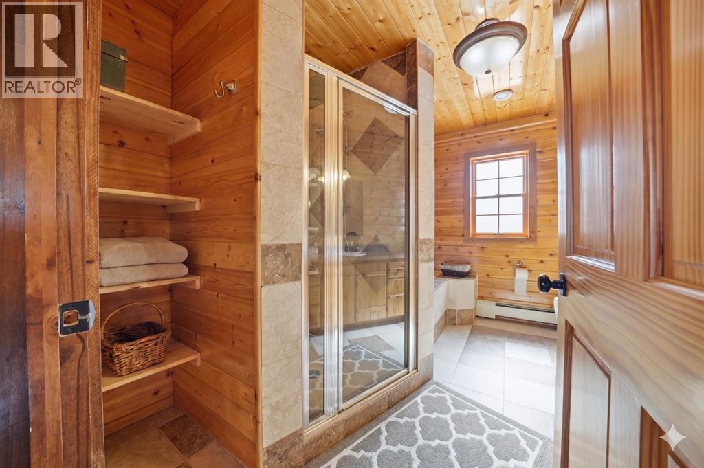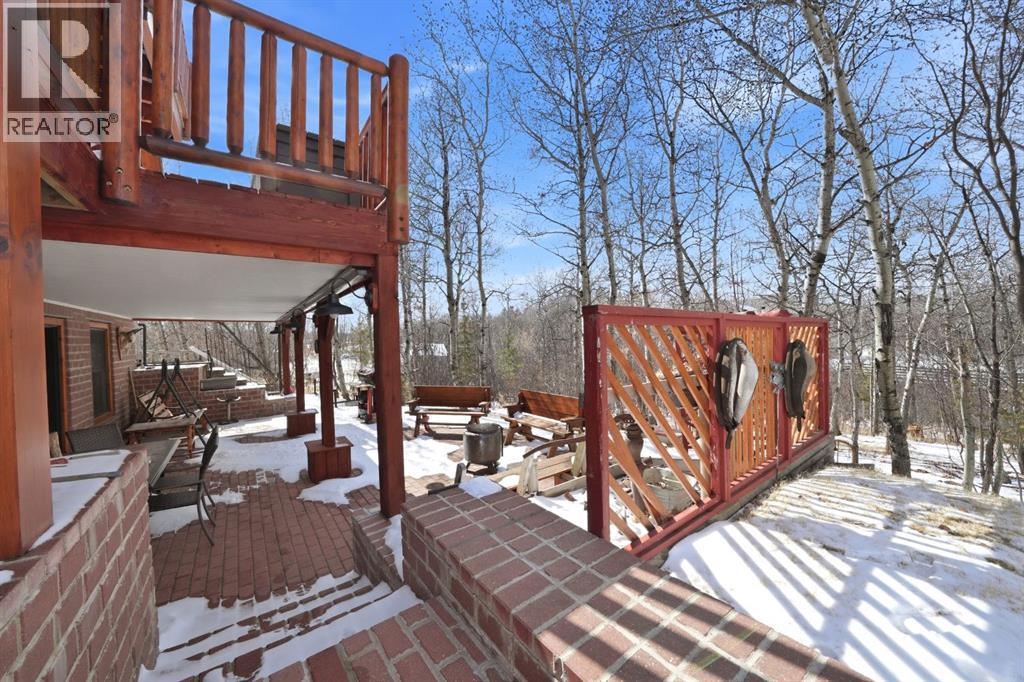 Tucked into the peaceful lakeside community of White Sands, set on a beautifully sized lot spanning over half an acre this custom-built log home offers a thoughtful balance of craftsmanship and everyday comfort. A spacious front veranda welcomes you in, setting the tone for what’s to come. Inside, soaring 10-foot ceilings on the main and upper levels and an abundance of windows create a bright, open feel, while the kiln-dried 8”x12” pine logs—sourced from Wisconsin—bring warmth and character throughout. Stunning exposed beams add to the architectural charm, and thoughtfully designed windows that fold inward make exterior cleaning simple and convenient. The main floor is designed for both relaxing and gathering, featuring engineered hardwood, a cozy wood-burning fireplace, and an open layout that flows effortlessly into the kitchen. Designed with indoor-outdoor living in mind, the expansive deck extends your living space seamlessly. The kitchen offers ample cabinetry, a corner pantry, stainless steel appliances, and a peninsula with seating. A versatile bedroom or office, along with a laundry room and 2-piece bath, complete the main level—creating a home that functions beautifully with nature in mind. Upstairs, a loft overlooks the living space below, enhancing the home’s airy feel. This level features two bedrooms, including a spacious primary retreat with a sitting area, walk-in closet, and access to a private upper deck—an ideal spot to take in the quiet surroundings. A well-appointed 4-piece bathroom with a deep soaker tub and separate tiled shower serves the upper level, blending comfort and functionality with subtle antique-inspired details. The fully developed walk-out basement with 8-foot ceilings provides additional space for family or guests, featuring a welcoming family room, kitchenette, spacious bedroom large enough for a king-sized bed, full bathroom, and additional storage rooms. Direct access to a large covered patio and fire pit area makes this level perfect for summer evenings. Stepping outside, the property is surrounded by mature trees and bordered by an environmental reserve, offering a sense of privacy and a natural backdrop that’s hard to replicate. Fruit trees and berry bushes—including apple, saskatoon, chokecherry, and raspberry—enhance the setting, along with multiple outdoor spaces to relax and unwind. For those who enjoy gardening, a fully fenced garden with a dedicated shed creates the perfect space to grow and enjoy. The oversized heated 24'x28' double garage features 220V service, while a separate 10'x28' cold storage area provides excellent additional space. With an RV sani-dump and ample parking, this property is well-equipped for both -everyday living and weekend getaways. (id:63190)