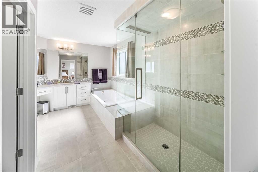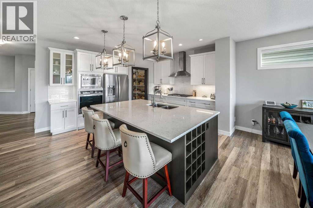 AMAZING LOCATION & LOADED WITH UPGRADES! Rare opportunity to own a truly exceptional home in an unbeatable location, sun filled SW backing onto scenic waterways and walking paths and facing a park out front. Situated on one of the largest lots on the street with a sun-filled backyard, homes like this rarely come available.This impeccably maintained, fully developed home offers an open and functional layout with 4 bedrooms and 3.5 bathrooms. Soaring ceilings, massive windows, and modern wide plank flooring create a bright and inviting space. The large family room is centered around a gas fireplace, adding warmth and a beautiful focal point.The chef-inspired kitchen features stone countertops, a massive island, built-in oven and microwave, 5-burner gas stove, hood fan, wine fridge, and a walkthrough pantry with possible potential for a spice kitchen. A main floor den, mudroom with built-ins, and access to the triple attached garage (drywalled, insulated, and high ceilings) add to the functionality.Upstairs includes 3 bedrooms plus a large bonus room with new carpet throughout. Two bedrooms are set in their own wing with walk-in closets and a well-designed shared bath. The primary suite overlooks the canal and features a large walk-in closet with custom built-ins, convenient laundry access, and a spa-like ensuite with dual vanities, glass shower, and jetted soaker tub.The fully developed basement offers a large rec space, 4th bedroom, full bath, and ample storage—ideal for a media room, gym, or extended family.Enjoy the beautifully landscaped yard with a multi-level enclosed deck, aggregate concrete, and shed. Additional features include 2 A/C units, central vacuum, custom window coverings, and many more upgrades throughout.A one-of-a-kind home in a truly exceptional setting. (id:63190)