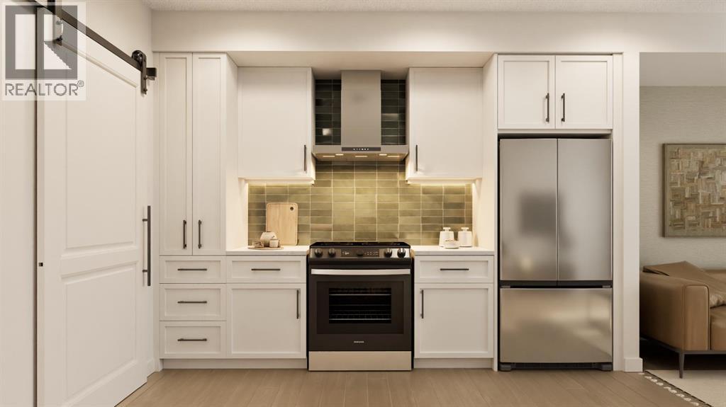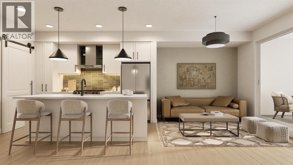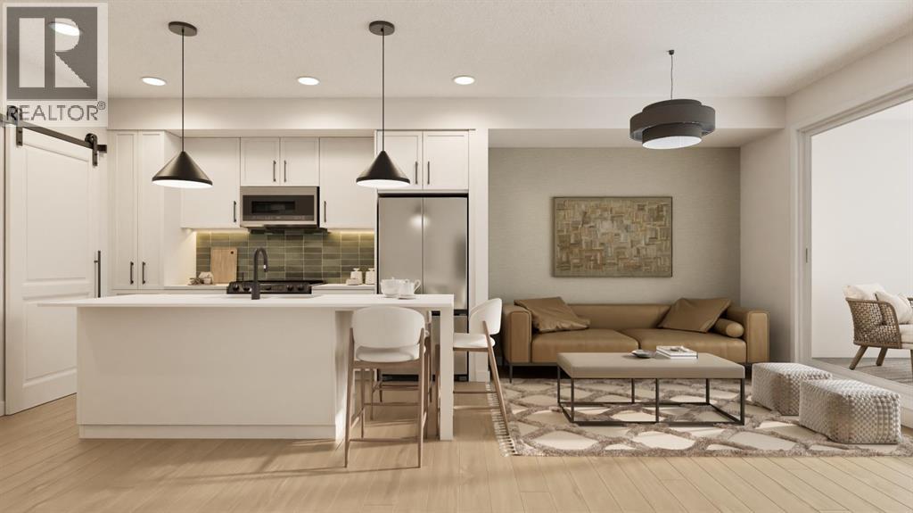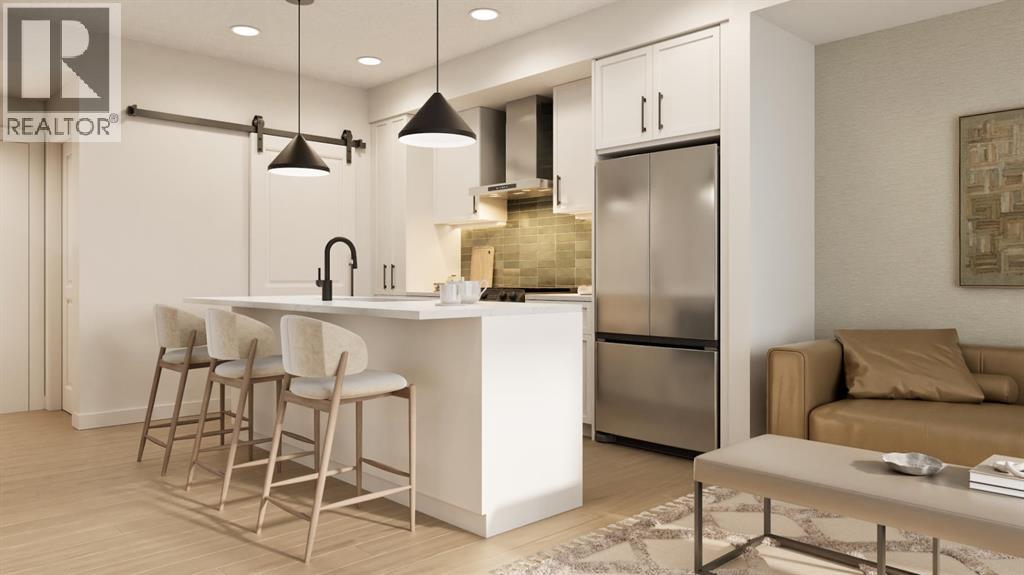 *Pre-selling and slated for first occupancies in late 2027* FIRST TIME HOME BUYERS NEW HOME GST REBATE AVAILABLE!! Welcome to Unit C at Metro One, a thoughtfully designed two-bedroom, two-bathroom home offering approximately 711 square feet of comfortable, modern living space. This well-planned layout is both functional and inviting, making it a rare opportunity in a development with limited availability.Situated in Calgary’s desirable southwest, this residence is tailored for lifestyle-focused buyers, downsizers, and remote professionals seeking a refined yet practical home environment. The interior reflects Metro One’s signature design approach, blending contemporary finishes with purposeful features that enhance everyday living.Inside the unit, a spacious walk-in laundry room provides ample additional storage, complemented by a stylish barn door that maximizes space efficiency while adding a distinctive design element. The modern L-shaped kitchen is both attractive and highly functional, complete with a full island and a built-in table that creates a natural space for casual dining or entertaining. A walk-in pantry ensures that kitchen storage remains organized and easily accessible.The primary bedroom includes a private ensuite featuring a fully tiled shower, offering a clean and polished retreat. Air conditioning adds year-round comfort, ensuring the home remains enjoyable in every season.This unit also includes heated underground parking and dedicated storage, providing everyday convenience and peace of mind.Unit C is ideally suited for couples or individuals seeking a spacious and stylish home, downsizers looking for comfort without sacrificing quality, and remote professionals who benefit from additional space for work or guests. It also presents an excellent opportunity for investors pursuing a high-demand, low-maintenance rental property.With its balanced layout, modern finishes, and carefully considered features, Unit C represents a compelling opportunity for those seeking comfort, functionality, and long-term value in Calgary’s southwest. Contact us to book your private showing! (id:63190)