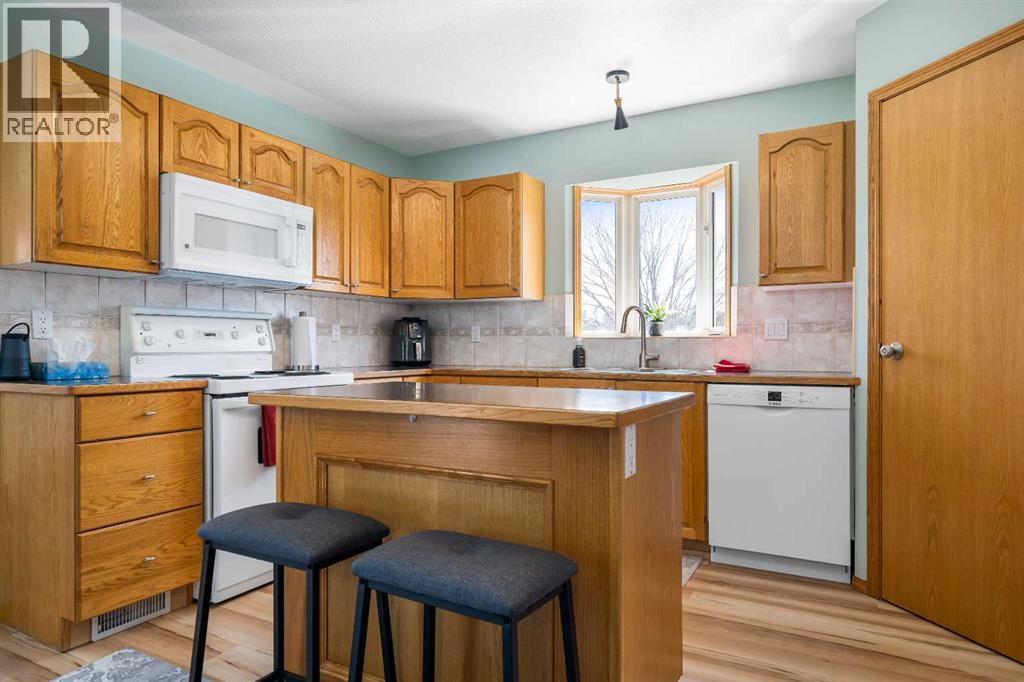 Welcome to your spacious, bright, affordable 3 bedroom home in Beautiful Riverside! Enjoy the convenient location in a park like setting with huge trees that you don't have to maintain as the city takes care of the park right out your front door! Soak up the Amazing abundance of Beautiful natural light that shines in from the skylight and huge windows on 3 sides of your living room! This 3 bedroom, 2 full bath, 2 storey half-duplex is clean, well kept and ready for its new owners to enjoy. Walk in to lower level home to an attached Double insulated heated garage, Large 3rd bedroom with large windows, full 4 pc bathroom, and laundry room. Up the stairs to the main level featuring 2 good sized bedrooms with double closets in both, full 4 piece bathroom, kitchen with island, and living room with all those glorious windows, gas fireplace for the cool winter nights and little patio facing the gorgeous trees and park to enjoy coffee and room for your BBQ, with natural gas hookup! Nice little fenced yard with firepit. Recent updates include: New vinyl plank flooring 3 years ago as well as fresh paint throughout. Singles 2015, A/C unit 2021, hot water tank 2017, garage heater 2024, new tap/faucet in tub/shower last week. Full appliance package included- Fridge, stove, dishwasher, washer/dryer, C/Air, C-Vac, U/G sprinklers. There are no monthly condo or maintenance fees here! Tons of parking for RV or extra vehicles, in the double garage plus super long driveway that can park 4 vehicles plus off street, great for entertaining! Easy access to city trails, river walks, and an easy walk or ride across Finley bridge to downtown! Owner is licensed REALTOR® in province of AB. Move in ready! Average utilities only $280/mo. Check it out today! (id:63190)