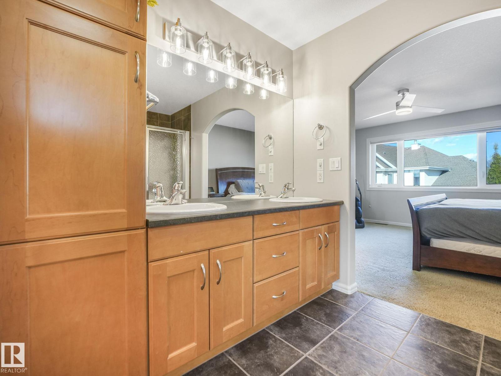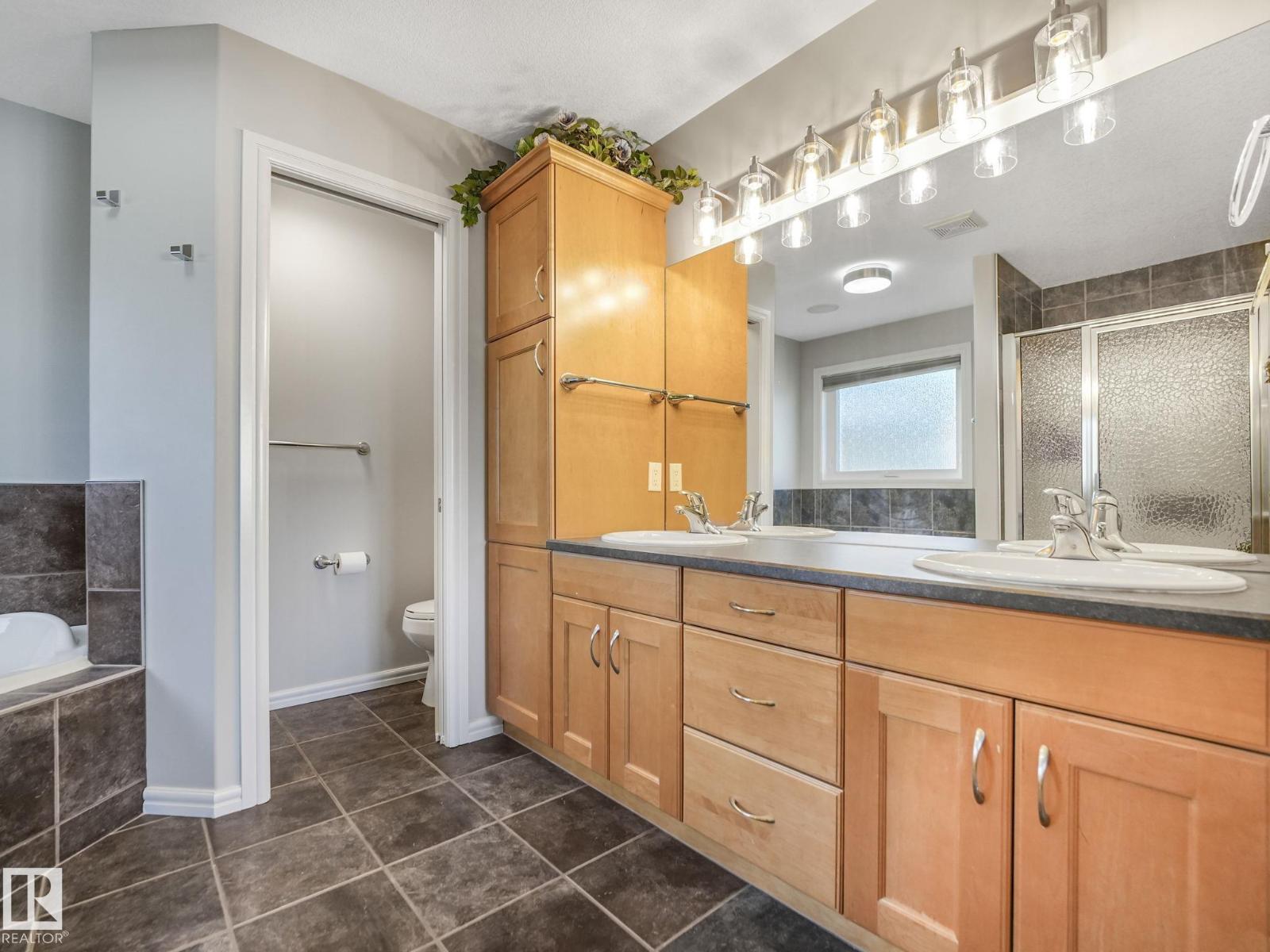 Welcome to this Exquisite F/F 2Storey, A/C, TRIPLE ATT. 30x26 HEATED GARAGE WITH EPOXY FLOORING, & W/Over 4300Sq.Ft of Living Space offers the perfect blend of comfort and sophistication. As you enter, you are greeted by a spacious open-concept layout featuring high ceilings and an abundance of natural light. The gourmet kitchen boasts 7-Appliances, GRANITE Countertops, a Lg Island, with 2-BI DISHWASHERS, ideal for entertaining or family gatherings. Plus a dinette facing the backyard & an inviting living room features a sleek fireplace. There is a Separate Dining Room for 8+Guests & a versatile office space. Upstairs has a BONUS ROOM, UPPER LAUNDRY & A lavish Primary Bdrm w/a spa-like 6Pc Ensuite & a generous walk-in closet. Plus 2-Bdrms and a full 4pc bath. The F/F Basement has a Theater Room w/a Projector TV, Games Room w/a Pool Table, Bdrm w/a Full 4pc Bath & lots of storage. The backyard has a lg deck, & 2-Sheds. Quiet Neighborhood w/walking paths, schools, & quick access to Whitemud & The Henday. (id:63190)