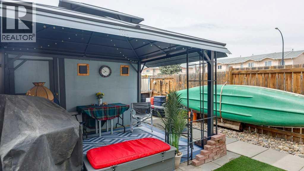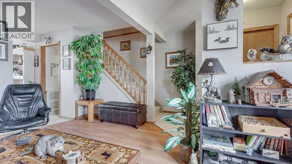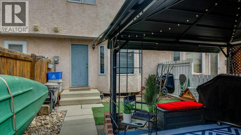 NO CONDO FEES! This 4-bedroom, 2.5-bathroom townhouse is an excellent opportunity for first-time buyers or investors. The main floor features a spacious front living room with a bright east-facing window and durable laminate flooring. The functional kitchen offers an eating area and comes complete with four appliances, plus a convenient 2-piece powder room for guests. Upstairs, you’ll find three bedrooms and a full 4-piece bathroom, including a generous primary bedroom with double closets. The fully finished basement adds even more living space with a fourth bedroom featuring a walk-in closet, a 3-piece bathroom, and a versatile family room or workshop area. Step outside to enjoy the fully fenced yard with a cute patio area, garden shed, and a two-stall gravel parking pad. Ideally located close to elementary schools, two high schools, and the Collicutt Centre, this home offers unbeatable convenience for families or as a rental property. (id:63190)