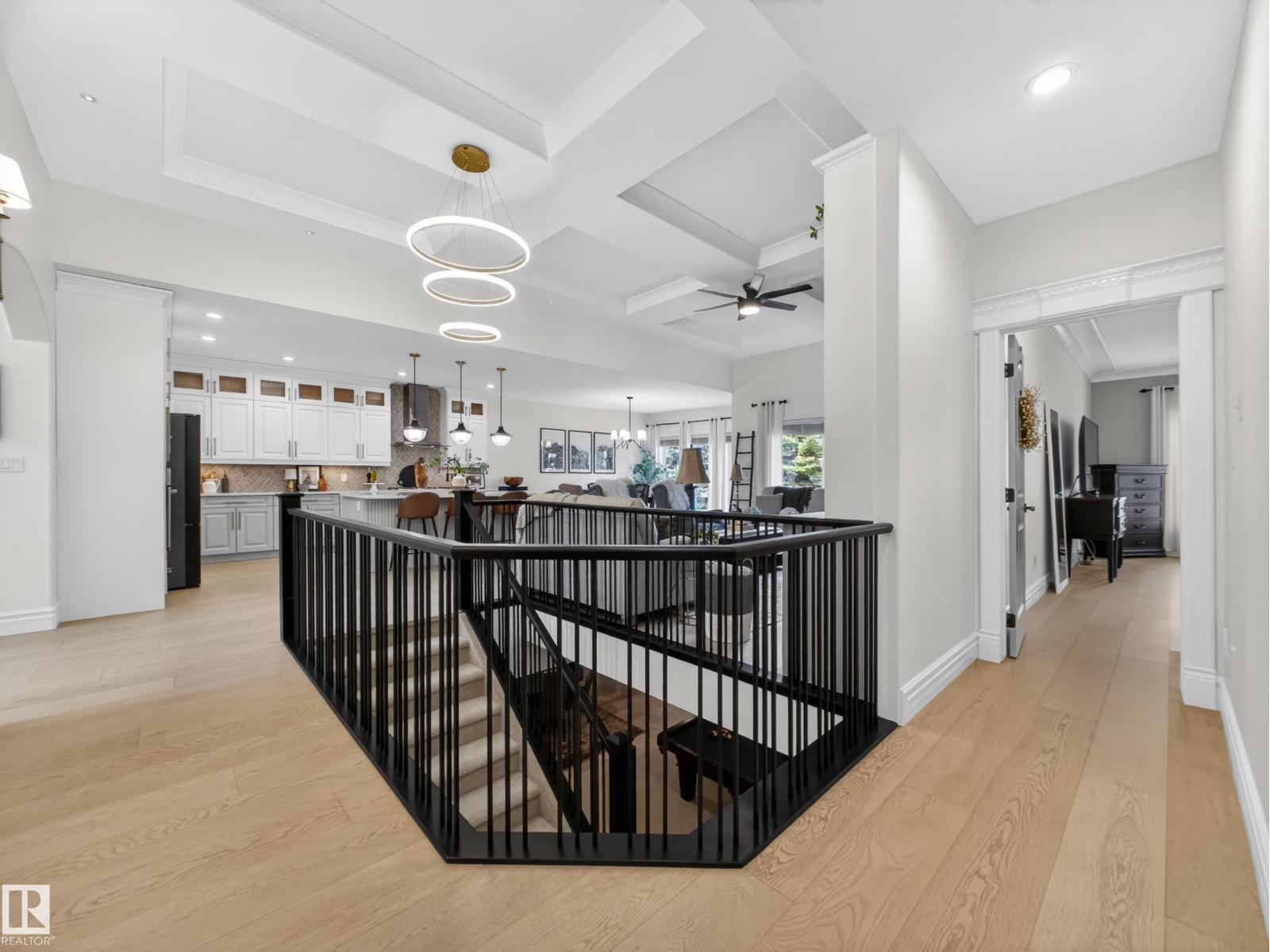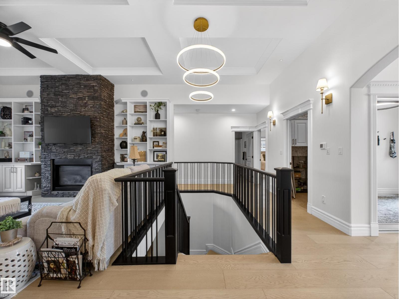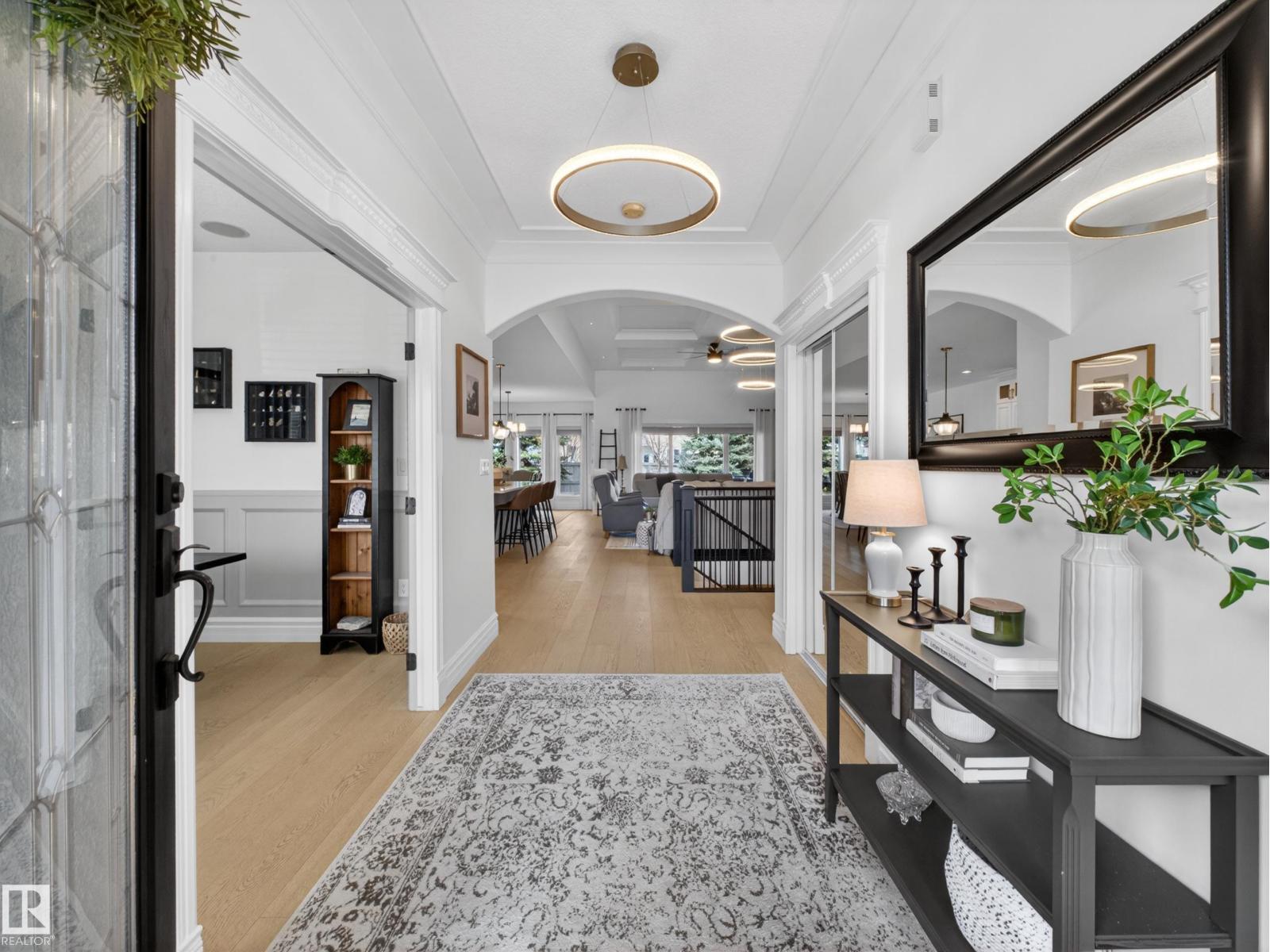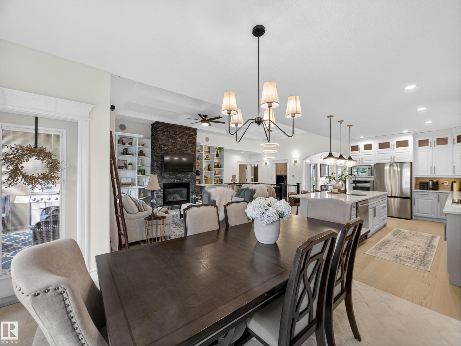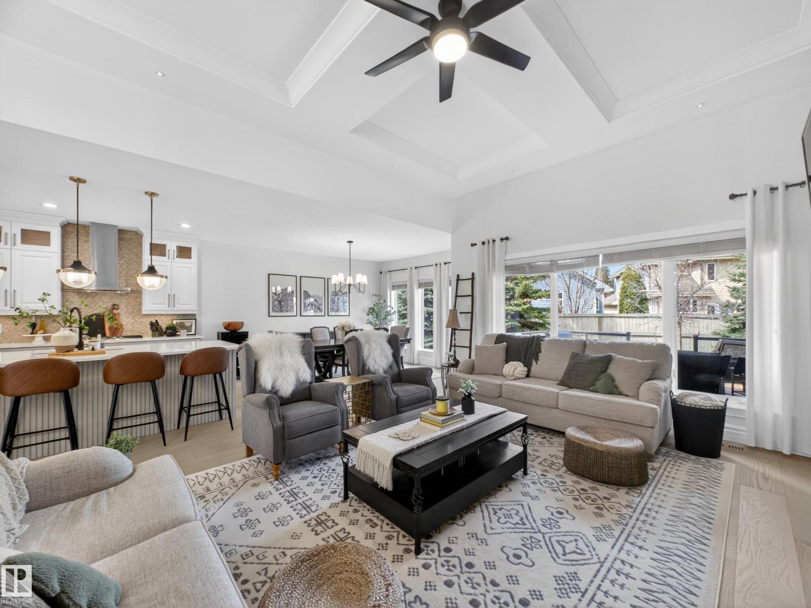 Fully reimagined executive bungalow in the prestigious gated community of Ravines of Richford, offering nearly 3,800 sq ft of refined living. Soaring 11’ coffered ceilings, a striking stacked-stone fireplace, custom millwork, and wide-plank white oak floors set the tone for a bright, upscale interior. The designer kitchen features granite counters, a large island, and seamless flow to the dining area overlooking a private, fully landscaped pie lot. The main-floor primary retreat offers a spa-inspired 5-piece ensuite and walk-in closet, with a private den, second bedroom, full bath, and oversized laundry completing the level. Downstairs delivers exceptional entertaining with a games area, wet bar, theatre room, 2 bedrooms, and full bath. Recent upgrades include a 2025 high-eff furnace, A/C, and more. Finished with a 24’ deep double attached garage with high ceilings—perfect for lifts or storage. (id:63190)