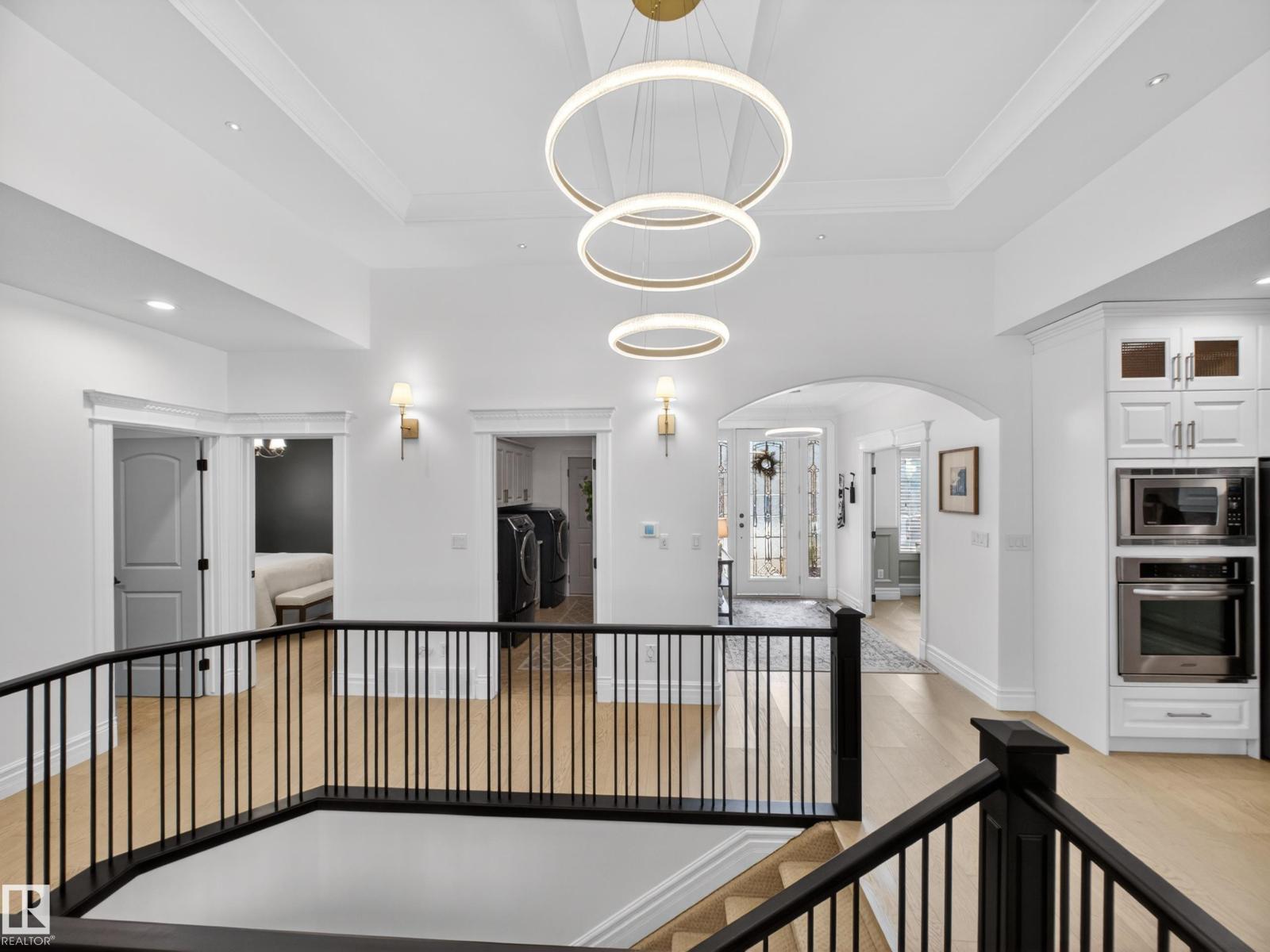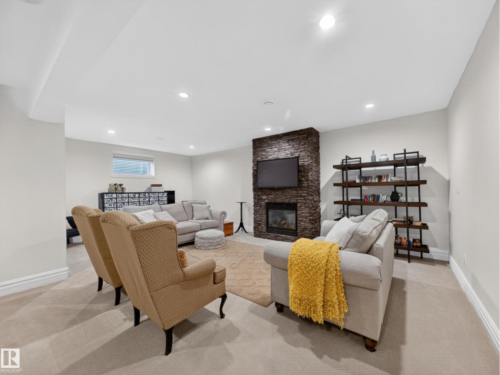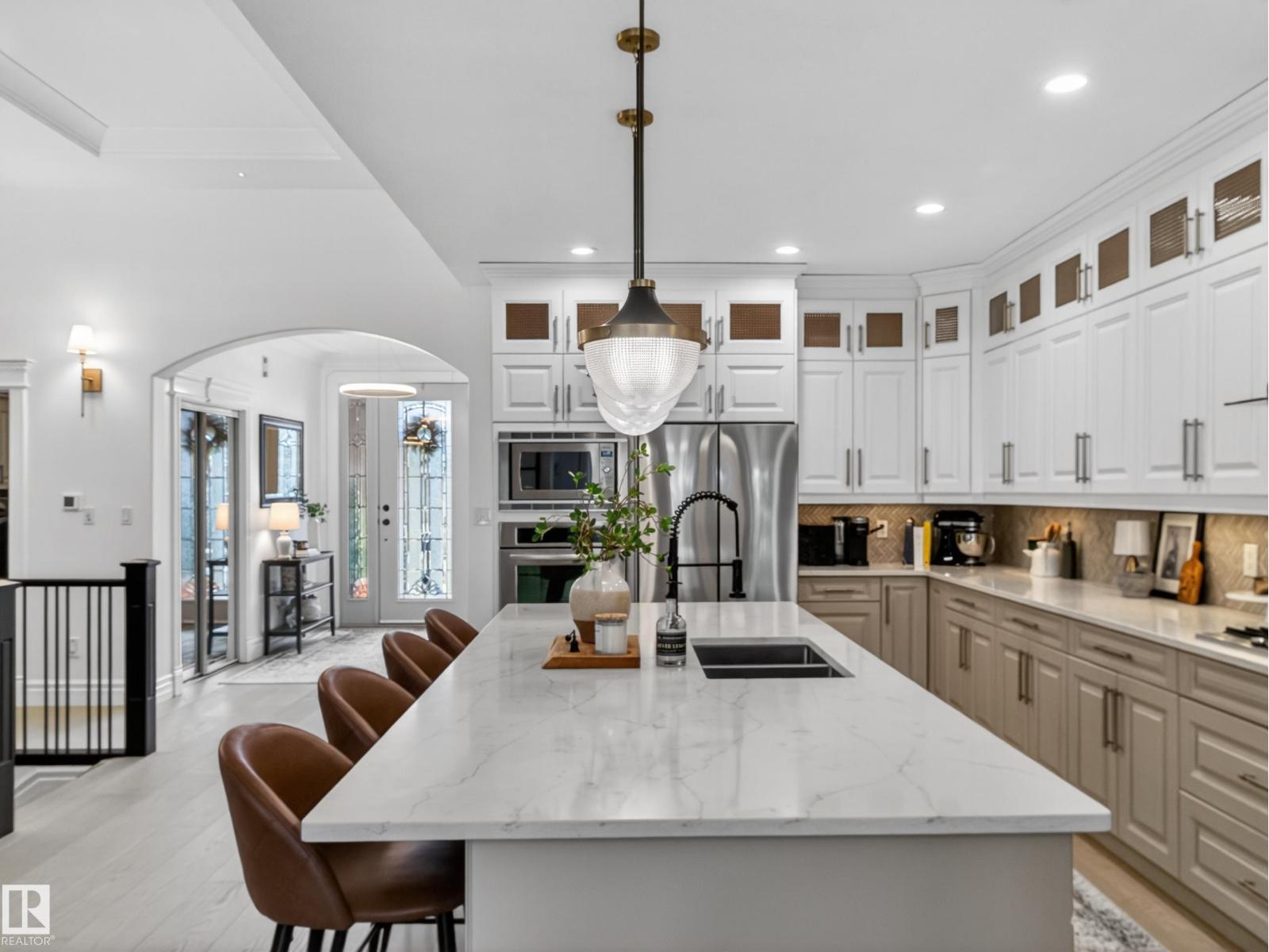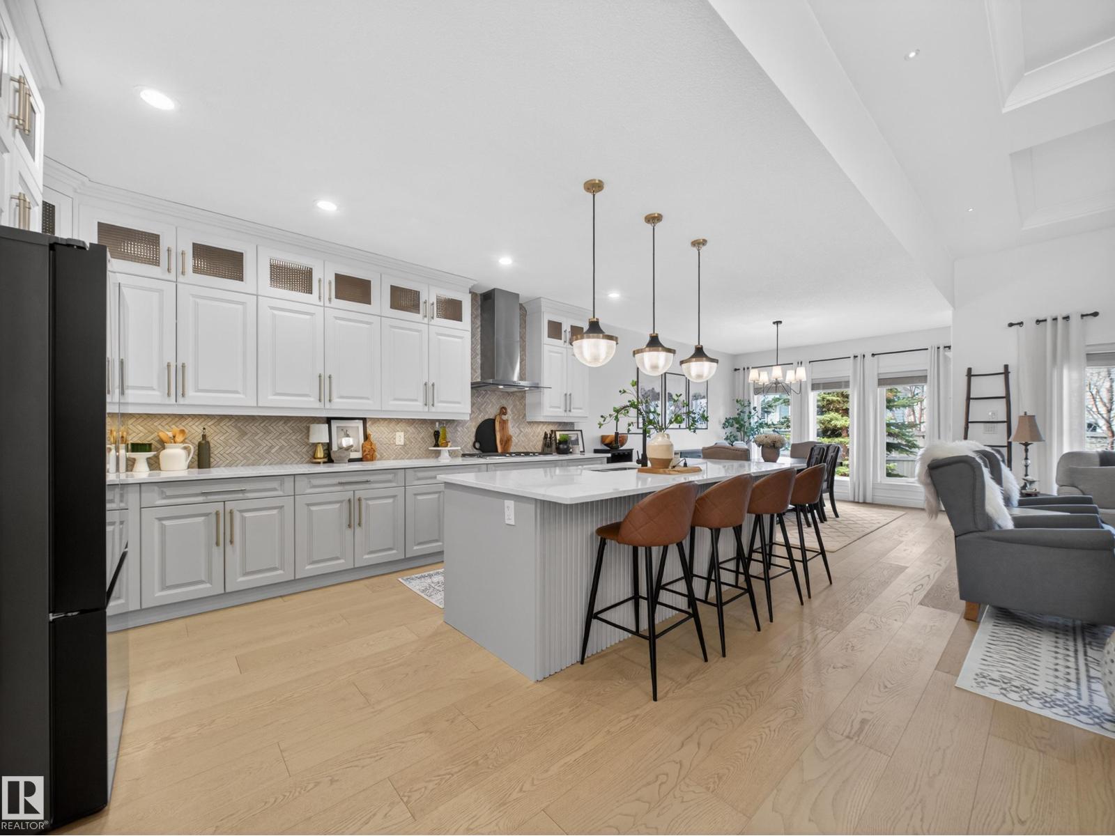 Fully reimagined executive bungalow in the prestigious gated community of Ravines of Richford, offering nearly 3,800 sq ft of refined living. Soaring 11’ coffered ceilings, a striking stacked-stone fireplace, custom millwork, and wide-plank white oak floors set the tone for a bright, upscale interior. The designer kitchen features granite counters, a large island, and seamless flow to the dining area overlooking a private, fully landscaped pie lot. The main-floor primary retreat offers a spa-inspired 5-piece ensuite and walk-in closet, with a private den, second bedroom, full bath, and oversized laundry completing the level. Downstairs delivers exceptional entertaining with a games area, wet bar, theatre room, 2 bedrooms, and full bath. Recent upgrades include a 2025 high-eff furnace, A/C, and more. Finished with a 24’ deep double attached garage with high ceilings—perfect for lifts or storage. (id:63190)