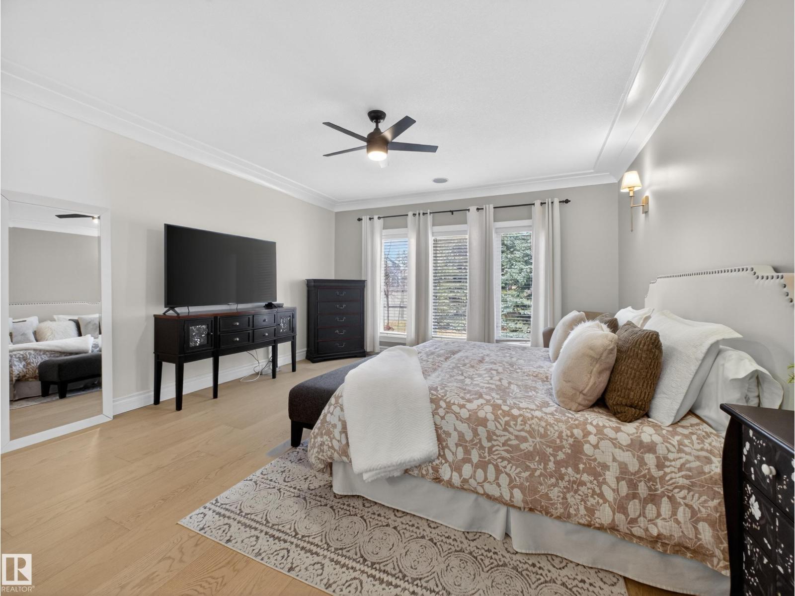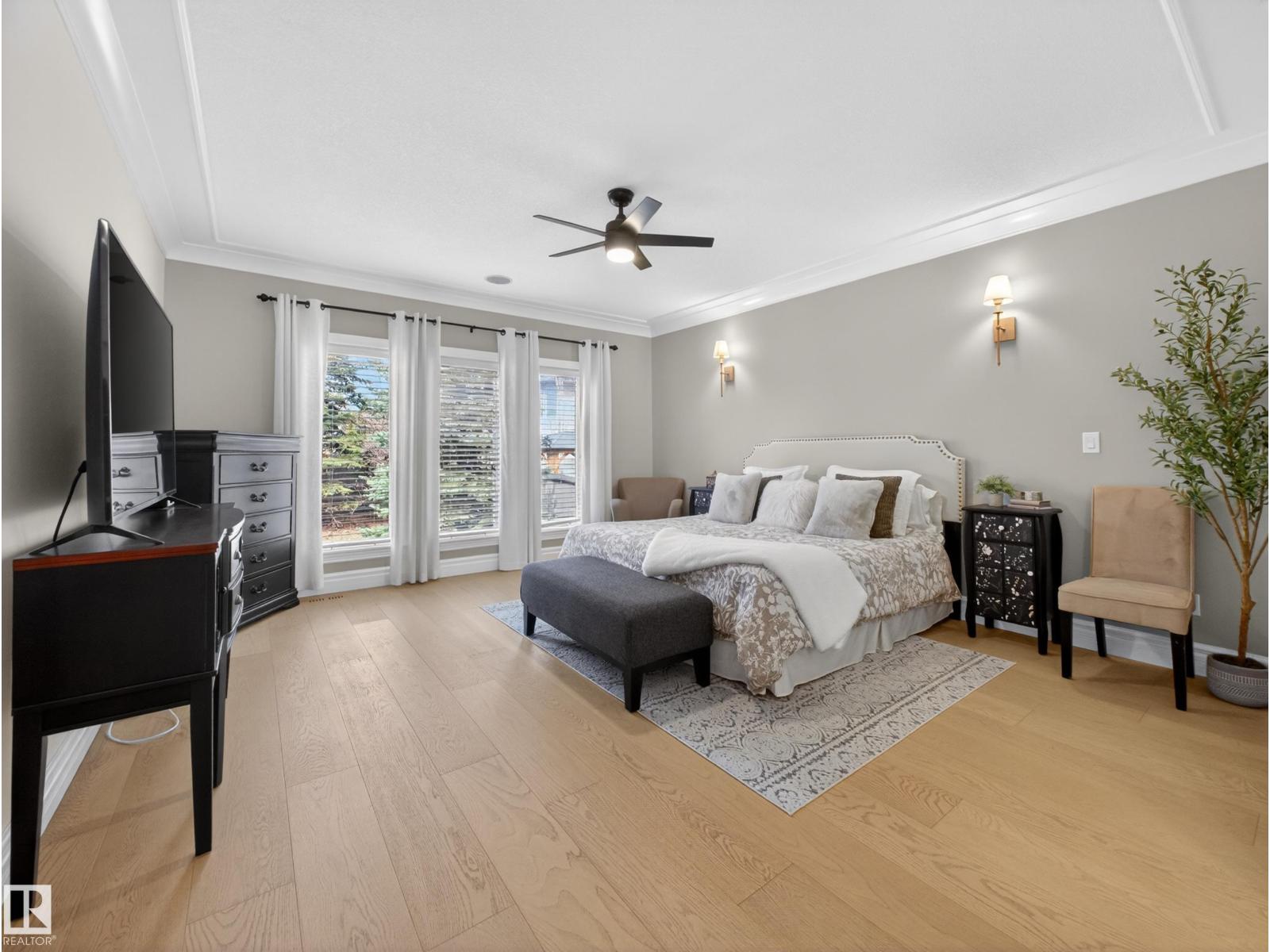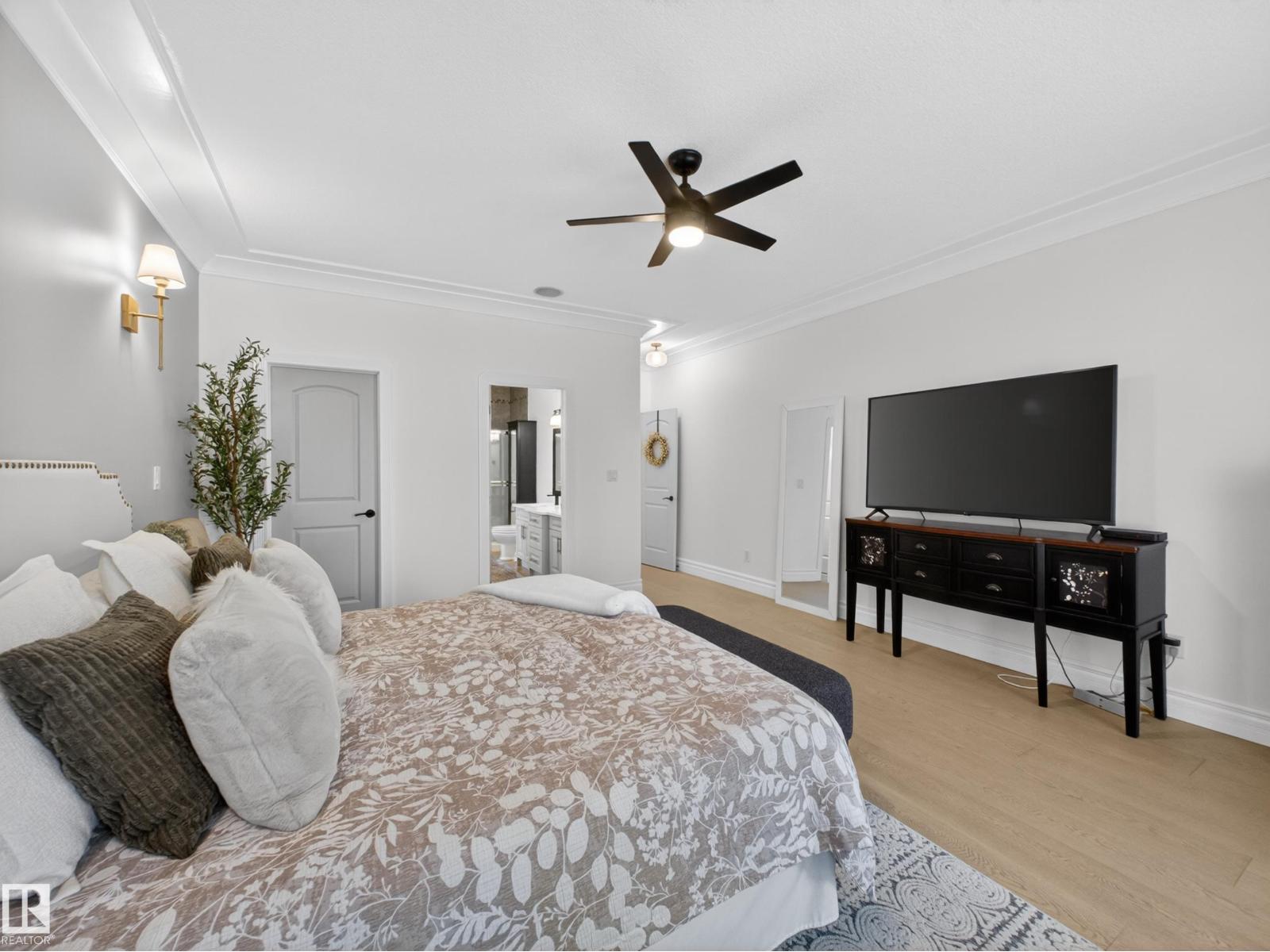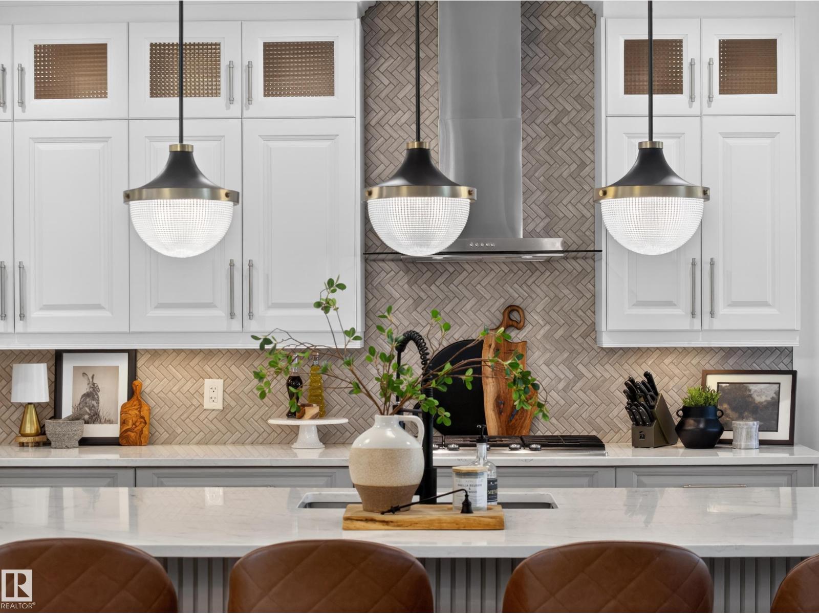 Fully reimagined executive bungalow in the prestigious gated community of Ravines of Richford, offering nearly 3,800 sq ft of refined living. Soaring 11’ coffered ceilings, a striking stacked-stone fireplace, custom millwork, and wide-plank white oak floors set the tone for a bright, upscale interior. The designer kitchen features granite counters, a large island, and seamless flow to the dining area overlooking a private, fully landscaped pie lot. The main-floor primary retreat offers a spa-inspired 5-piece ensuite and walk-in closet, with a private den, second bedroom, full bath, and oversized laundry completing the level. Downstairs delivers exceptional entertaining with a games area, wet bar, theatre room, 2 bedrooms, and full bath. Recent upgrades include a 2025 high-eff furnace, A/C, and more. Finished with a 24’ deep double attached garage with high ceilings—perfect for lifts or storage. (id:63190)