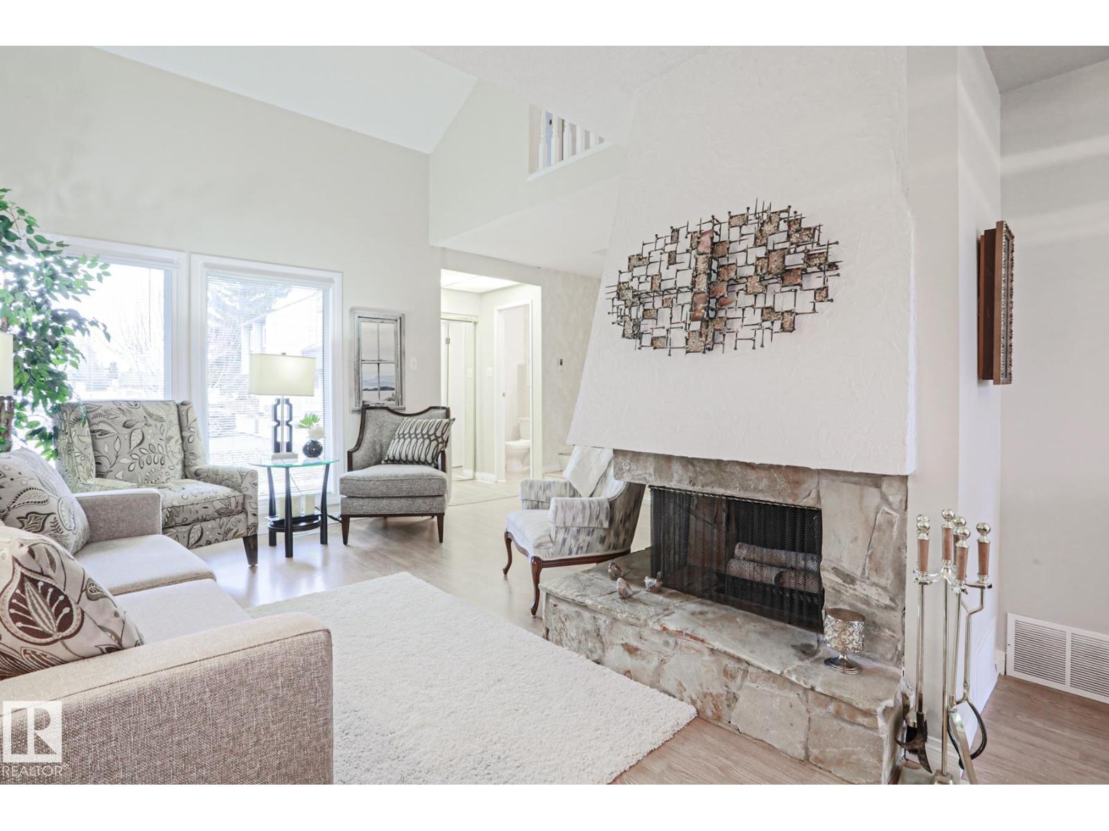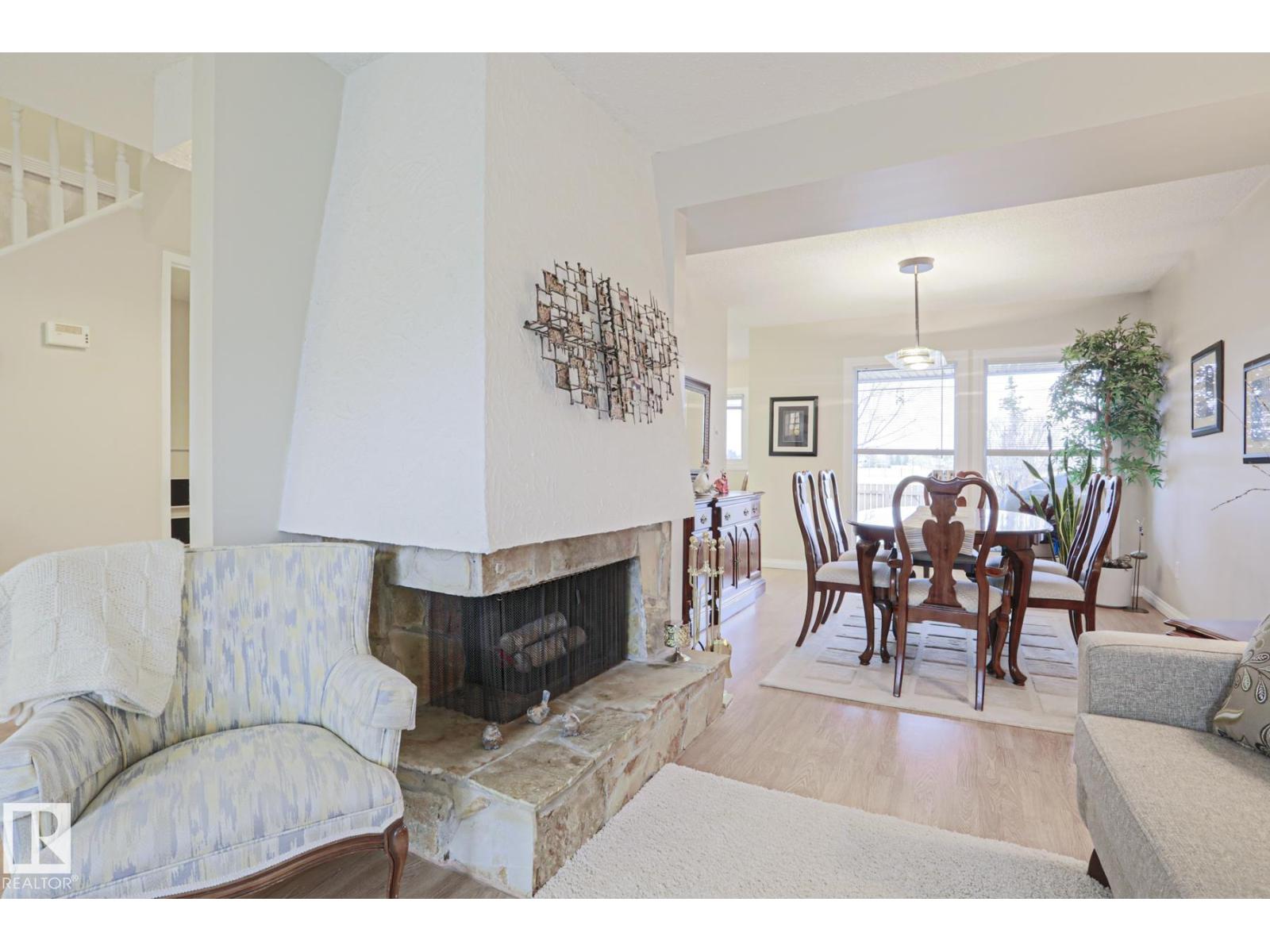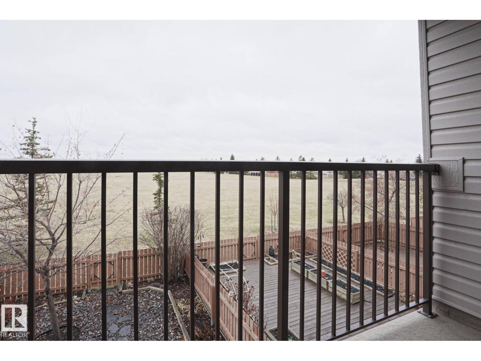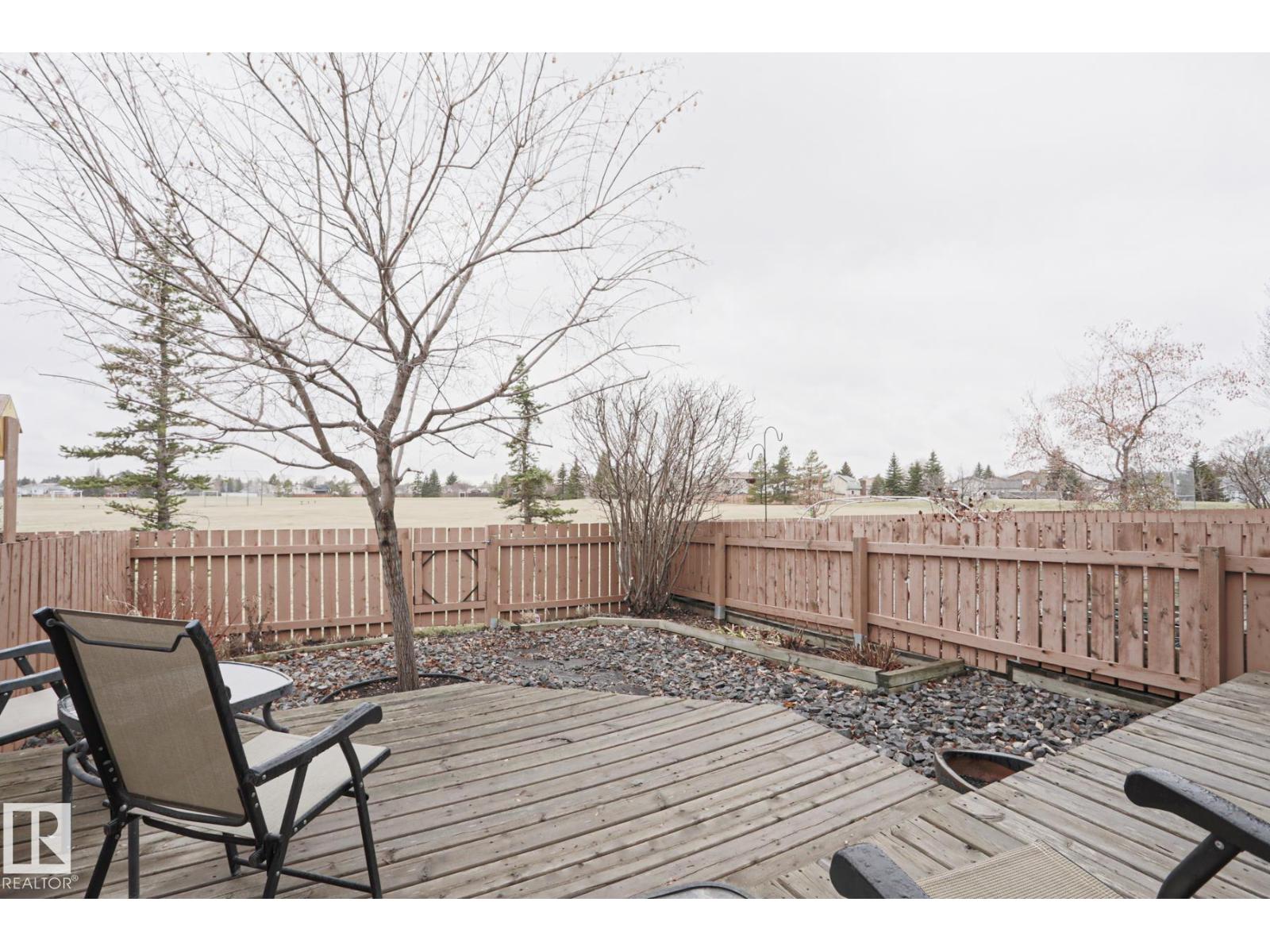 Cimarron Chase is one of South Edmonton's most architecturally pleasing townhome communities. This fine home features an inviting deck to admire the big sky park view. Inside you will appreciate the cozy living room with woodburning fireplace, soaring vaulted ceiling and huge windows. Semi-formal dining room overlooks the park out back and is ideal for special family gatherings. Galley style kitchen offers bright kitchen cabinets and plenty of counter space for the chef at heart. Delightful dinette is perfect for casual dining. Upper level has an exciting primary bedroom that you have to see in person with a unique loft style design, dual closets and your very own Juliet balcony with spectacular view of the western sunsets overlooking the peaceful Keheewin park! Two other bedrooms and a four piece bath complete the upper level. The basement family room, hallway and den just need flooring and you have everything you need including a 3 piece bath, laundry and ample storage! Two energized stalls too! (id:63190)