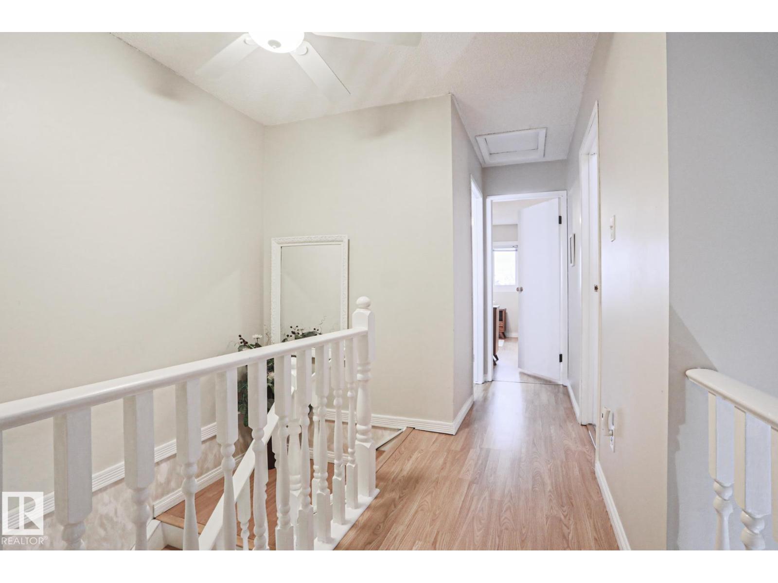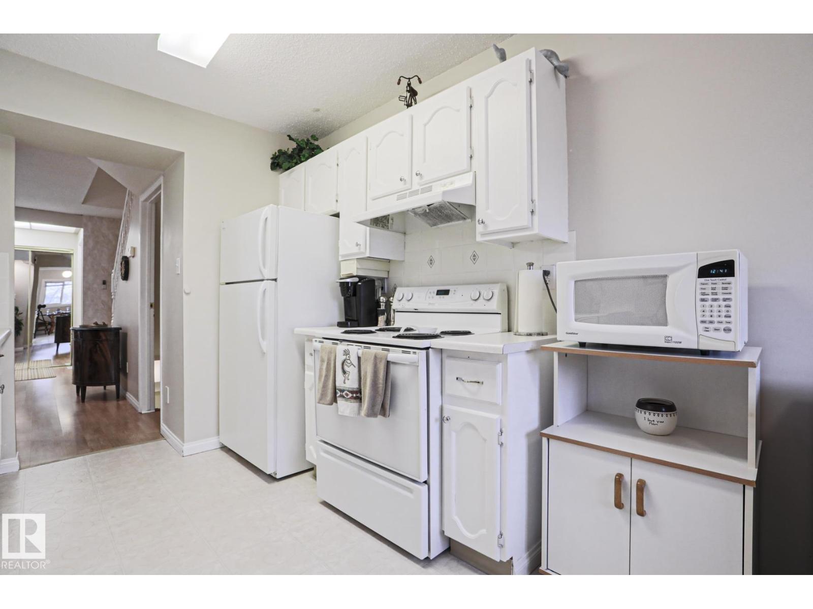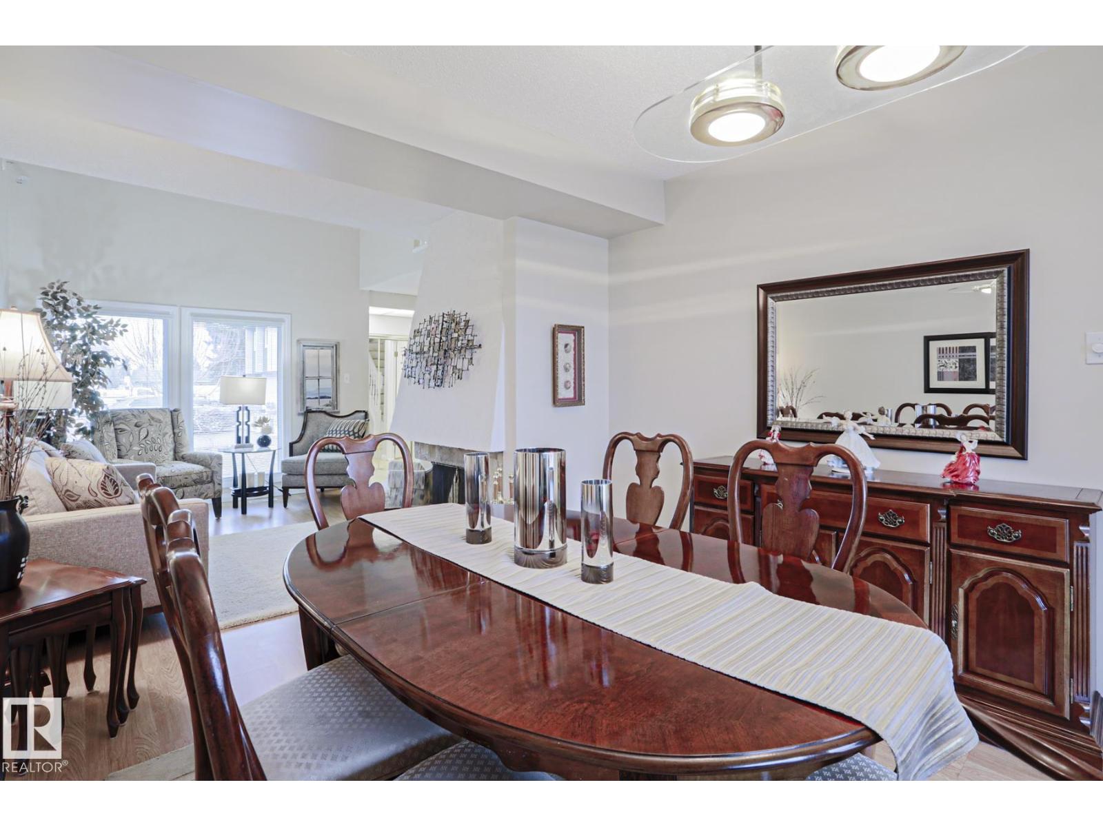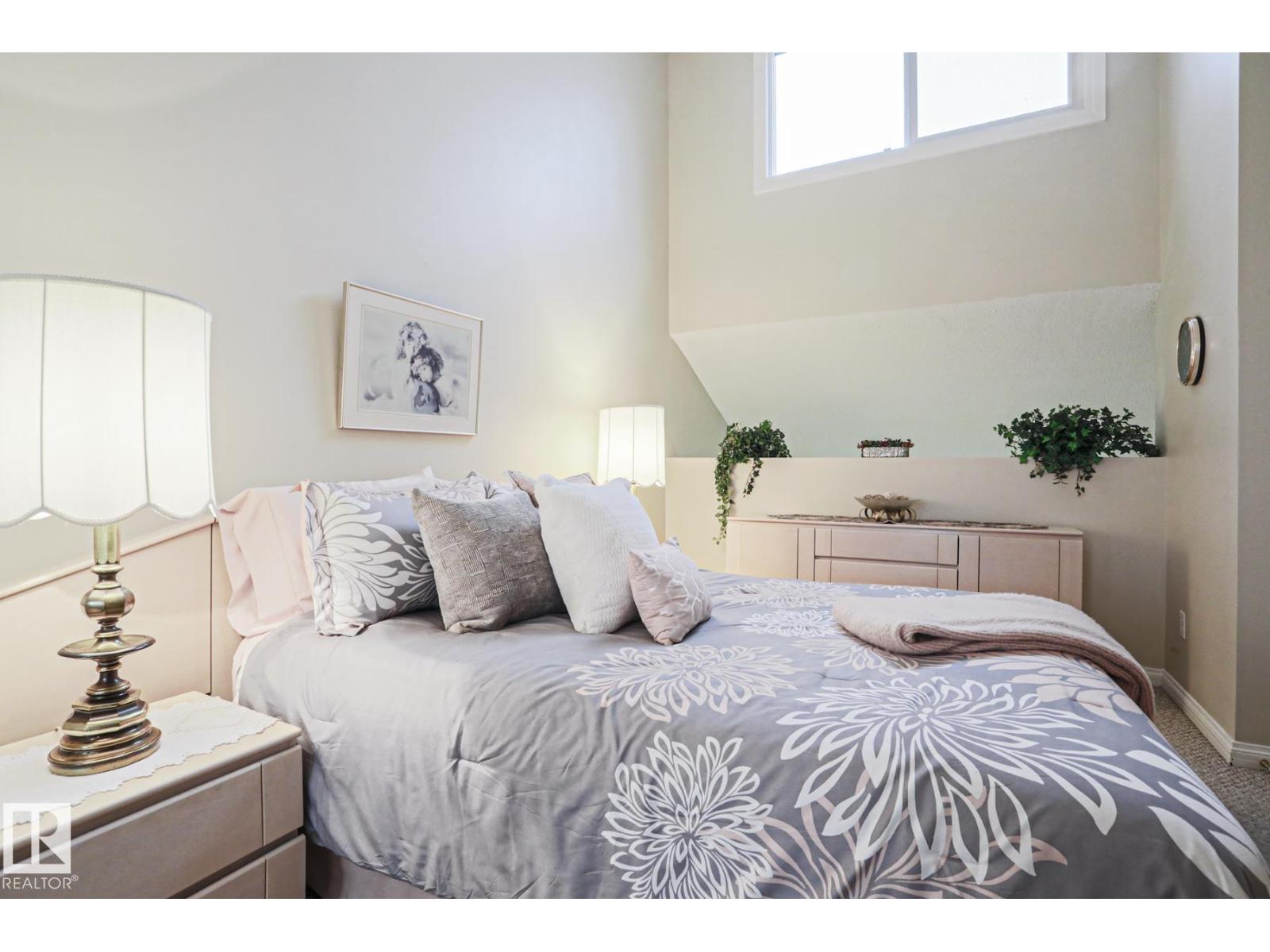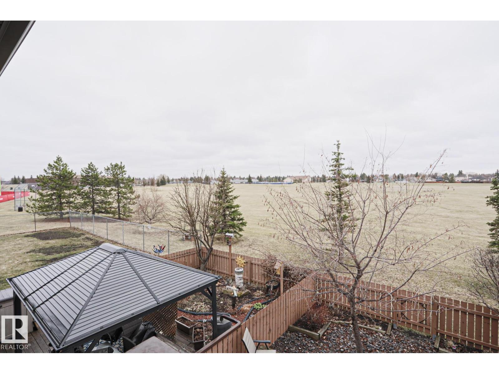 Cimarron Chase is one of South Edmonton's most architecturally pleasing townhome communities. This fine home features an inviting deck to admire the big sky park view. Inside you will appreciate the cozy living room with woodburning fireplace, soaring vaulted ceiling and huge windows. Semi-formal dining room overlooks the park out back and is ideal for special family gatherings. Galley style kitchen offers bright kitchen cabinets and plenty of counter space for the chef at heart. Delightful dinette is perfect for casual dining. Upper level has an exciting primary bedroom that you have to see in person with a unique loft style design, dual closets and your very own Juliet balcony with spectacular view of the western sunsets overlooking the peaceful Keheewin park! Two other bedrooms and a four piece bath complete the upper level. The basement family room, hallway and den just need flooring and you have everything you need including a 3 piece bath, laundry and ample storage! Two energized stalls too! (id:63190)