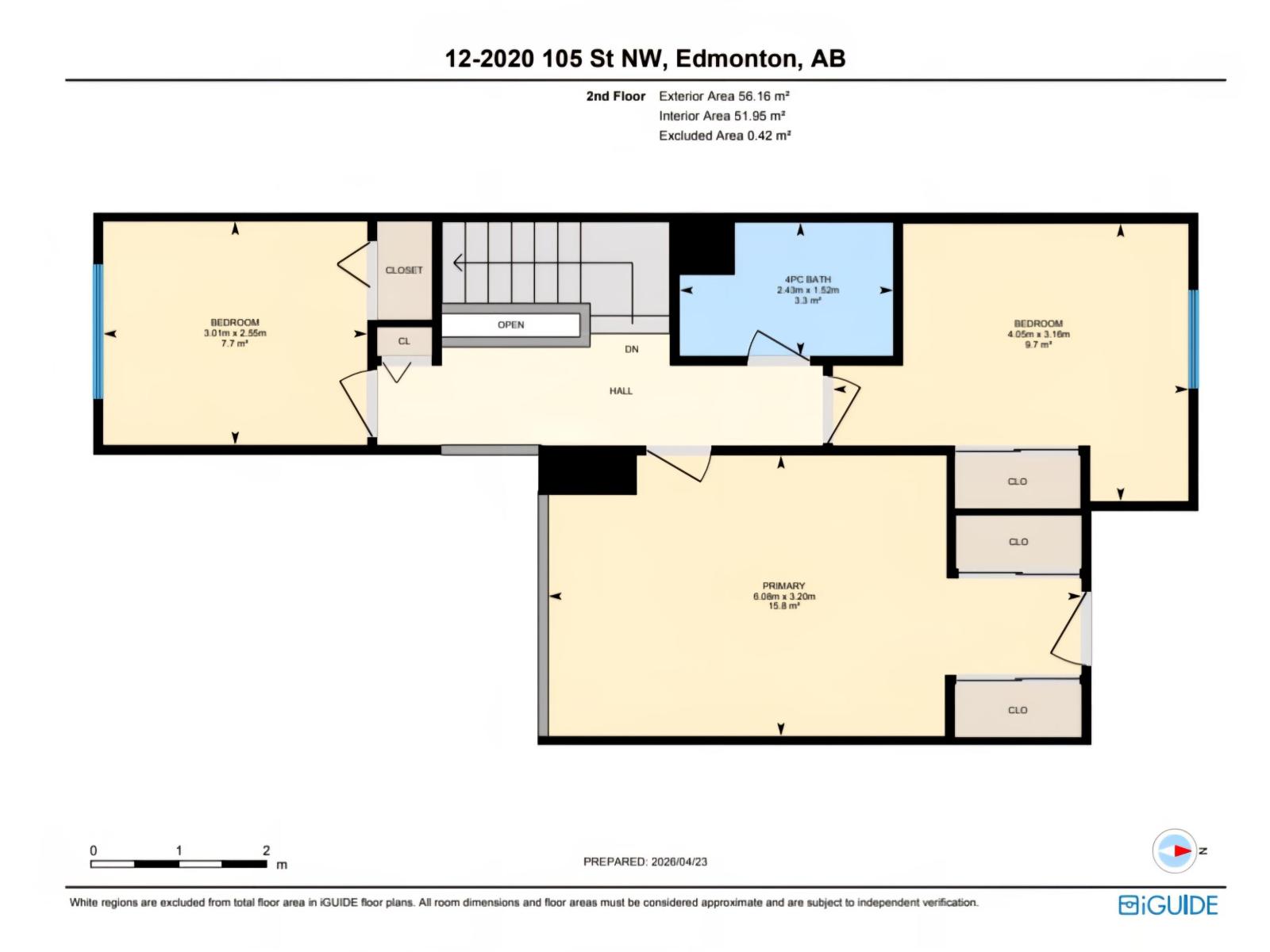 | Bedroom 2 | Upper Level | 3.16 x 4.05 | — |