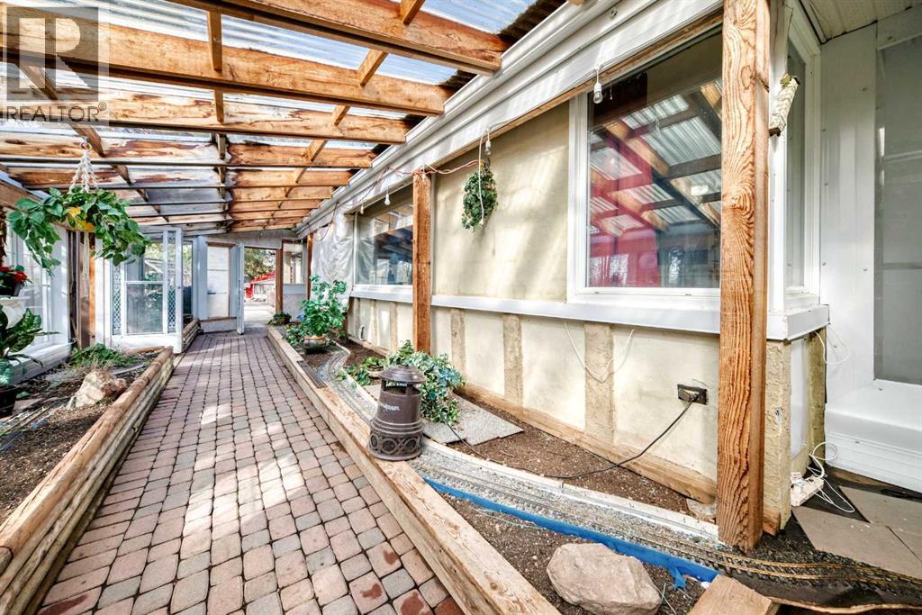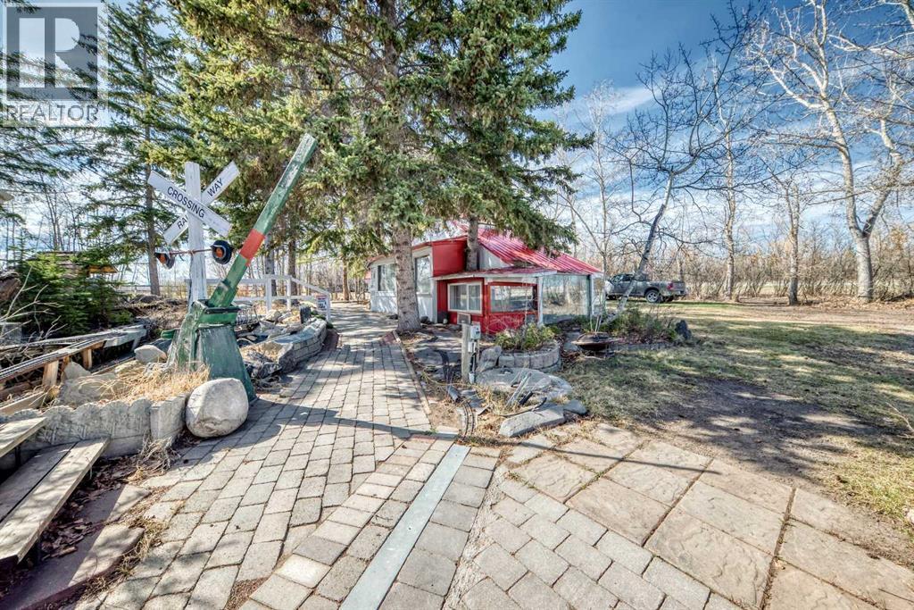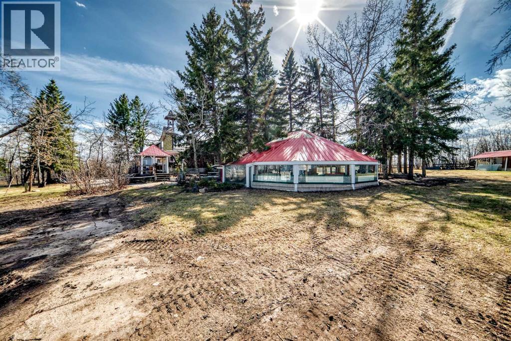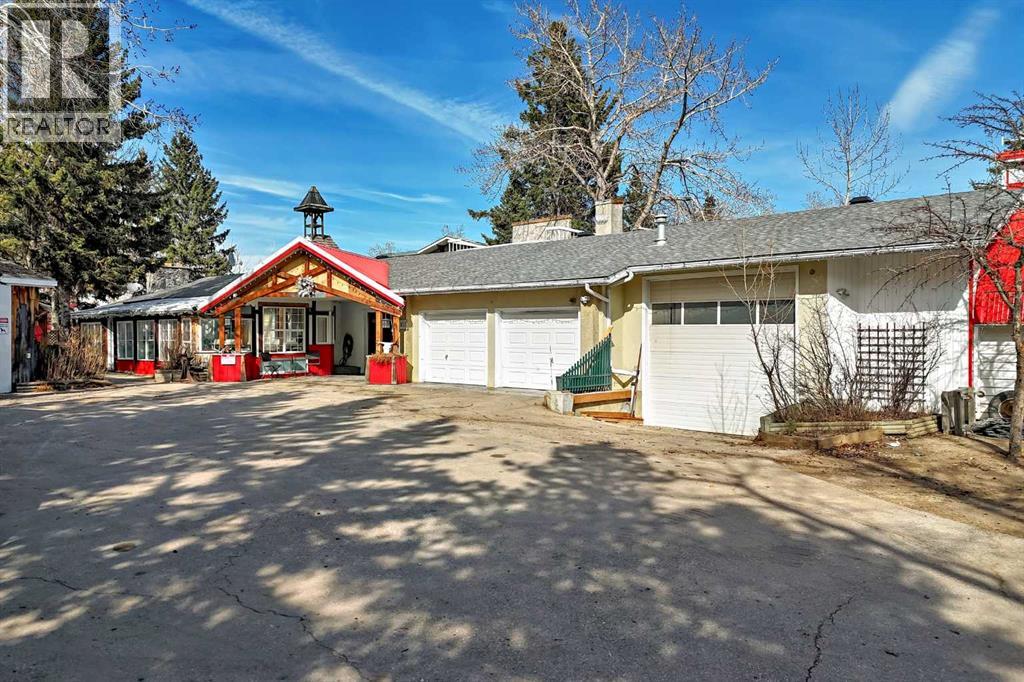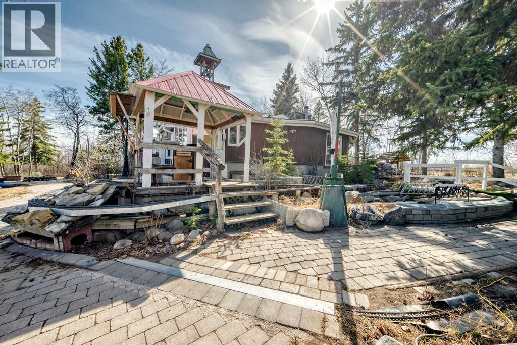Escape to your own private 2-acre retreat in an unbeatable location! This one-of-a-kind heritage-style acreage offers incredible privacy, mature trees, and a collection of unique outbuildings designed for lifestyle and flexibility. From the charming garden house (perfect for a she-shed or guests), to the detached garage, to the standout roundhouse ready for your dream outdoor kitchen and entertaining space—this property is full of character and opportunity. The spacious 2,500 sqft home features multiple inviting living areas including a sunroom and atrium, a well-appointed kitchen with stainless steel appliances, marble counters, and wood cabinetry, plus a true primary retreat with sitting area and wood stove. Step outside to your own backyard oasis complete with sauna, manmade creek, boardwalks, rooftop patio, and western-inspired touches. With ample parking, a heated garage, breezeway, and room to expand—including potential for an additional shop or secondary suite (up to 1600 sqft with county approval)—this property offers endless possibilities just minutes from Sirocco Golf Course. A rare opportunity to own a truly unique acreage!! (id:63190)