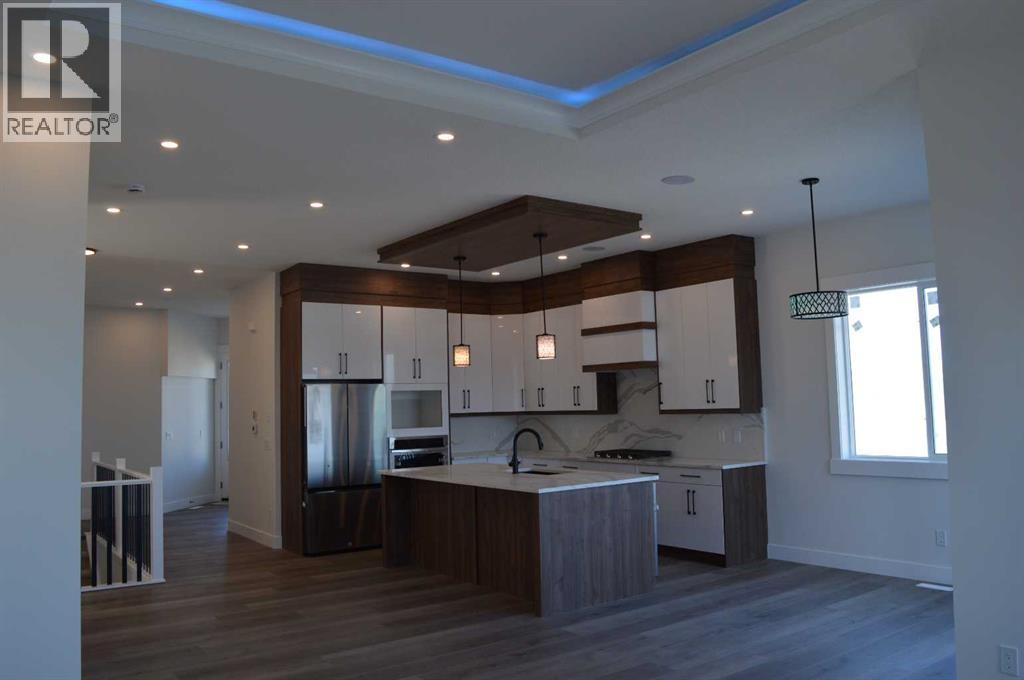 Welcome 259 Muirfield Cresent, a home where modern design meets the quiet beauty of the Alberta prairies. Located in the premier golf community of Lakes of Muirfield, this brand-new residence offers a lifestyle of ease and sophistication. From the moment you arrive, the oversized triple garage and welcoming front porch set the stage for a home built with quality and functionality in mind.The heart of this home is a sprawling open-concept layout that feels both grand and inviting. The gourmet kitchen, complete with a walk-in pantry, flows effortlessly into a sun-drenched dining nook and a massive family room. This seamless transition is perfect for busy mornings or hosting evening gatherings. Large windows frame tranquil views of the canal, while the rear deck acts as a natural outdoor extension of your living space.For those who work from home, a versatile flex room is tucked away near the front entrance, offering a quiet sanctuary away from the main living area. The primary suite serves as a private retreat, featuring a spa-like ensuite and a large walk-in closet designed for serene organization.The fully developed walk-out basement is a true standout, offering a massive recreation area that centers around a built-in wet bar. Large glass doors lead you directly outside, providing easy access to the canal side. Two additional bedrooms and a full bath on this level make it a perfect setup for guests or older children.Living here means more than just a beautiful house; it’s about the unique benefits of the community. Unlike nearby urban centers, you’ll enjoy the freedom of no water restrictions, ensuring your landscaping remains vibrant all season long. Best of all, this brand-new property is ELIGIBLE FOR THE FIRST HOME BUYERS GST REBATE, offering a rare financial incentive on a premium build.This home offers the peace of the countryside with the convenience of being just a short drive from Calgary and Strathmore. Depending on the stage of construction, buye rs may have the opportunity to select their own interior finishes. Interior photos are from a previous build. (id:63190)