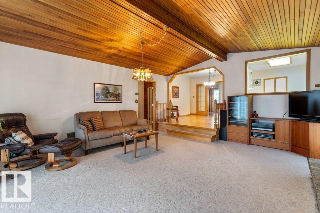 Welcome Home to this lovingly maintained bungalow with mid century modern flair sprinkled throughout! This 1451 sq ft 4 bed, 2 bath property is located on close to parks, schools, transportation, shopping & more! You are welcomed with gleaming hardwoods & loads of natural light. The living rm is bright & open with French doors. Kitchen & dining areas overlook a massive family rm with deck & backyard access. Sunken family room is perfect to hang out, featuring a cozy gas F/P, cedar vaulted ceilings & space to enjoy hosting! Spacious primary bedrm with wooden closet doors & hardwood. The main floor is completed with a 3 piece bath & 2nd bedrm. The functional mudrm has ample space for family organization. The basement features a large rec rm with cedar accents to add to the intimate feel. 2 additional bedrms, storage, laundry rm & 3 pc bath. Outside the massive yard features gardens with many low maintenance shrubs & perennials. O/S double detached garage with back lane access. Just move in & ENJOY! (id:63190)