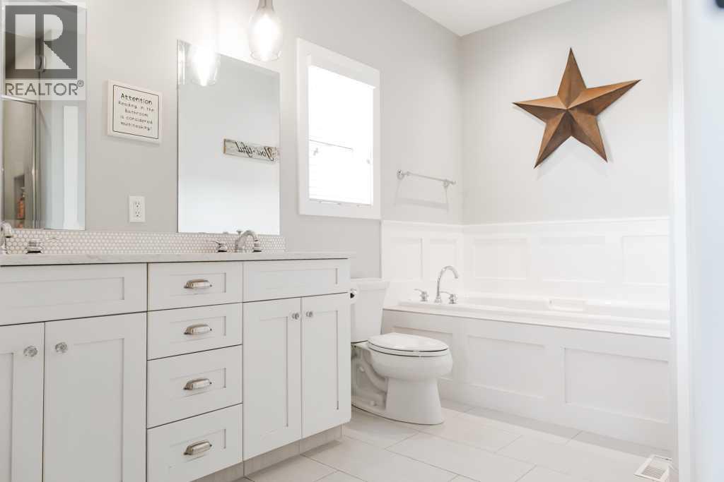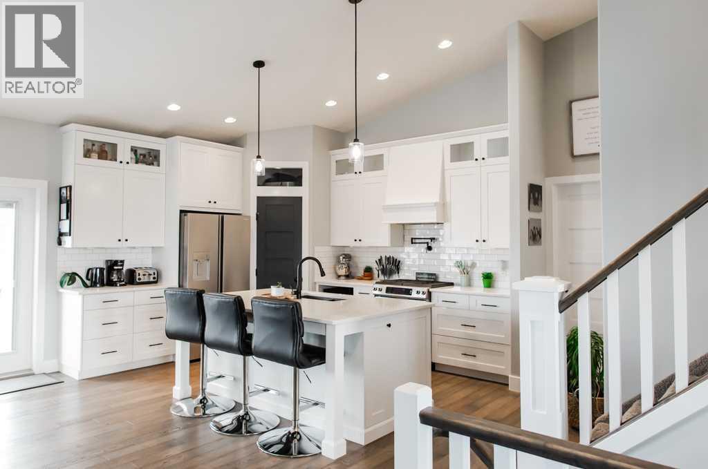 Impressive craftsmanship, thoughtful design, and exceptional value—this stunning Deeproot home is sure to stand out. At $775,000, it’s hard to believe everything this sparkling, fully developed floor plan offers.Perfectly positioned on a massive lot—far from your standard Whispering Ridge size—this property backs onto Westlake homes and mirrors those larger lot dimensions, offering a rare combination of space, privacy, and long-term value. With RV parking and a triple car garage featuring a convenient pull-through third bay, this home delivers both function and flexibility for families, toys, and day-to-day living. The garage is heated and finished with spray foam insulation, providing year-round comfort and efficiency.Step inside to a spacious, welcoming entryway complete with built-in lockers and storage—ideal for keeping life organized. As you move upstairs, you’re greeted by a bright and airy main level enhanced by vaulted ceilings and a seamless open-concept layout. The kitchen, dining, and living areas connect effortlessly, creating a space that feels both expansive and inviting.A striking floor-to-ceiling, double-sided fireplace acts as a stunning focal point, subtly defining the dining and living spaces while maintaining flow and warmth throughout. The kitchen is finished with quartz countertops, complemented by rich hardwood flooring and ceramic tile, delivering both durability and elevated style.The main floor primary suite is thoughtfully positioned for privacy and convenience, offering a spacious retreat complete with a large walk-in closet and a beautifully appointed 5-piece ensuite featuring a soaker tub and tiled shower.Upstairs, you’ll find two well-sized bedrooms, a full bathroom, and a charming office nook at the top of the stairs—perfect for homework, remote work, or a quiet reading space.The fully developed basement expands your living options even further, featuring two additional bedrooms, a full bathroom, a large rec room ideal for family gatherings or entertainment, and a massive laundry room with tile flooring that adds both practicality and function. Spray foam insulation continues into the basement, enhancing comfort and efficiency throughout the home.A classic Deeproot build with high-end finishes, vaulted ceilings, and a layout designed for real life—this home offers space, quality, and versatility in every corner. From the oversized lot to the upgraded features, this is a property that delivers on both lifestyle and long-term value. (id:63190)
