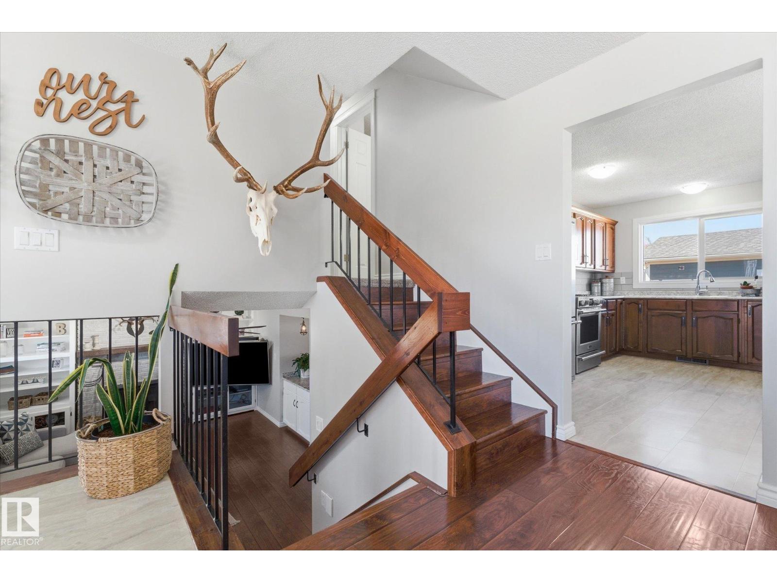 Exceptionally maintained, fully finished, & completely updated 4 bed/3 bath home with over 2,400 square feet of total living space! Sitting on a large corner lot in a quiet neighbourhood close to parks/schools, plus oversized double heated dream garage/shop - this is the one. Updates inside & out include: triple pane windows, roof, Hardie board siding, freshly painted, furnace/hot water tank, hardwood flooring, professional series kitchen appliances (with gas range), countertops/backsplash, & all 3 bathrooms. The main living space is the heart of the home complete with living room, dining room, & large kitchen with breakfast nook. The upper level is to recharge & ready for the day with the primary retreat + 3 pc en suite, 2 more beds & full 4 pc bath. Additional family room on the lower level with a wood fireplace + wet bar is perfect for creating core family memories & entertaining. The basement is a complete flex space to keep as a home gym, or use however you like. Don’t miss out on this 10/10 home! (id:63190)